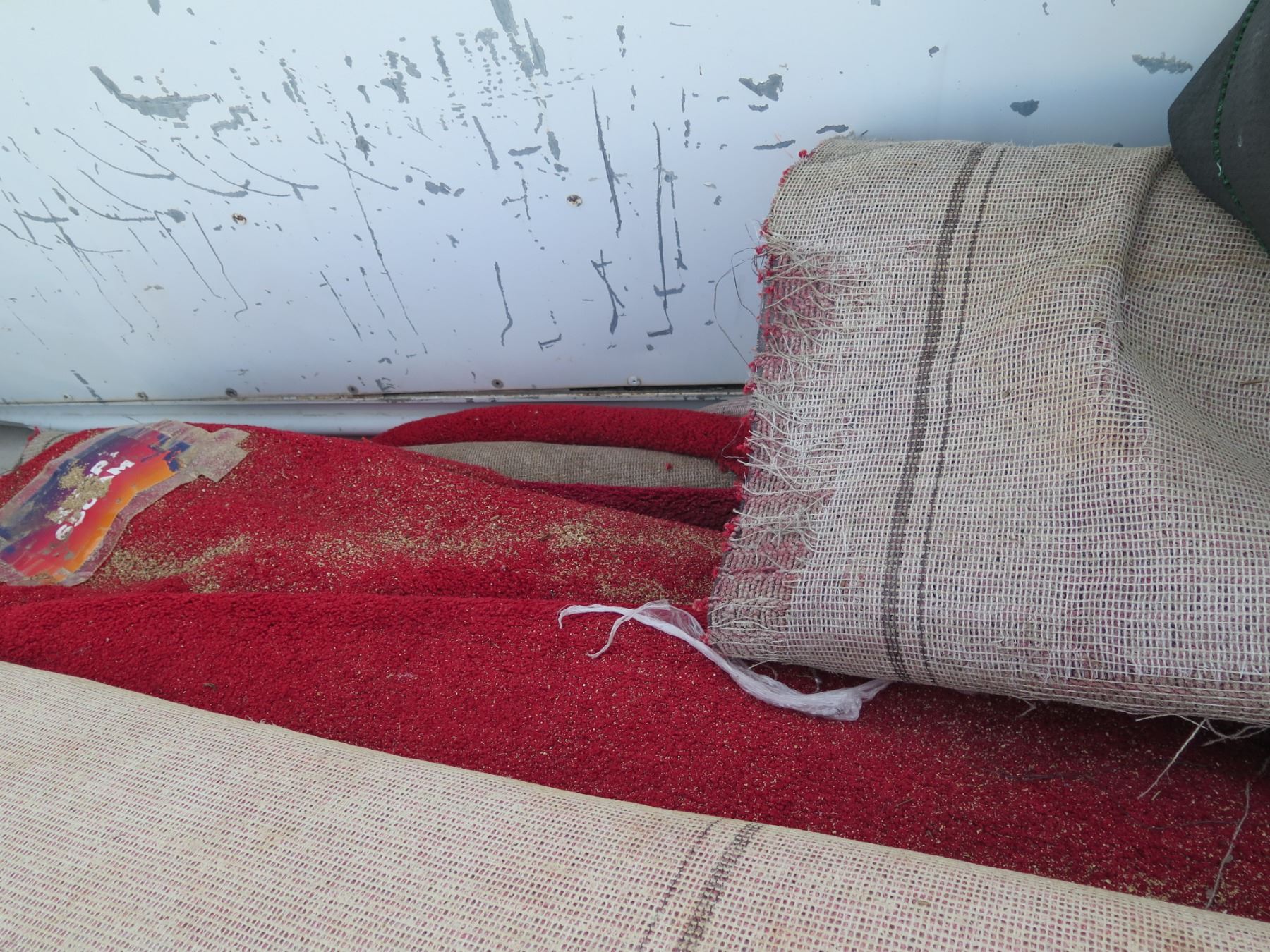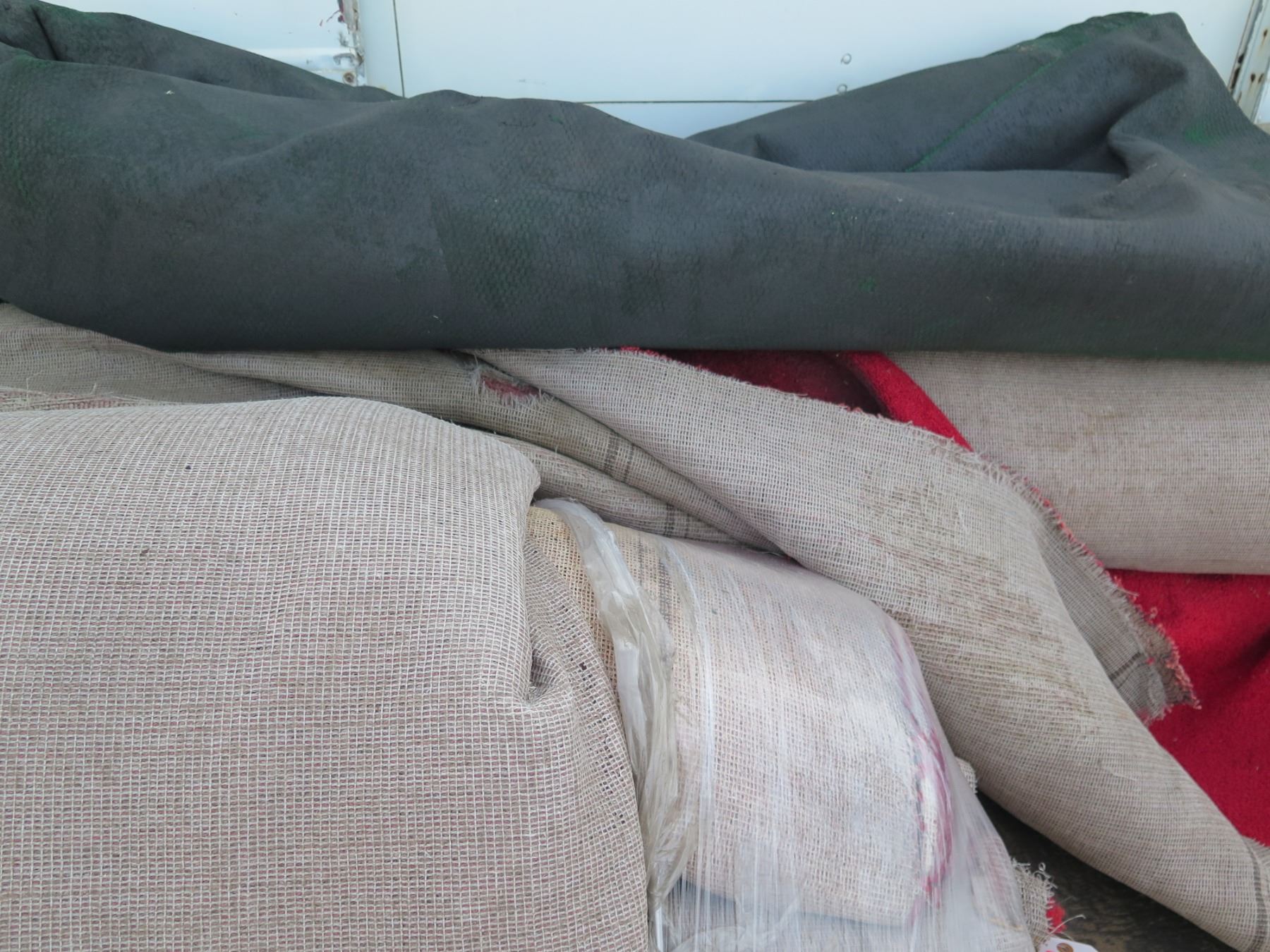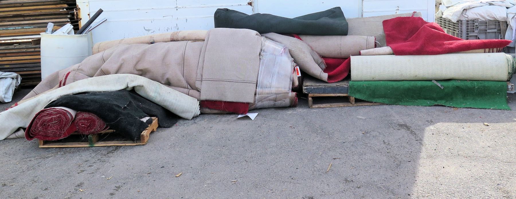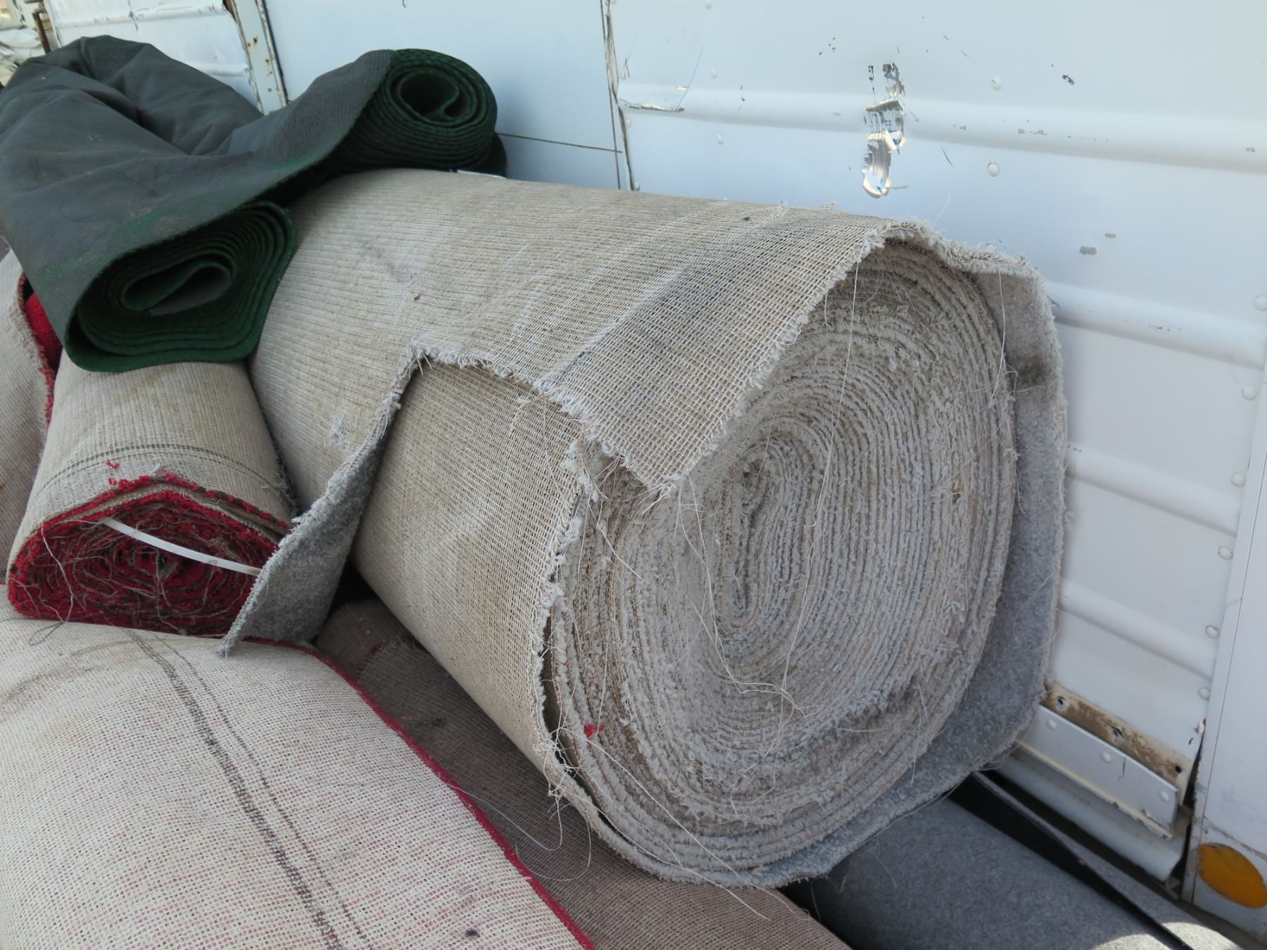 Multiple Rolls Red & Black Carpet, Green Astro-Turf Flooring, Carpet Mats, etc