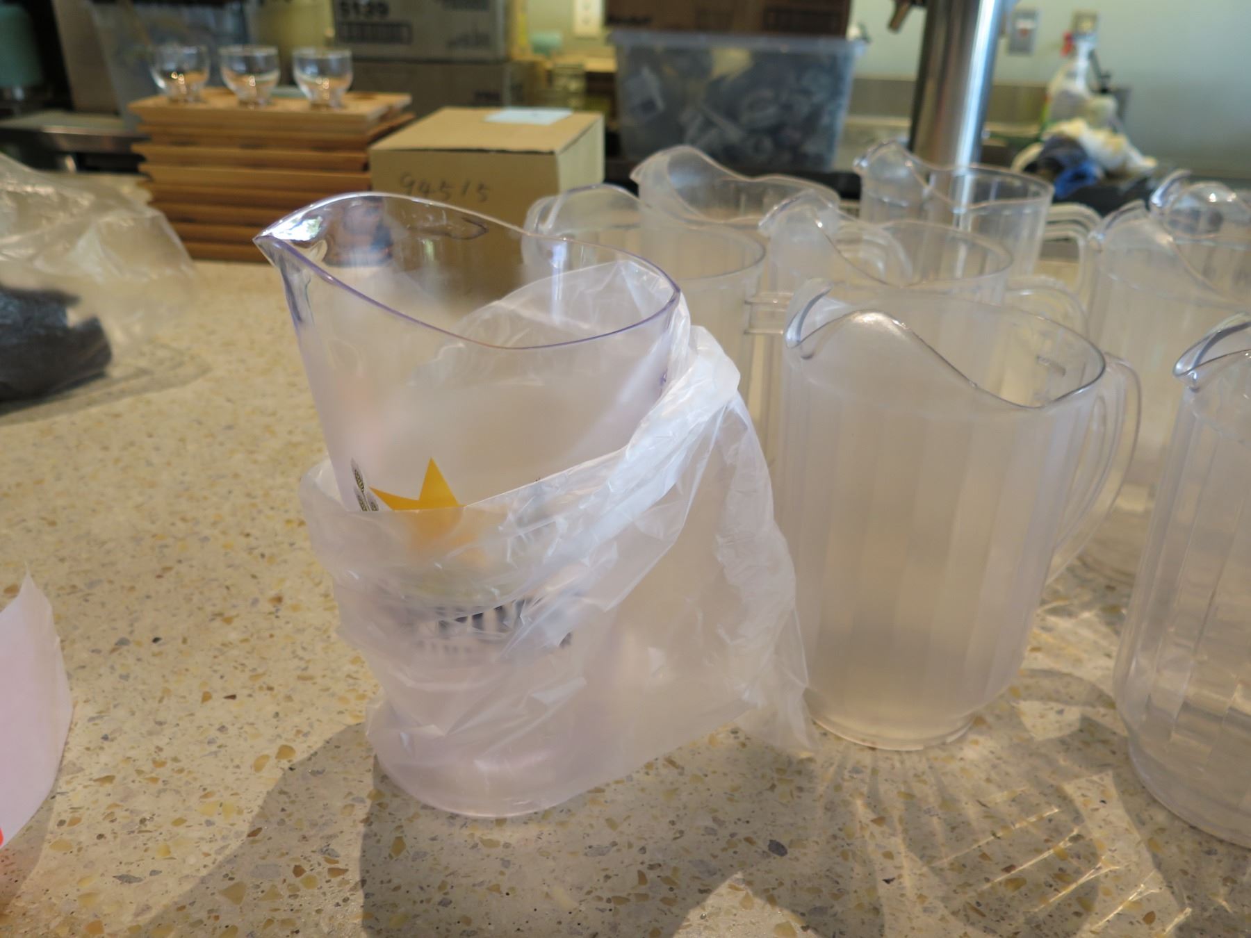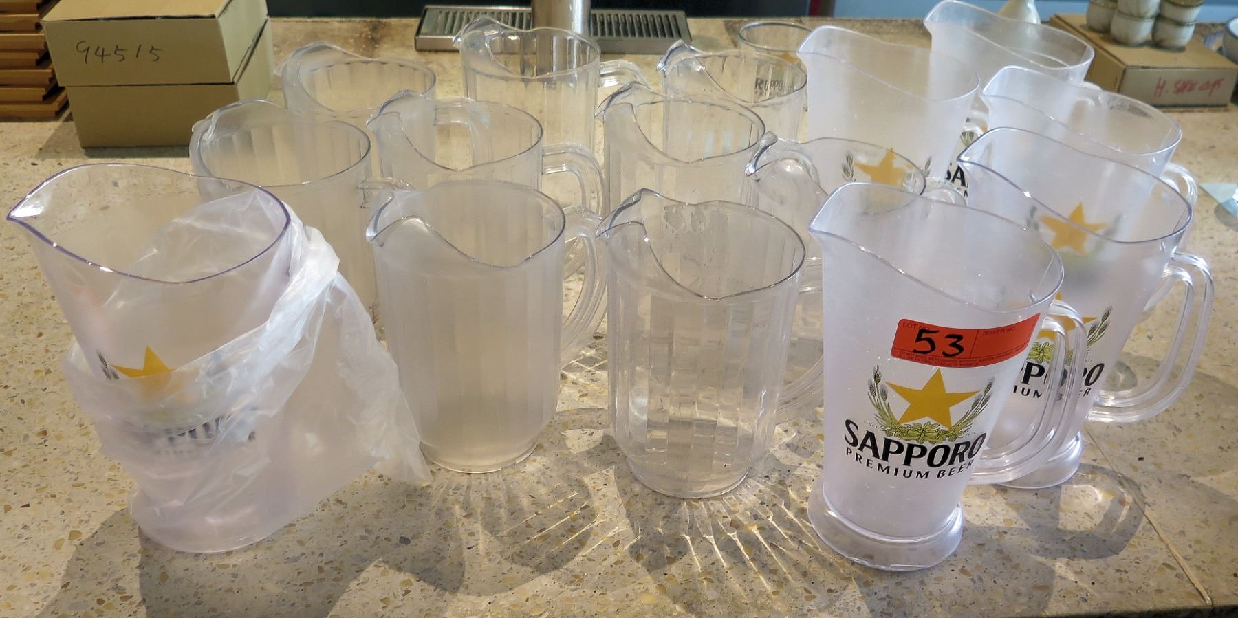 Multiple Sapporo & Ribbed Pitchers.