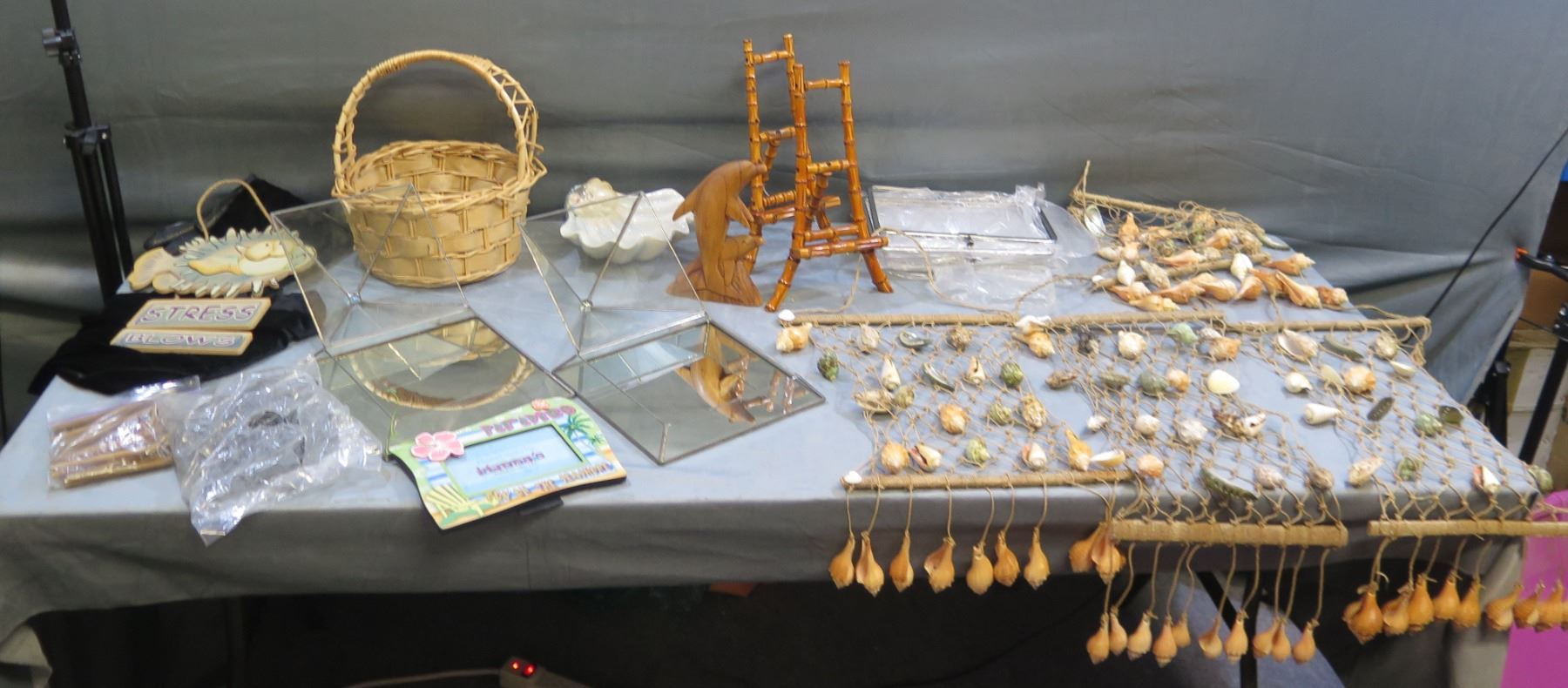 Multiple Shell Wall Hangings, Basket, Photo Frames, Mirrored Boxes, Dolphin Figure, etc (unused)