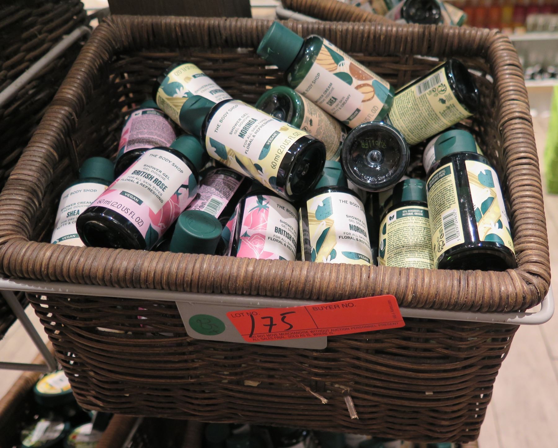 Multiple The Body Shop Items: British Rose & Moringa Shower Gel, Shea Cream, etc in Woven Basket