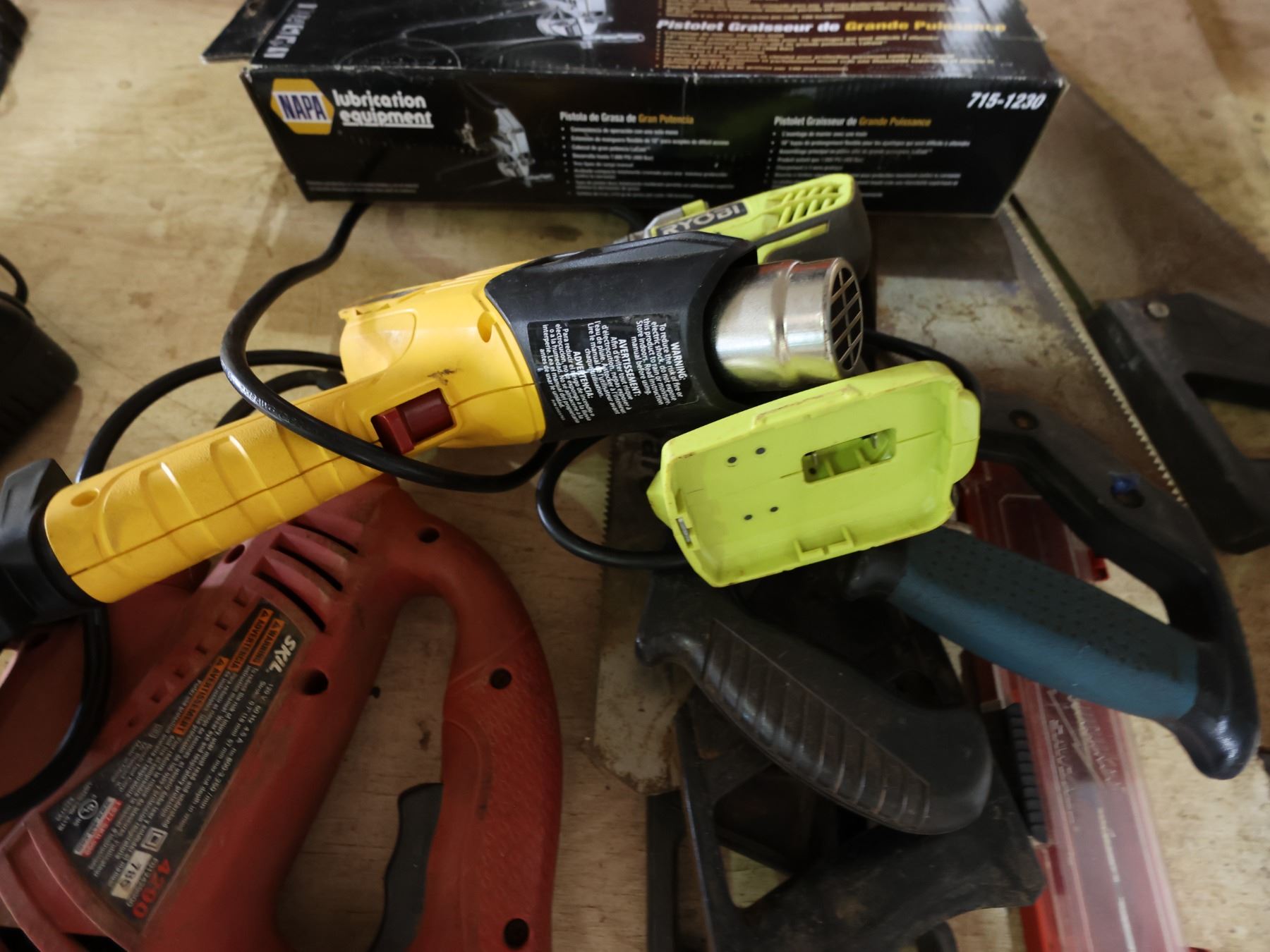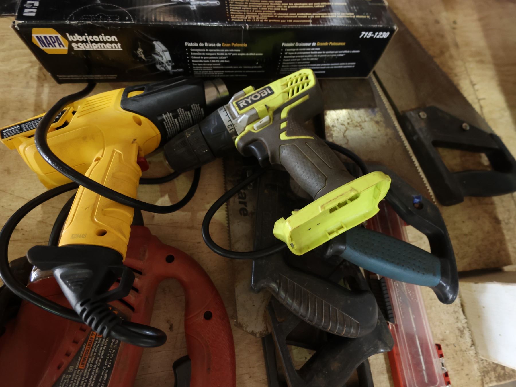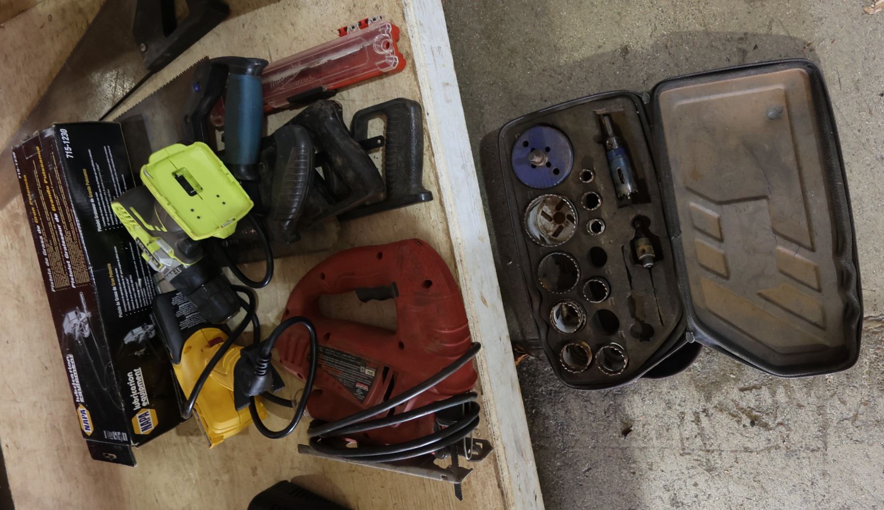 Multiple Tools: Napa Lubrication, Drills, Hole Saw Kit in Hard Case, etc