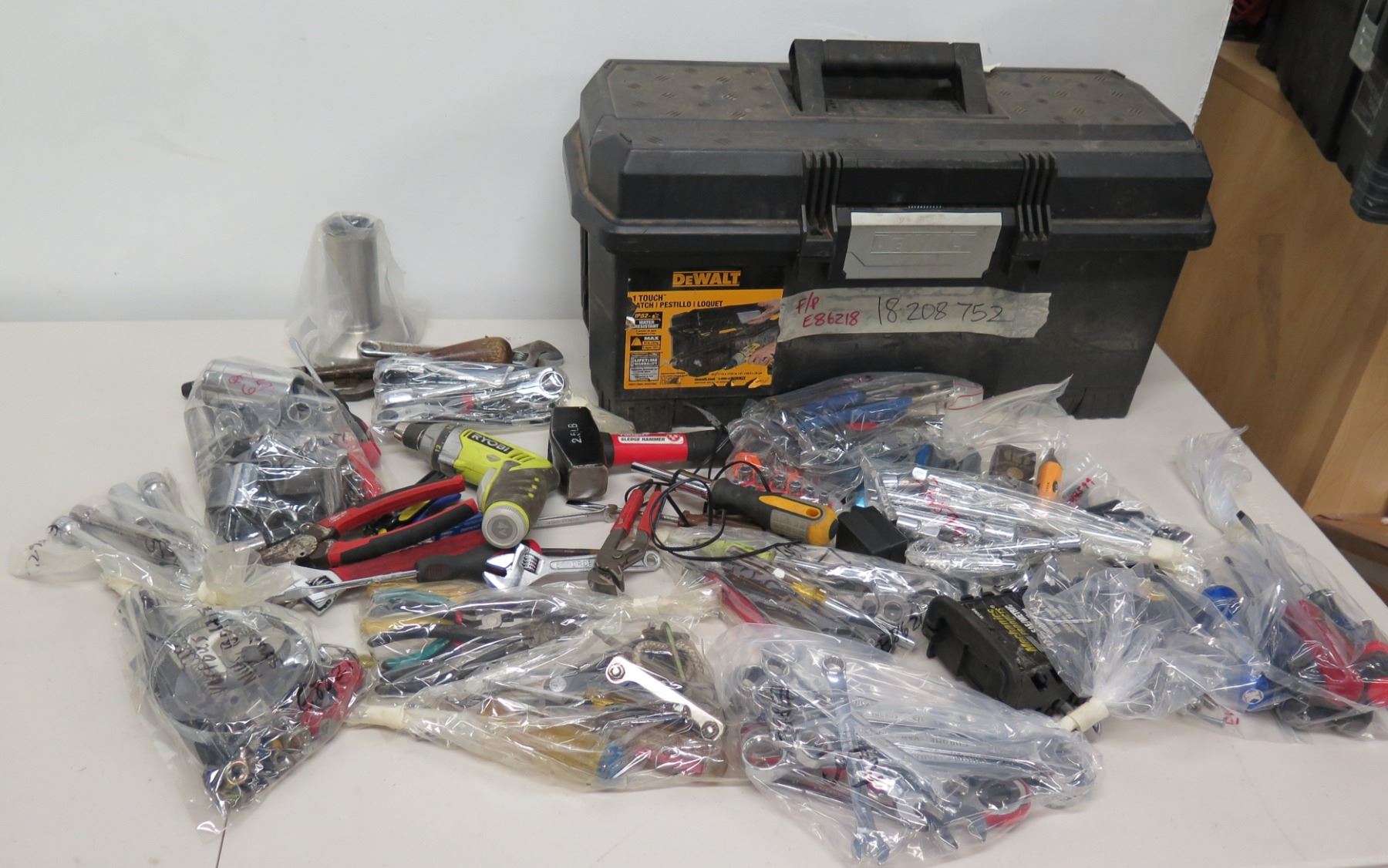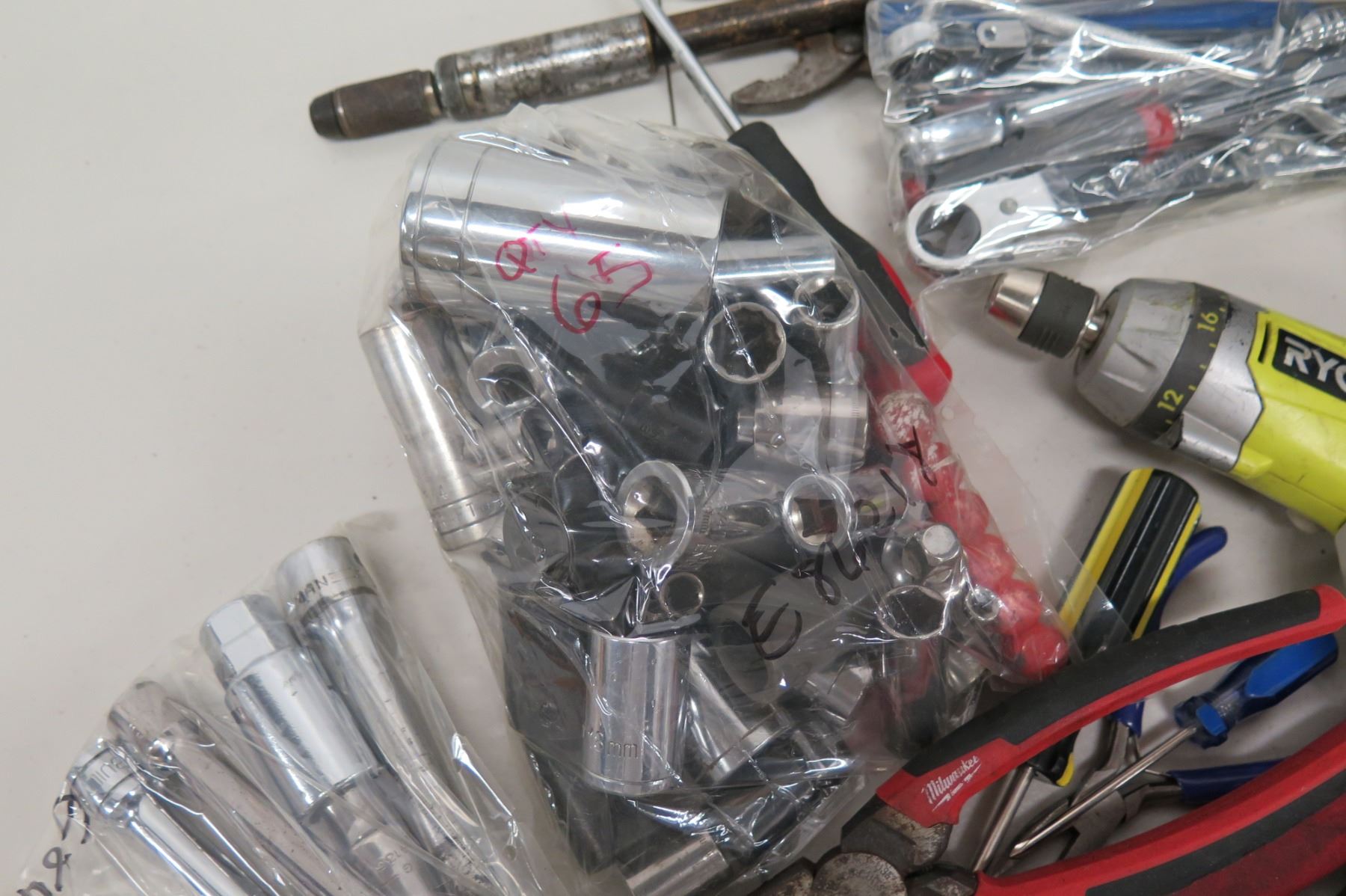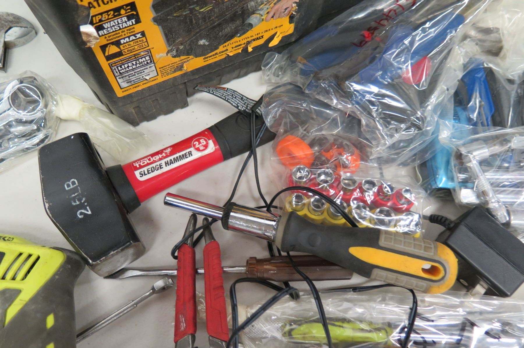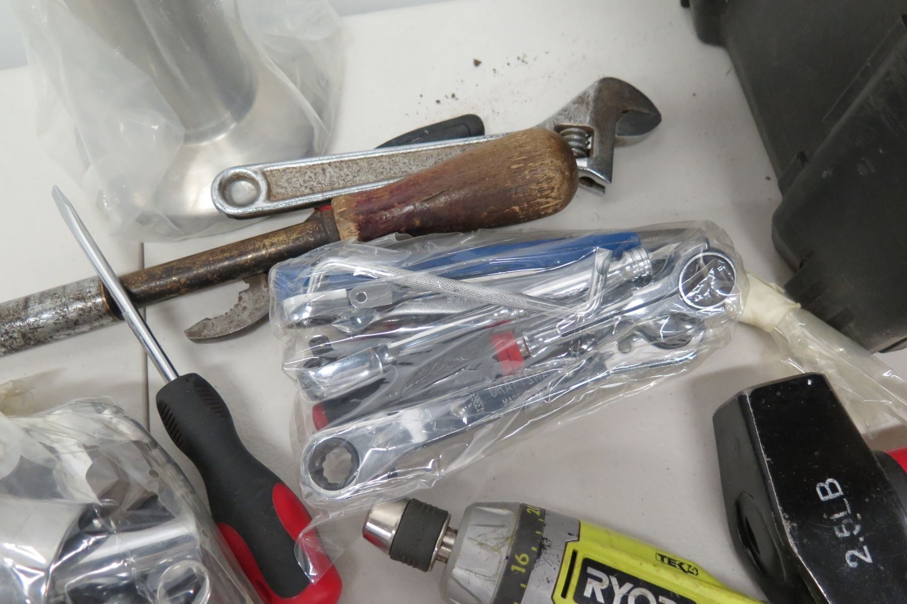 Multiple Tools - Ryobi Drill, Hyper Tough Sledge Hammer, Ratchets, Sockets