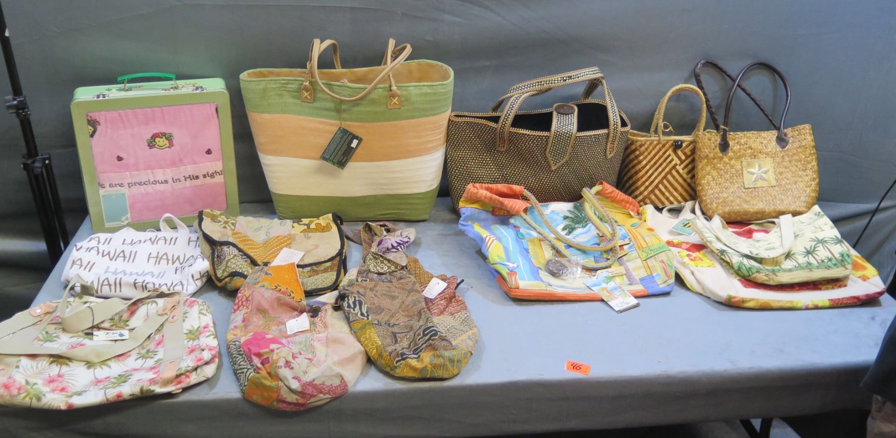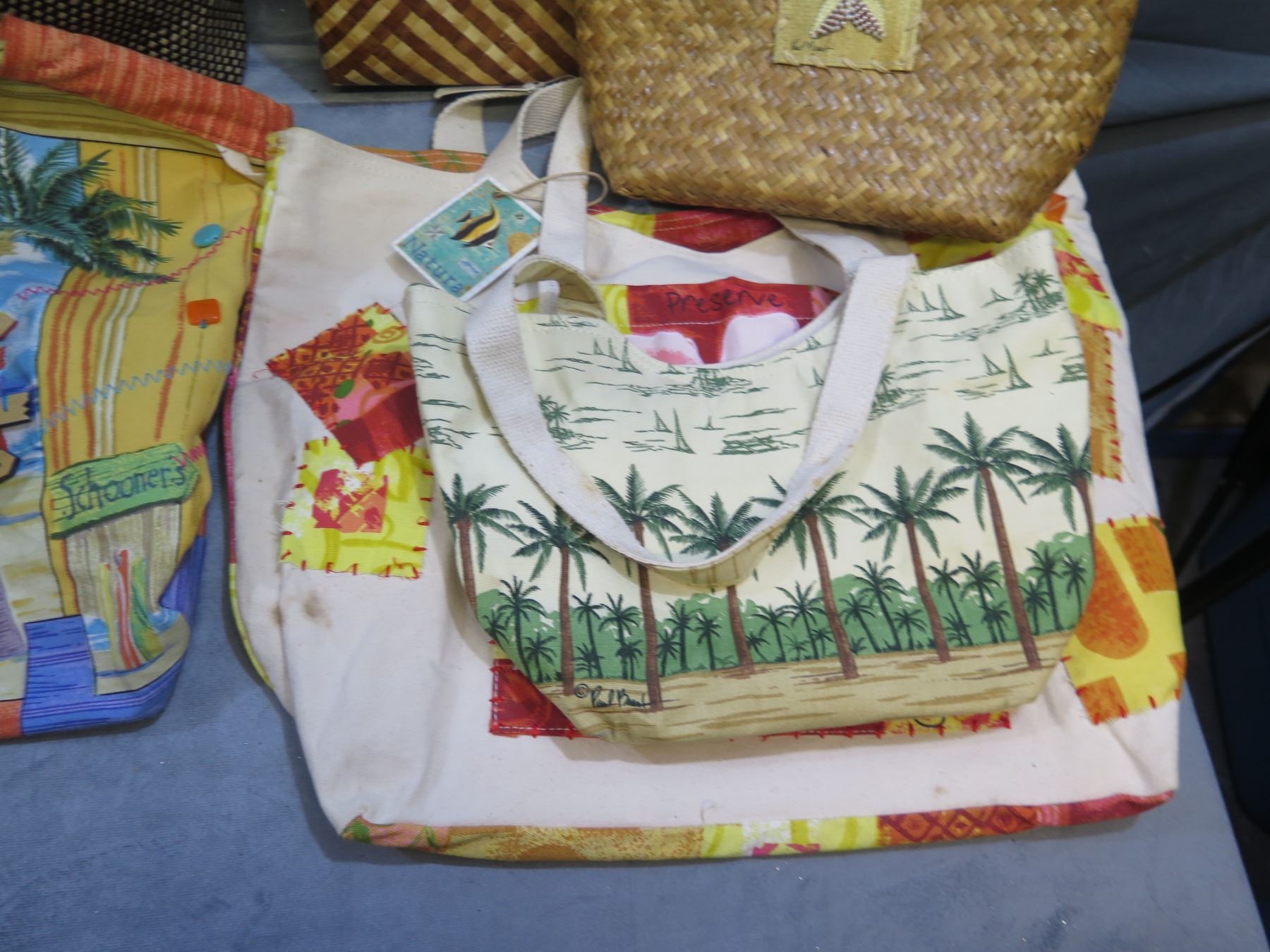 Multiple Tropical Tote Bags, Woven Handbags, Backpacks, etc (unused)