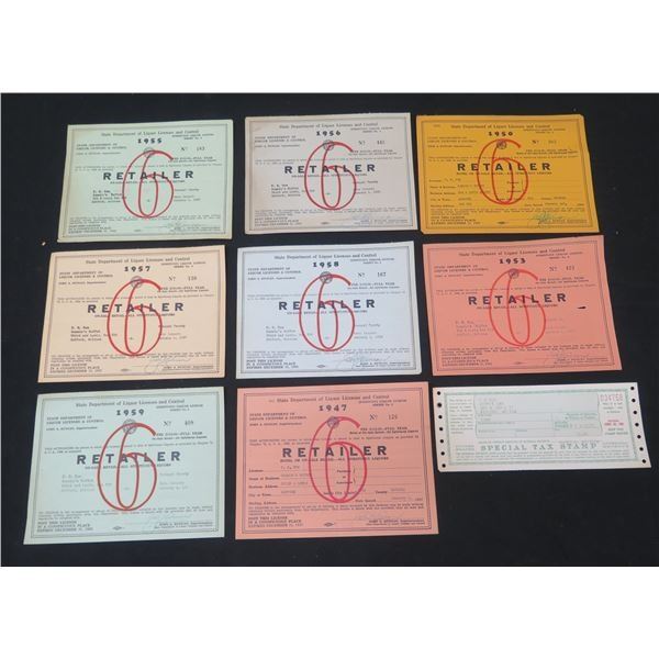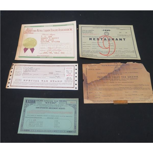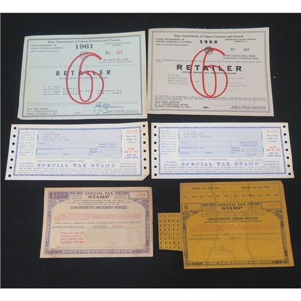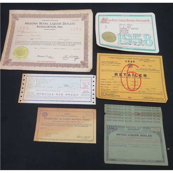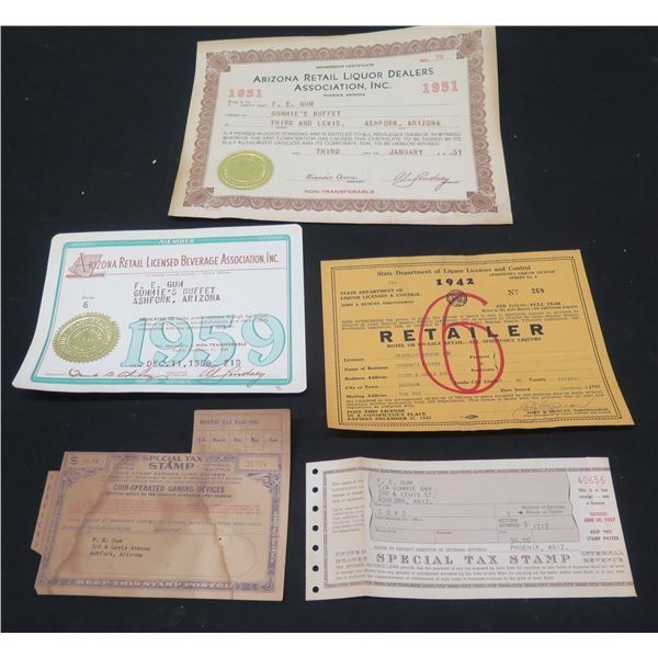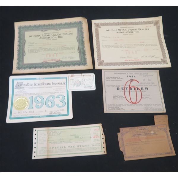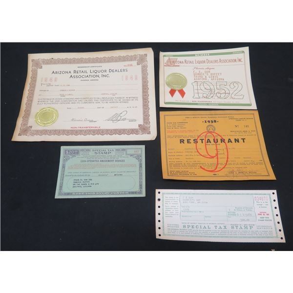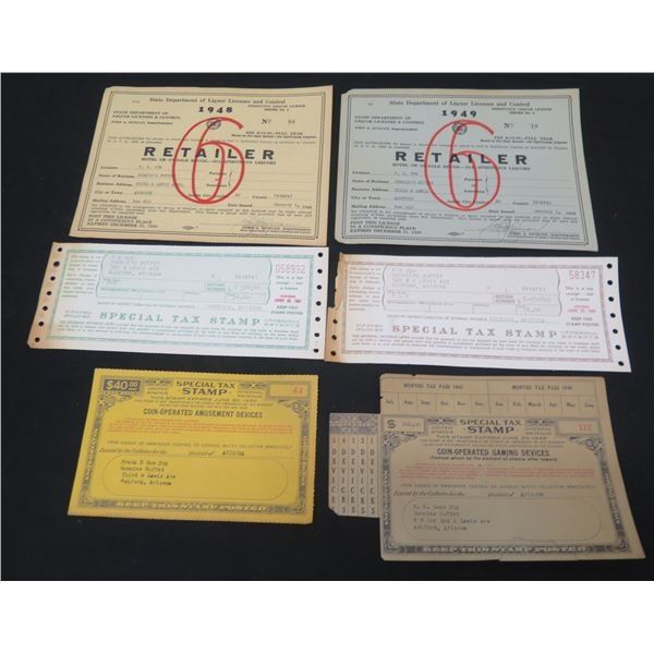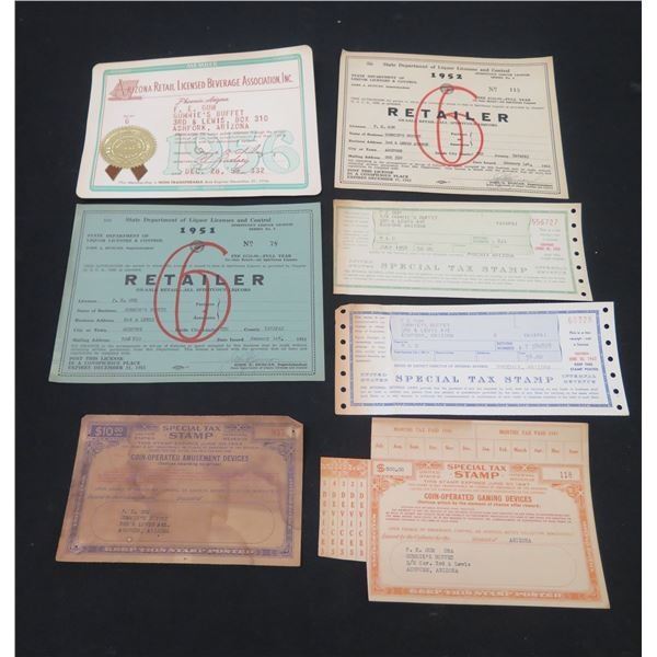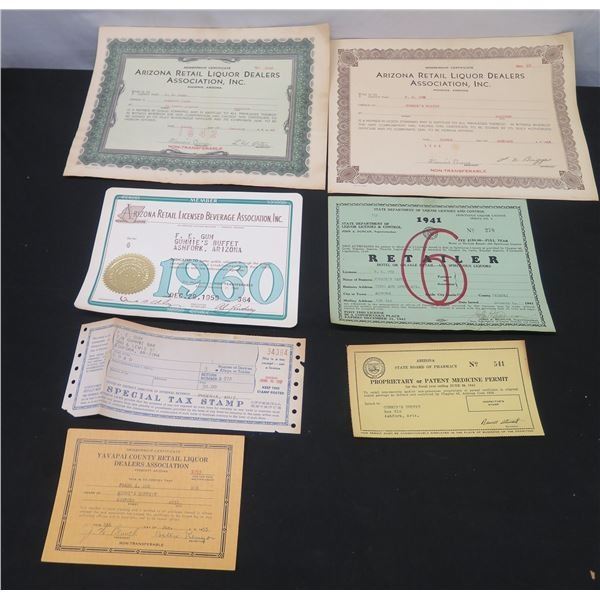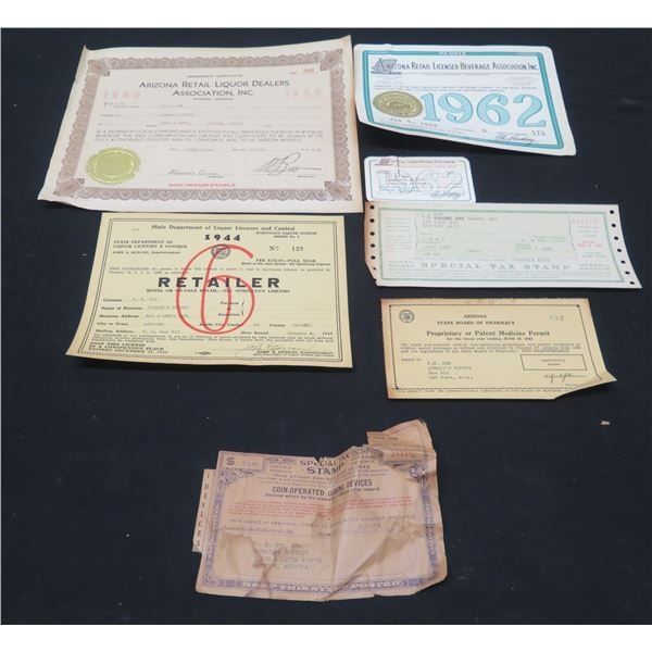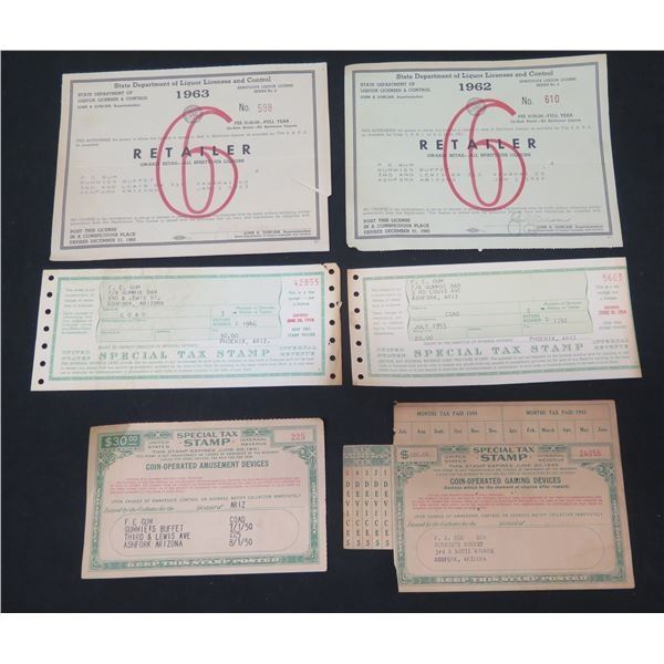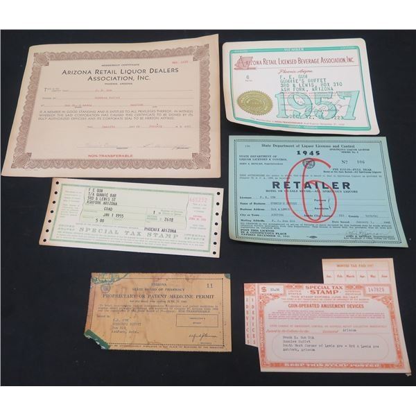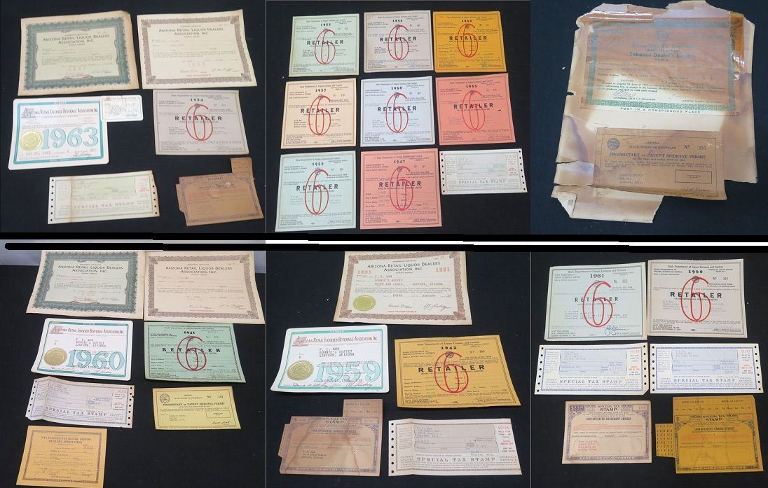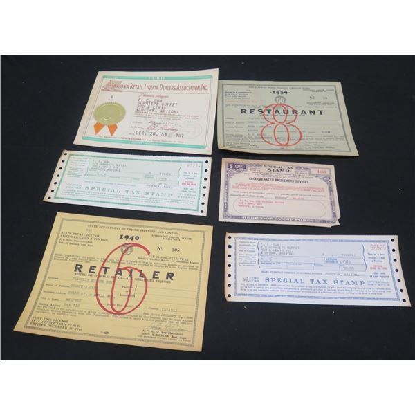 Multiple Vintage Arizona Liquor Licenses & Tax Stamps 1930's-1960's