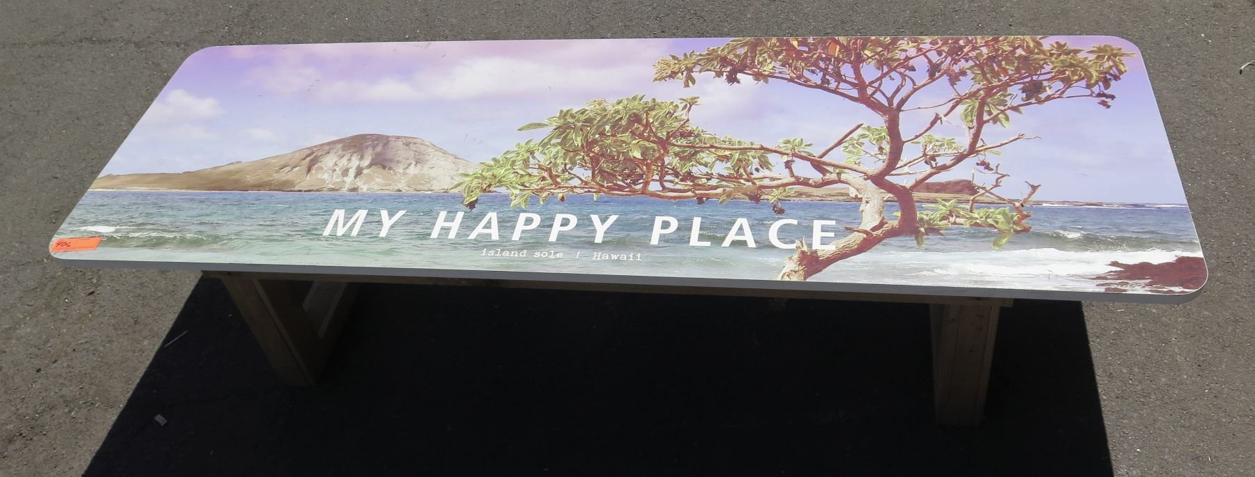 "My Happy Place" Hawaii Theme Promotional Bench w/ Laminate Top, Approx 17"x24"x72"