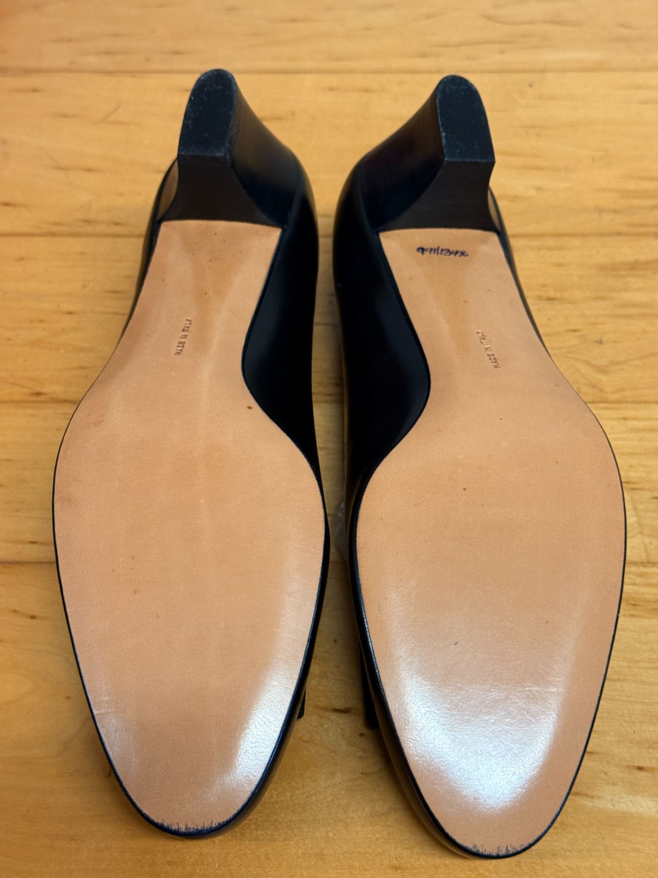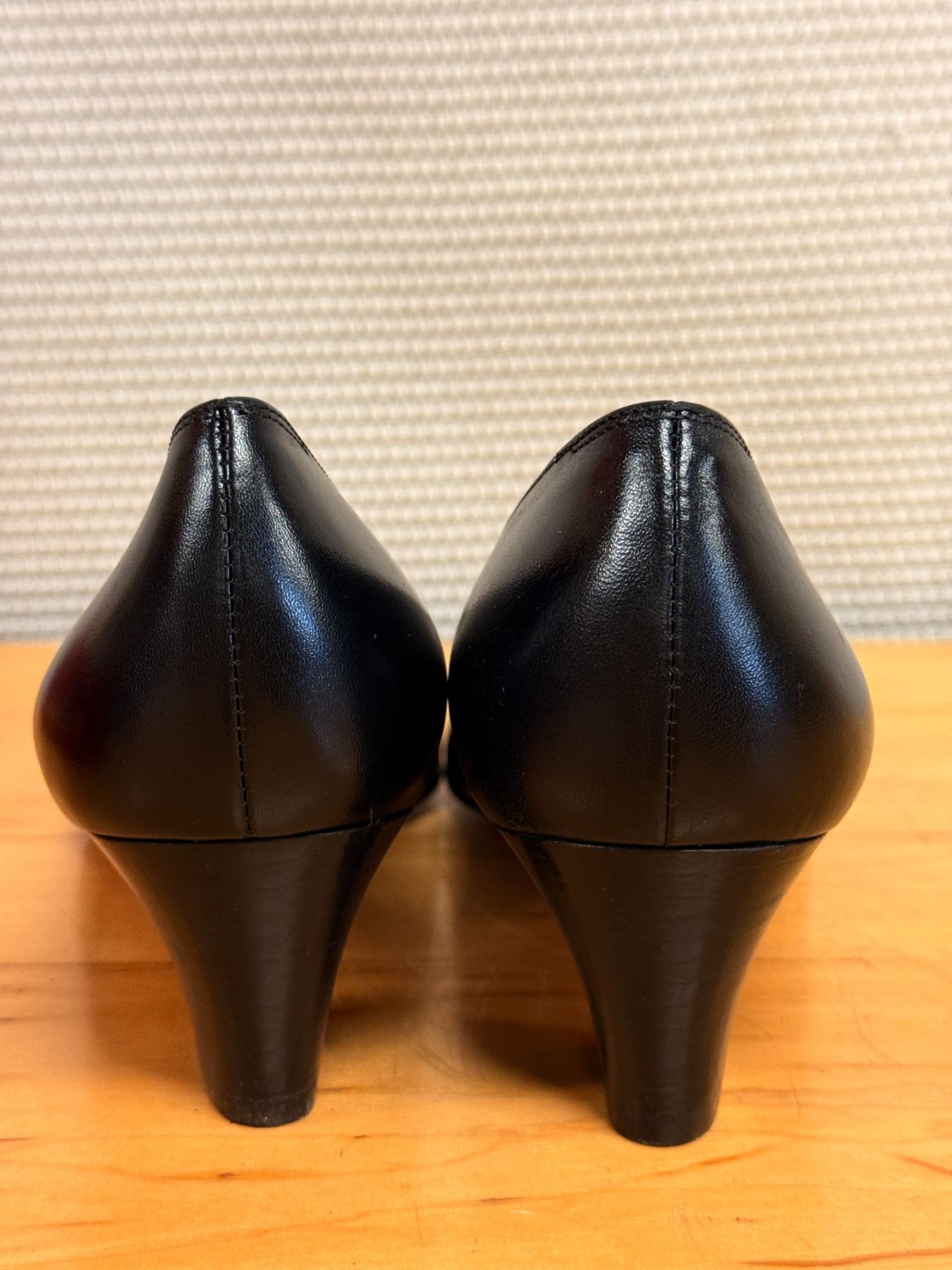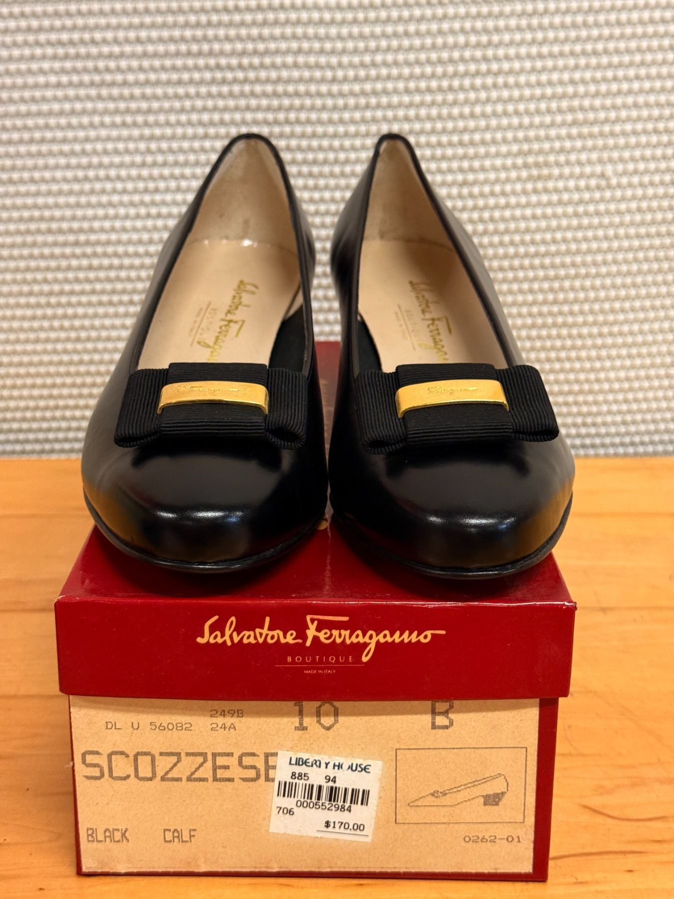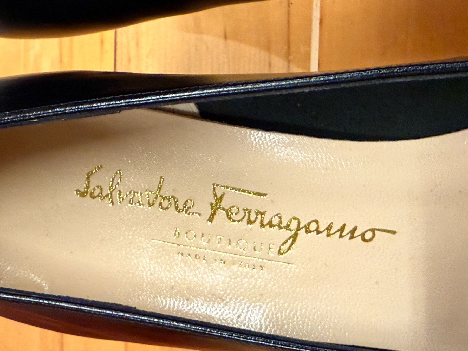 Signature Salvatore Ferragamo Vara pumps in smooth black leather with classic grosgrain bows and gold logo hardware. Timeless, elegant, and crafted in Italy. New and unworn, stored for years; heels have some signs of compromise due to storage wear.