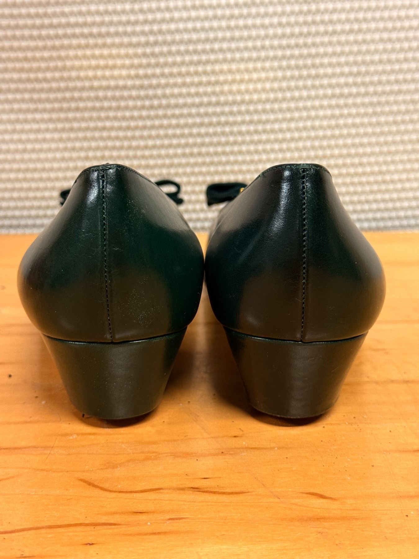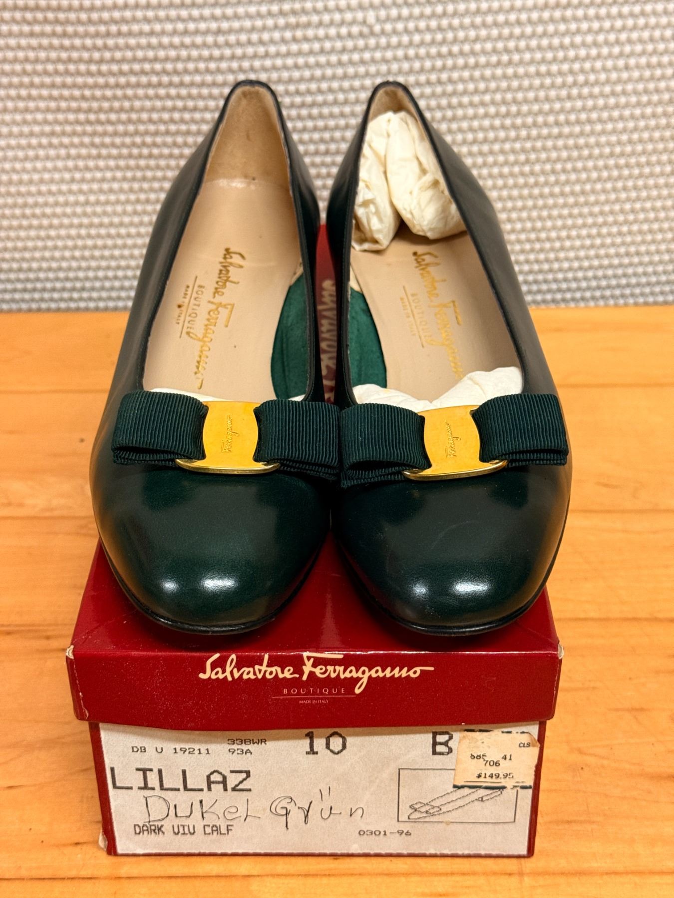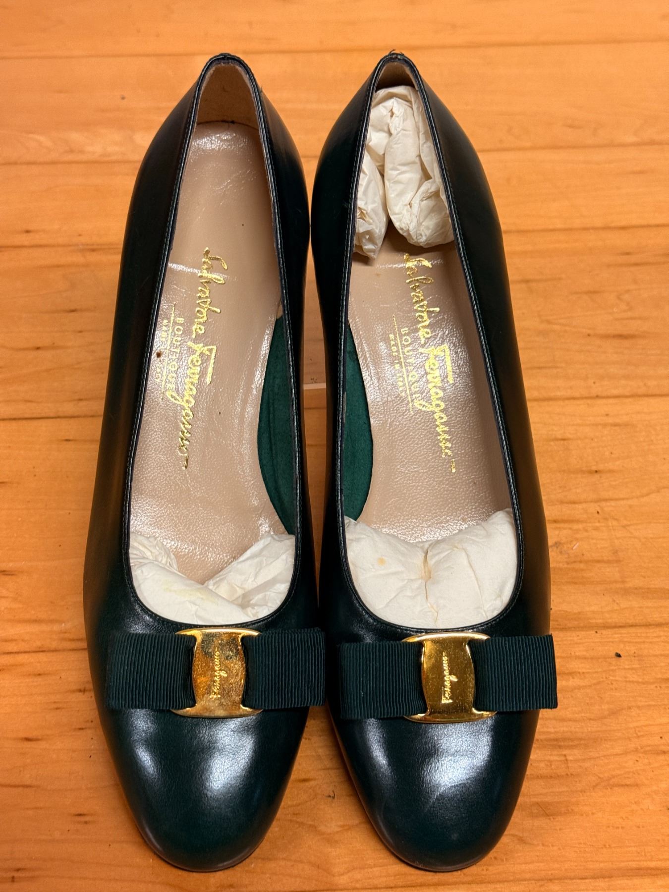 NEW Ferragamo Vara Dark Green Leather Flats Sz 10 B (heel needs repair)