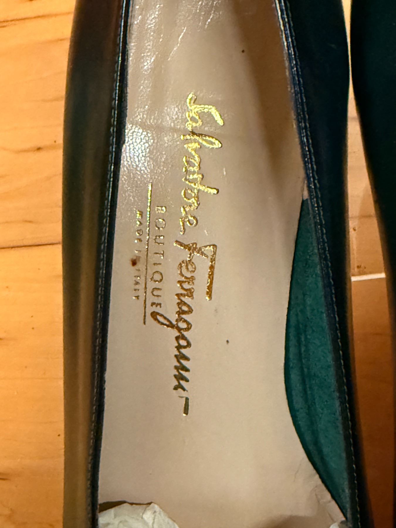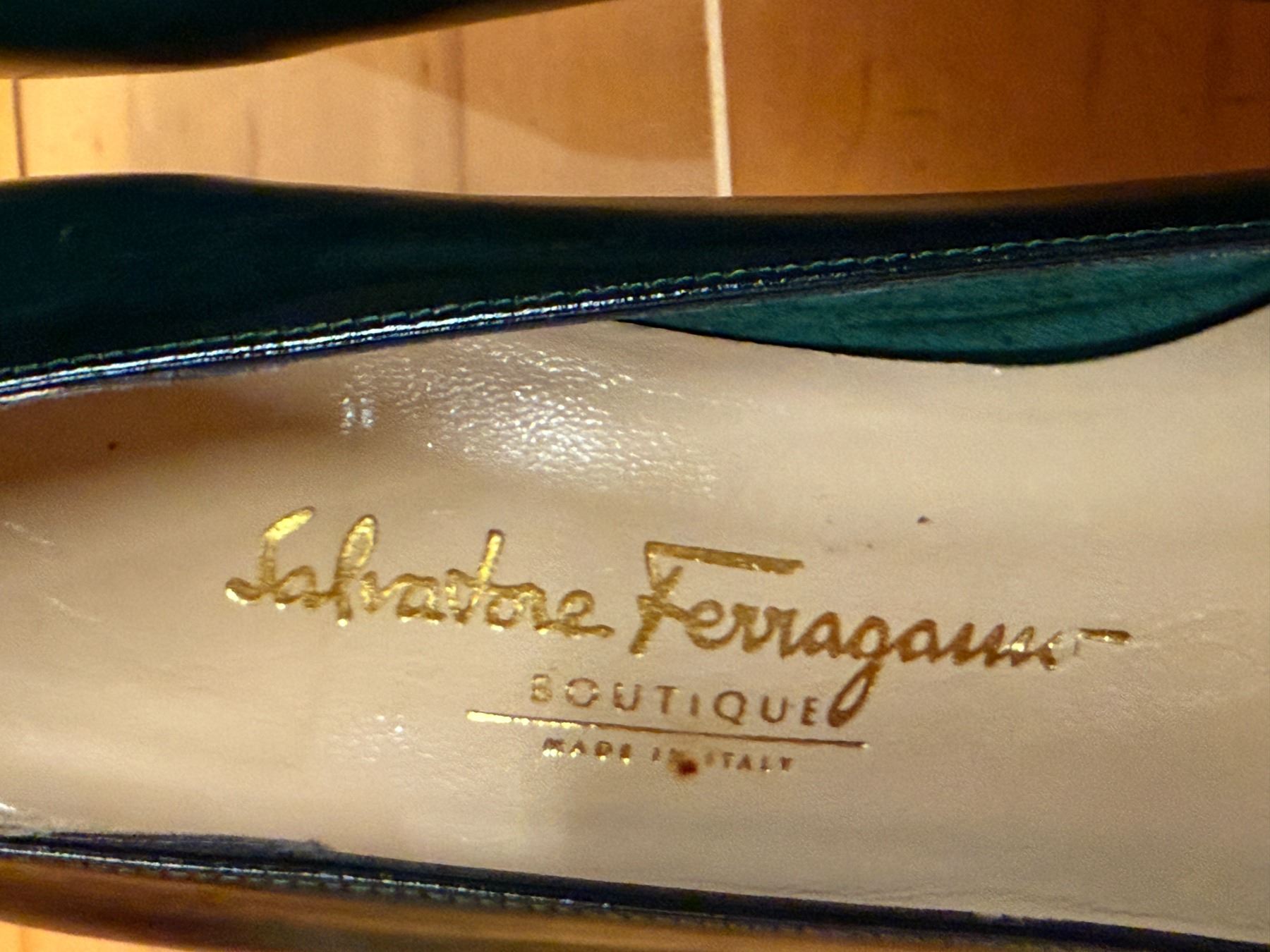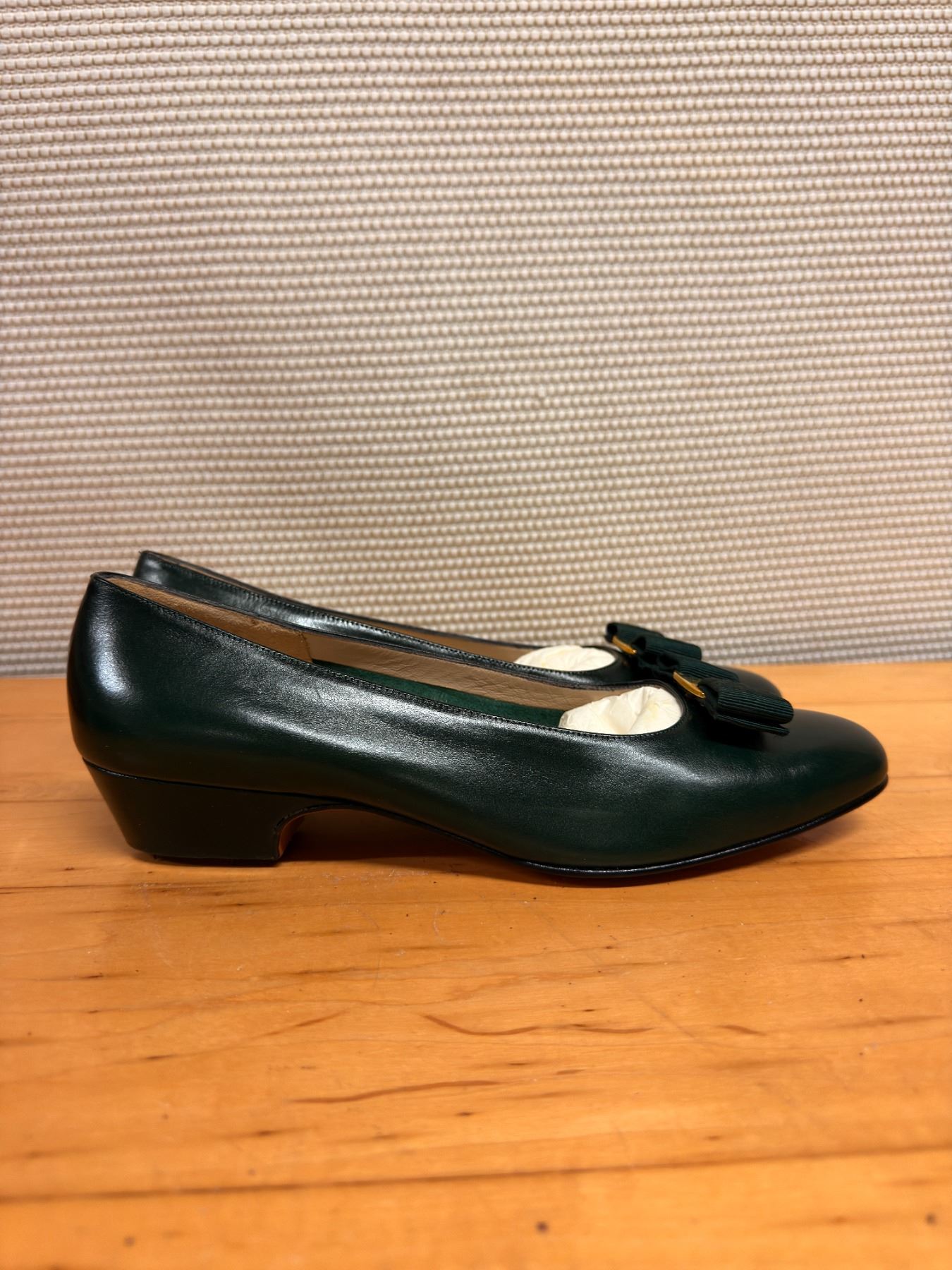 NEW Ferragamo Vara Dark Green Leather Flats Sz 10 B   (heel needs repair)