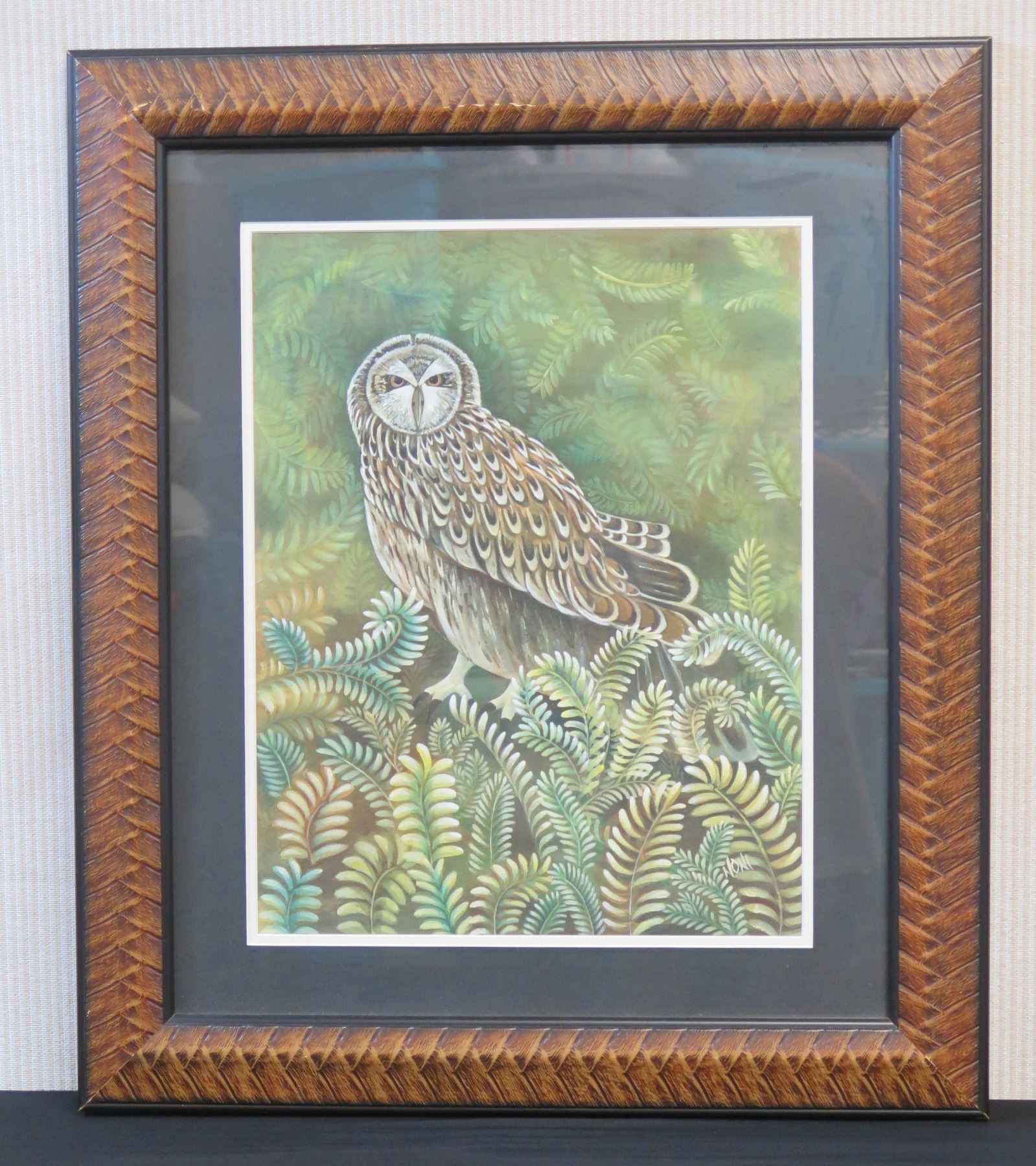 Na Pueo Original Watercoler by Noni Floyd, Framed & Matted 25" x 29"