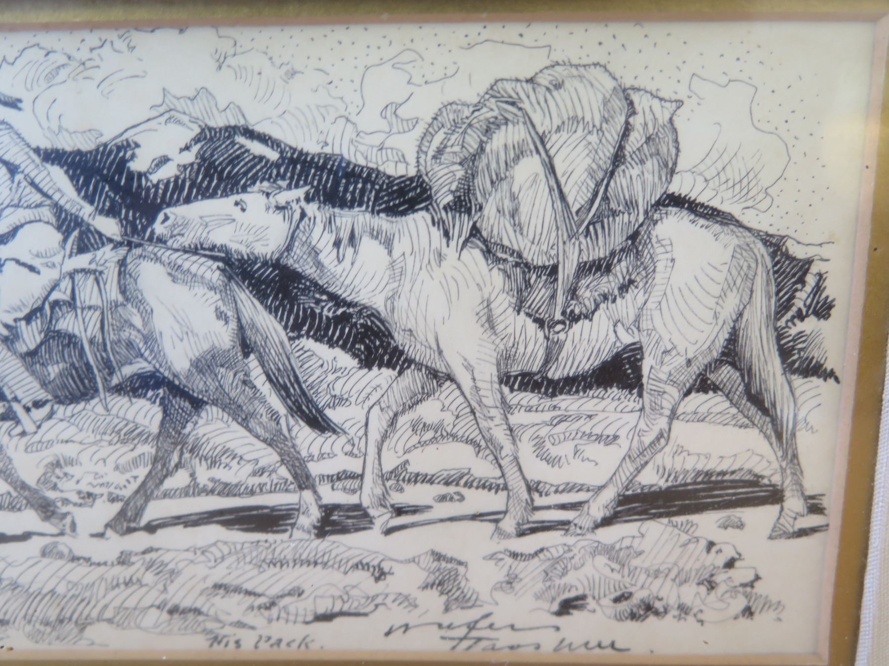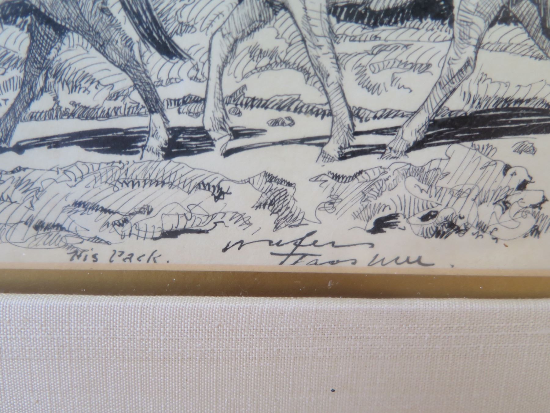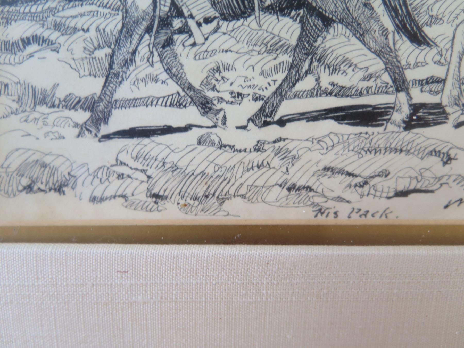 Native American on Horseback “His Pack” Pen and Ink Sketch, Signed by Artist Wafer?, Taos, NM, Framed & Matted 17"x14"
