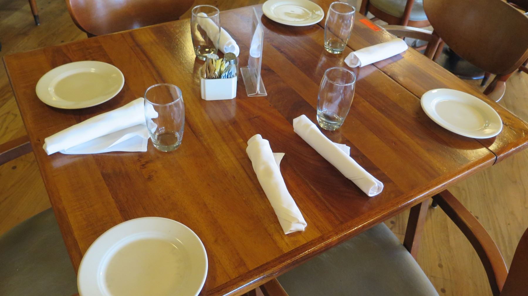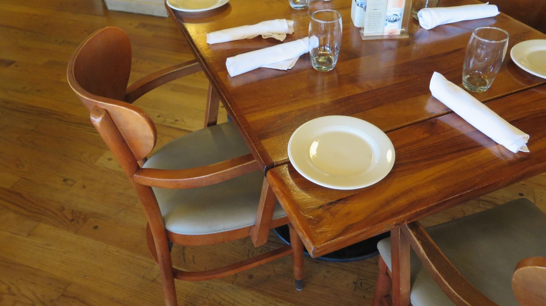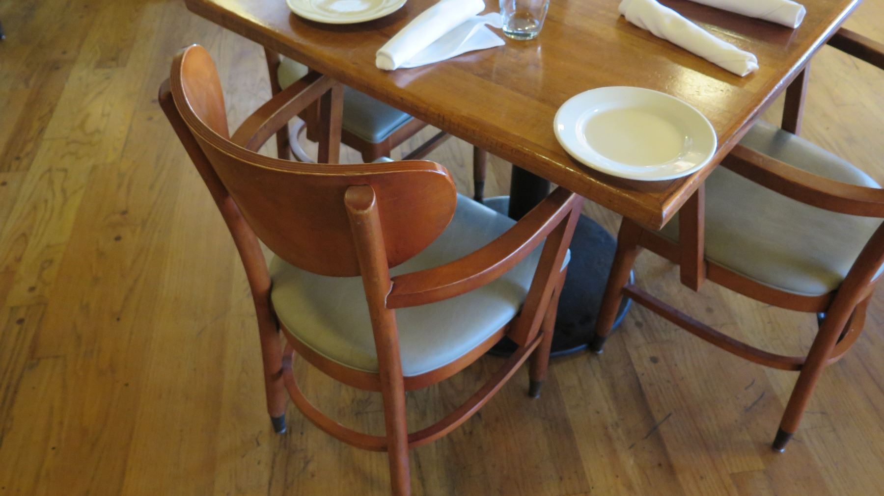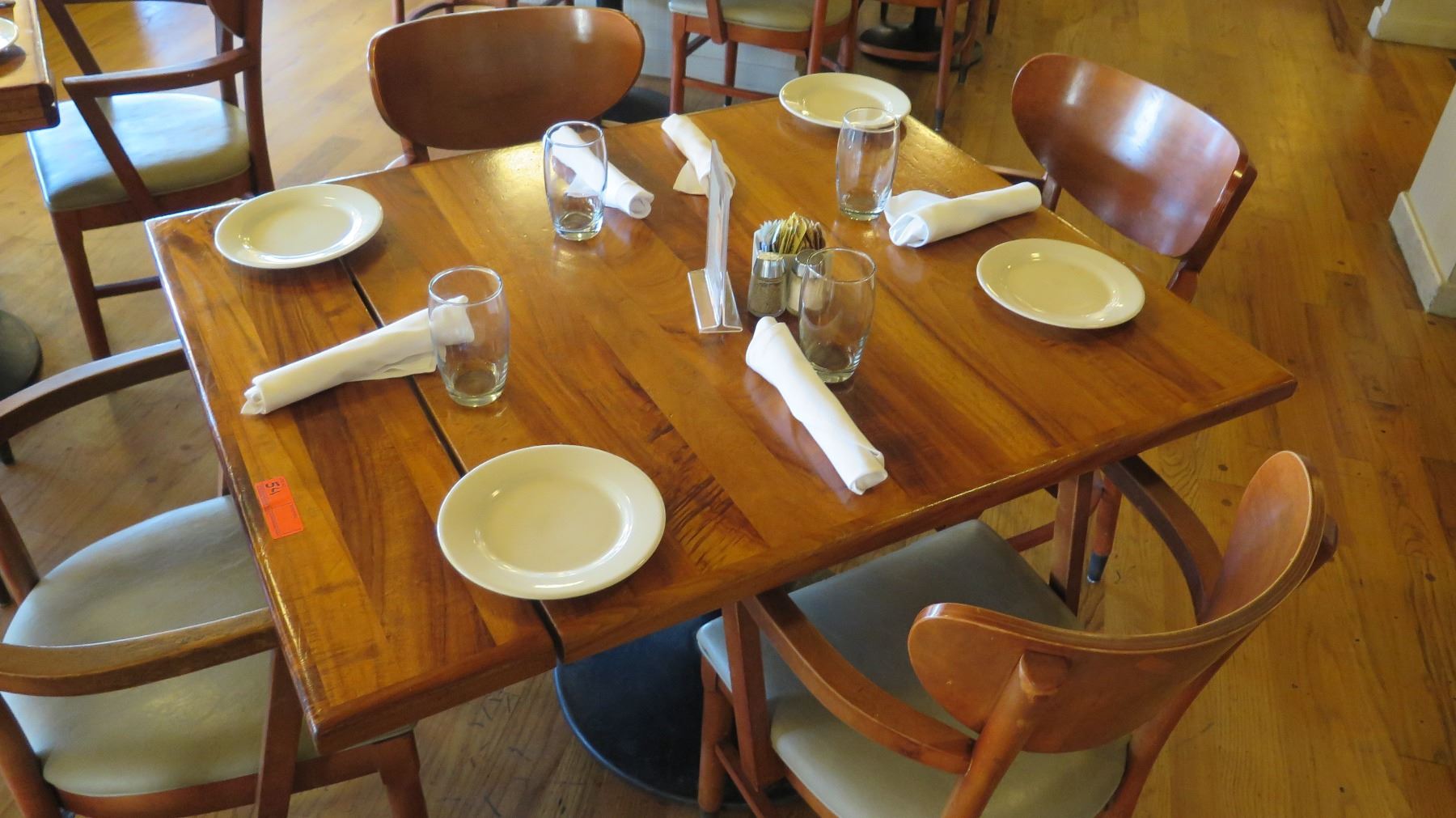 Natural Koa Wood Table w/Rounded Base (25" x 25") w/4 Chairs