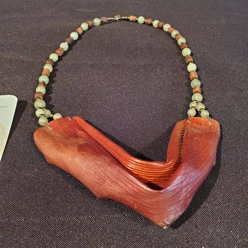 One Palm Sheath Drape Necklace and Matching Earrings with Alexandra Palm Sheath Aventurine Wood Beads