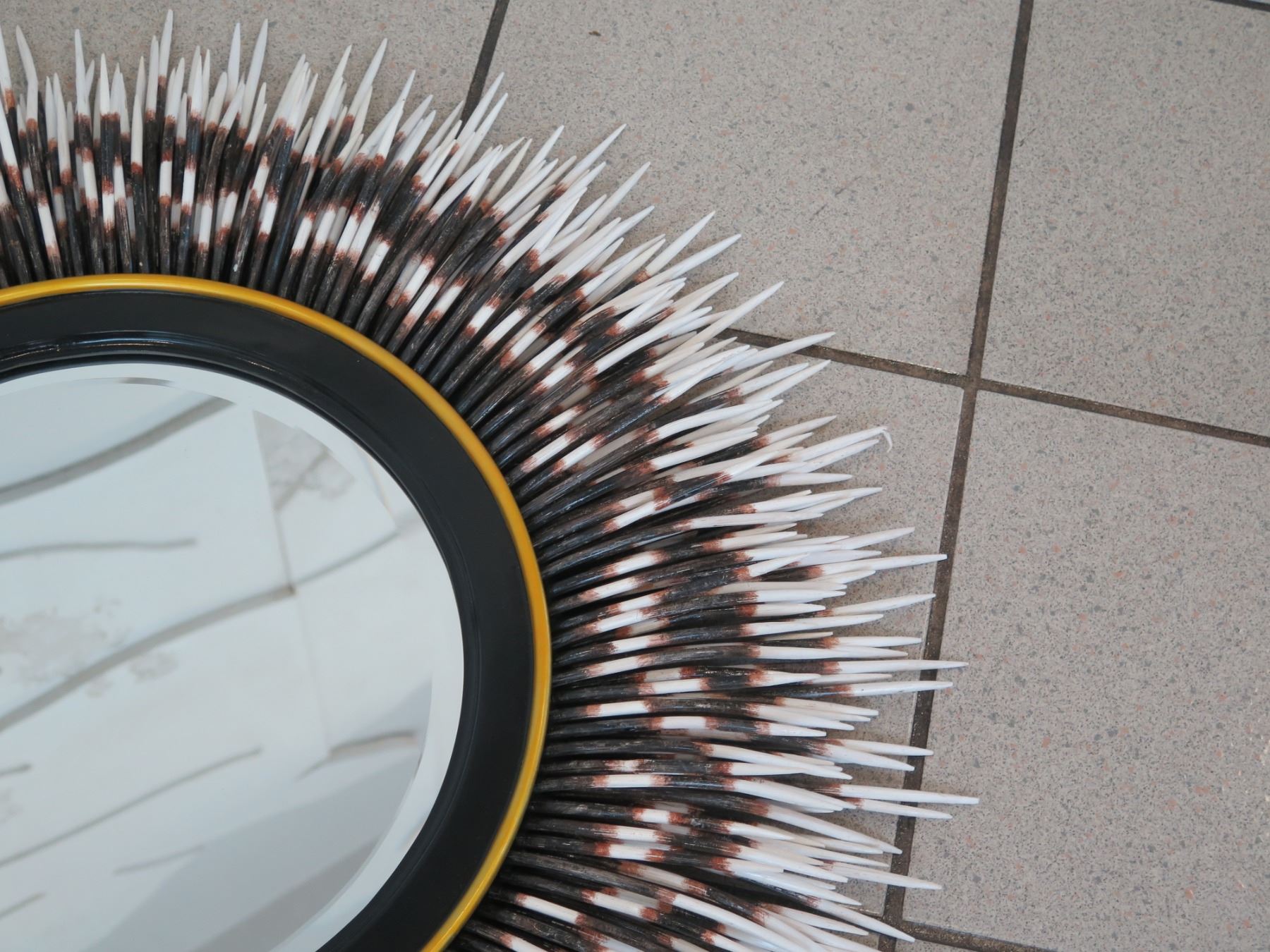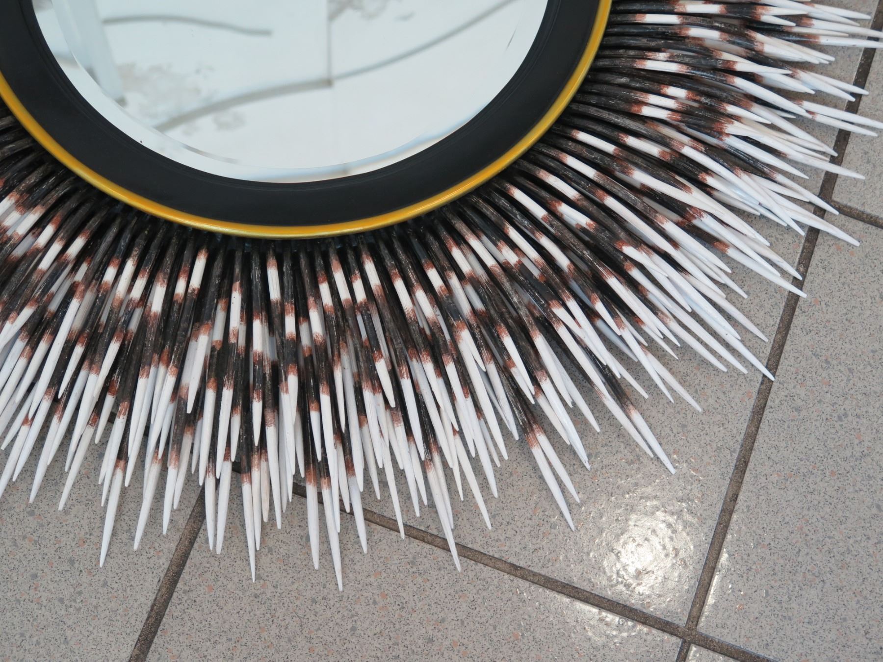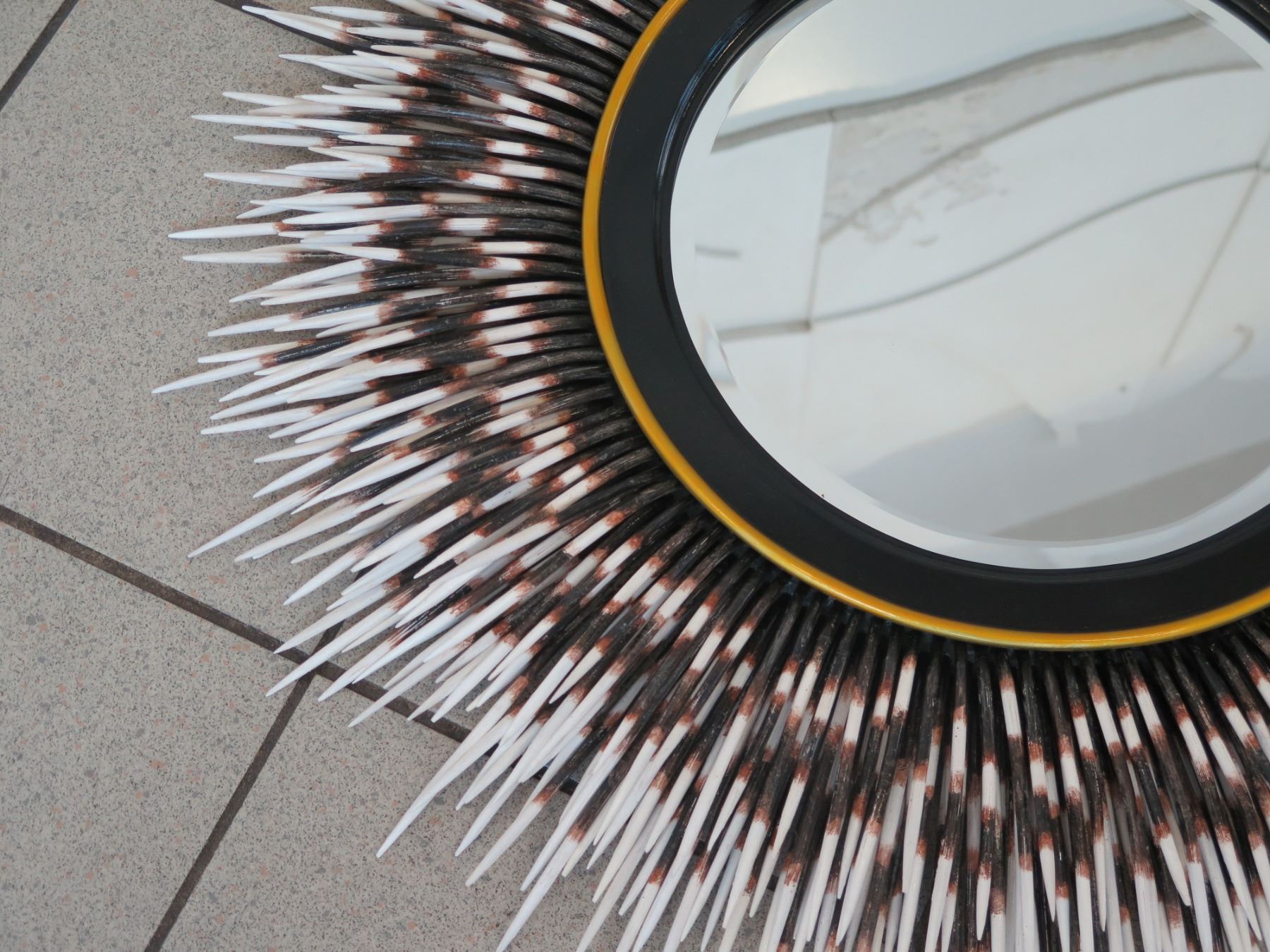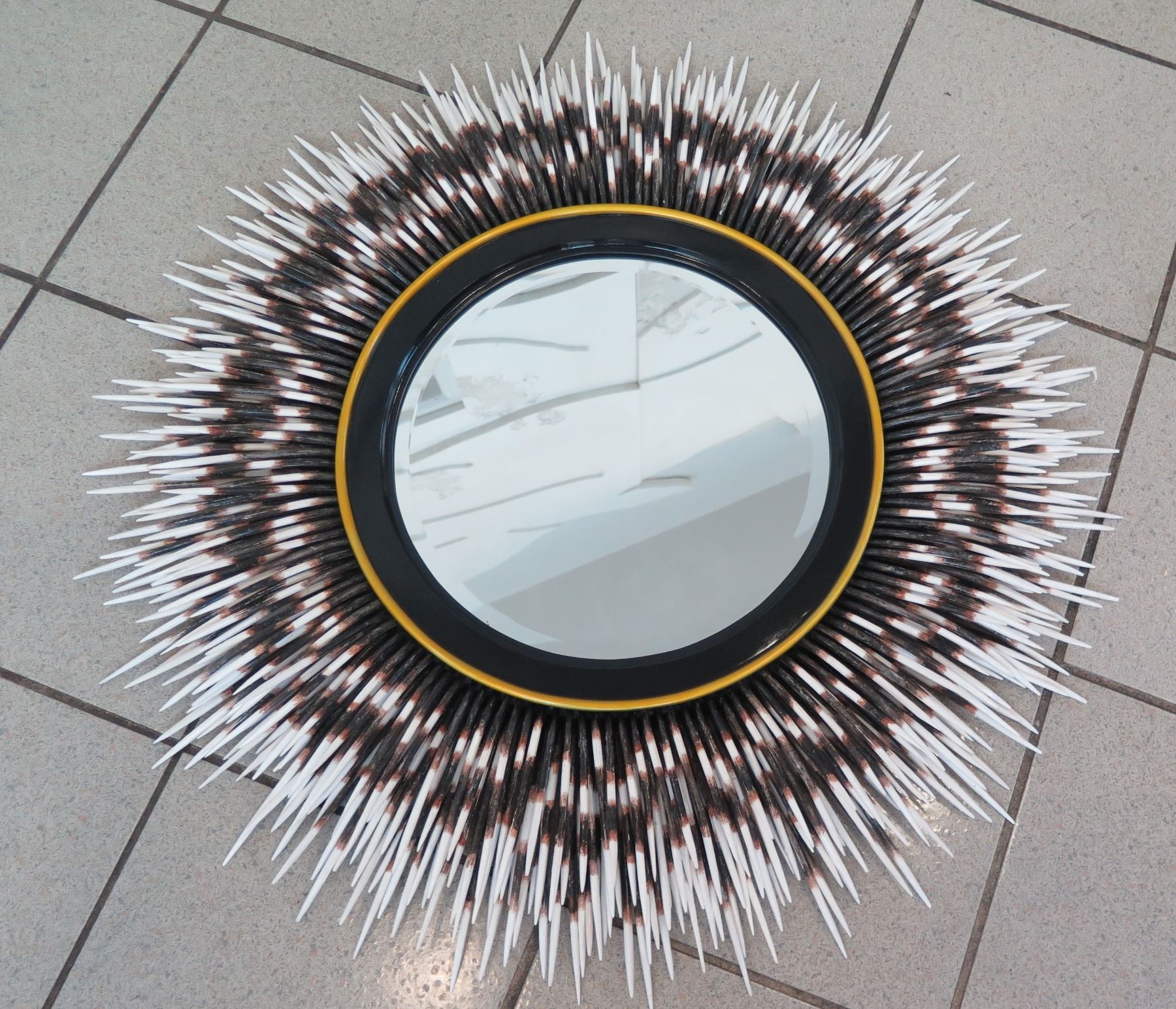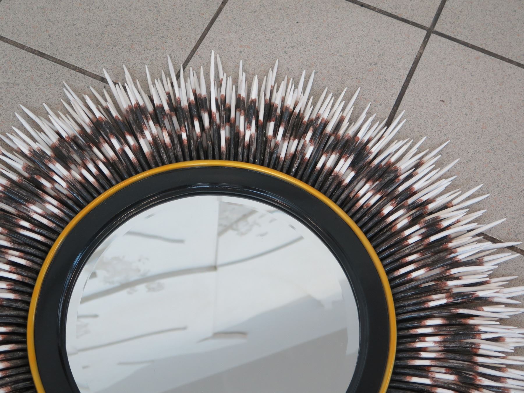 Neiman Marcus Round Mirror with Wood-Tip Fringe (Overall Diameter 34")