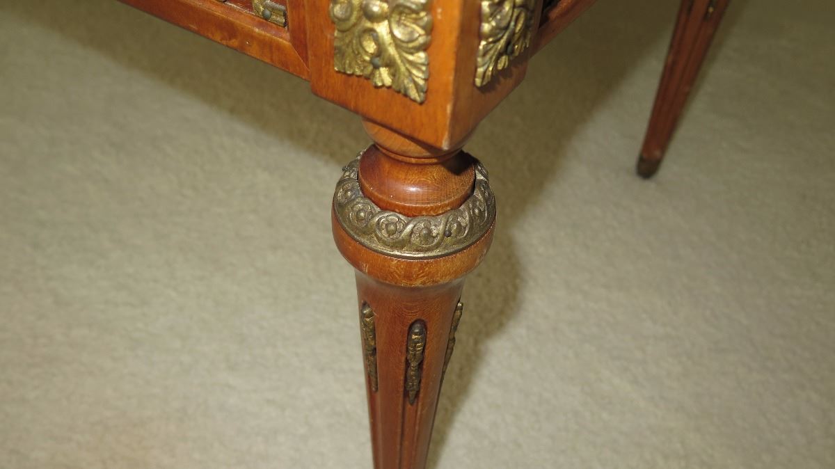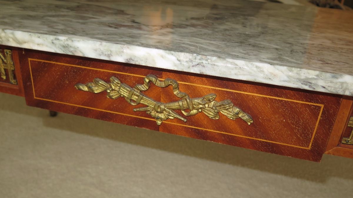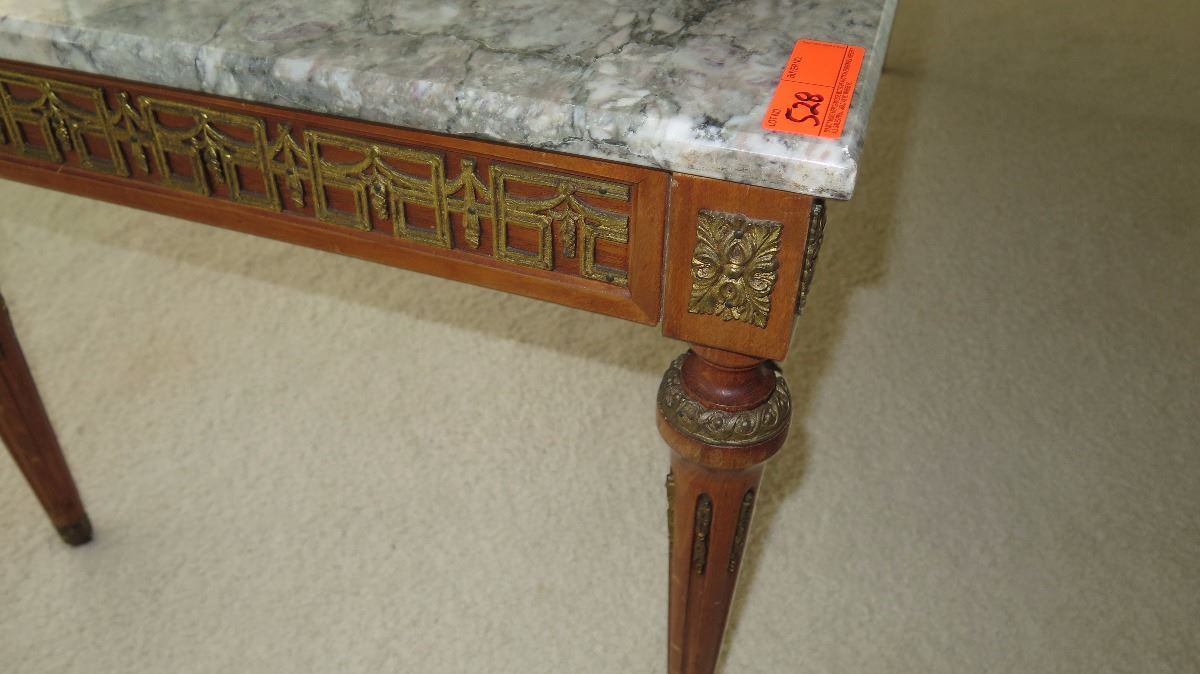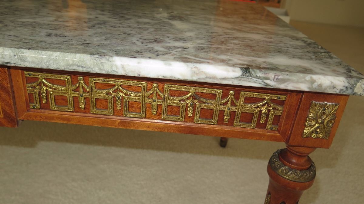 Neoclassical White Marble Table w/Gilt Ornamentation 46x23x18