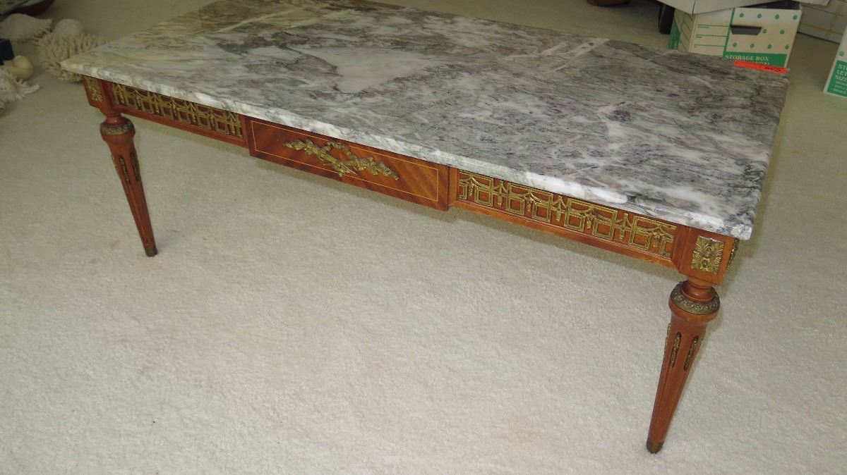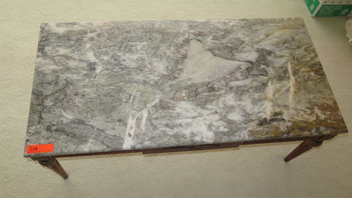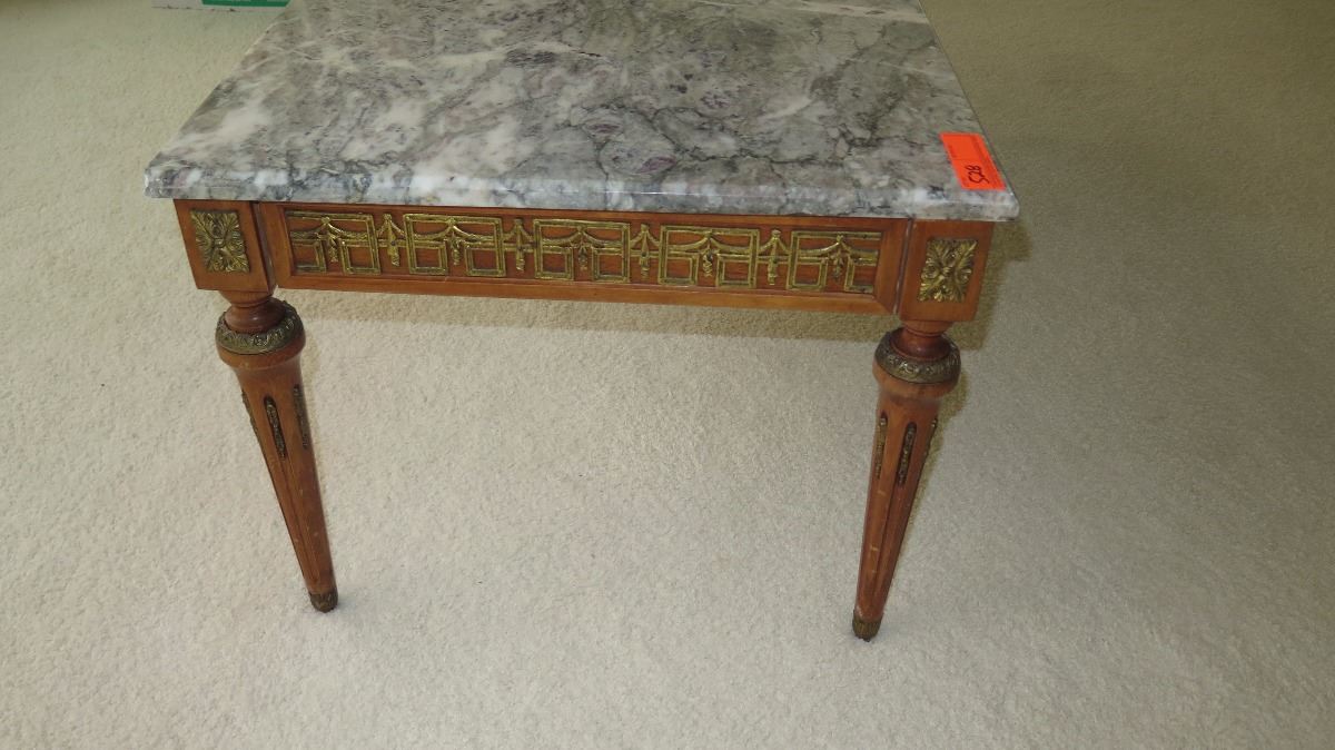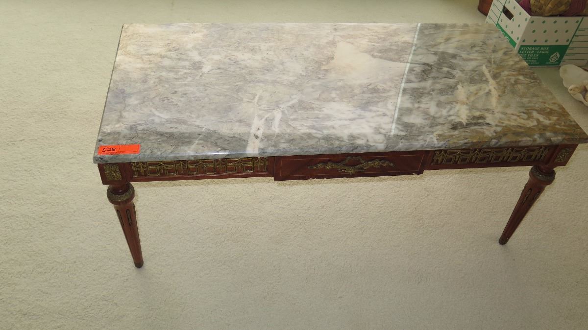 Neoclassical White Marble Table w/Gilt Ornamentation 46x23x18