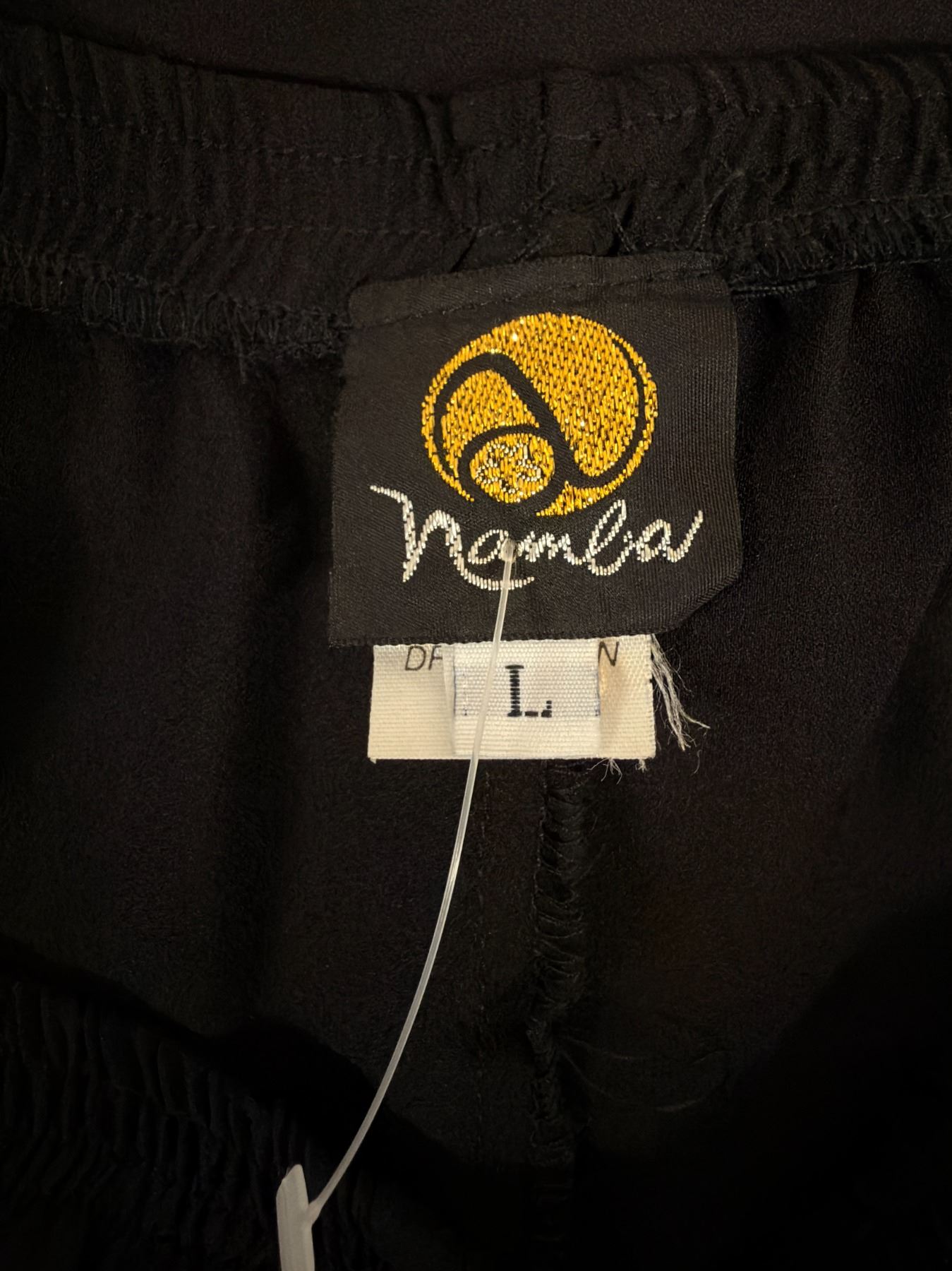 New Anne Namba Women's Black Silk Wide Leg Pants w/ Elastic Waist, Size L, 40"L