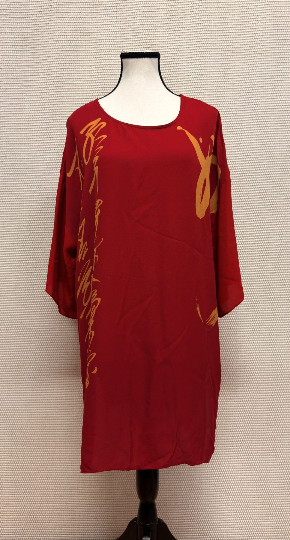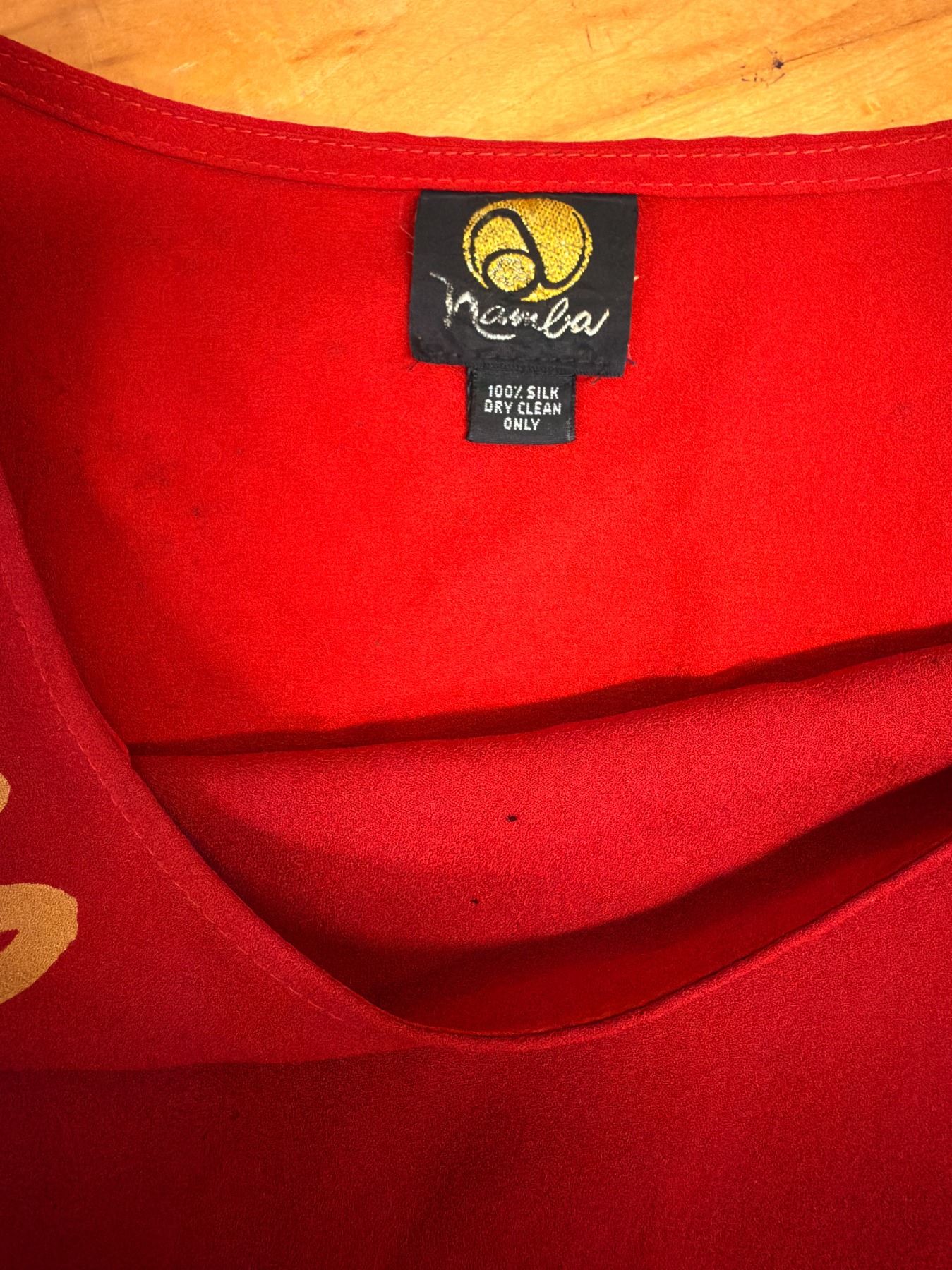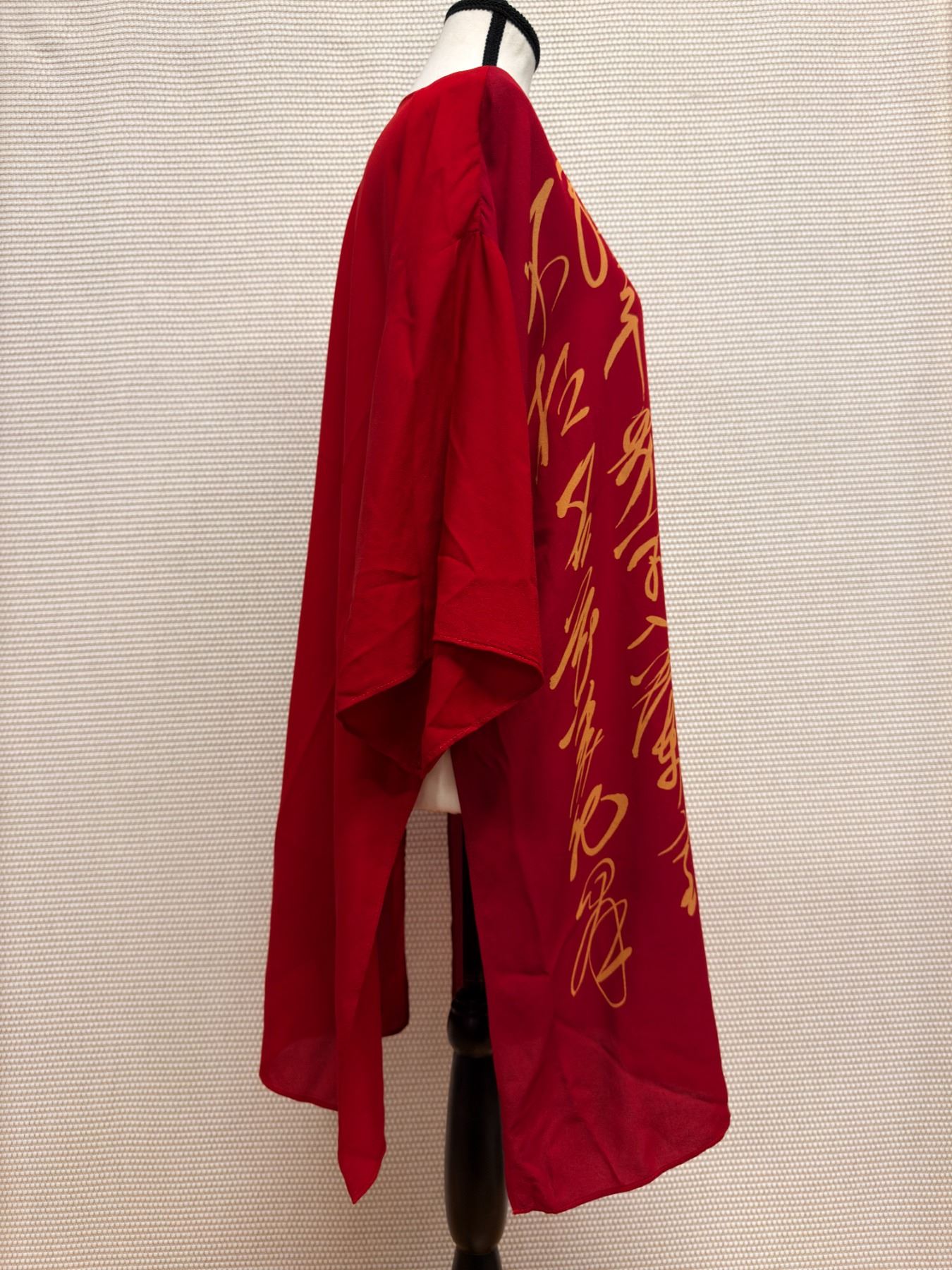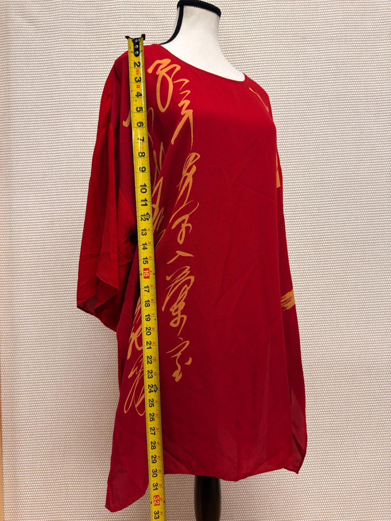 New Anne Namba Women's Red 100% Silk Tunic w/ Gold Accents, Size L, 30"L