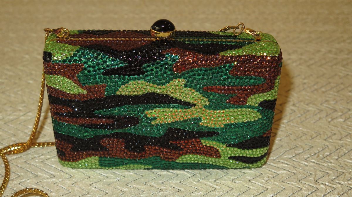 New Austrian Crystal Purse/Handbag - Camouflage Pattern Black, Green, Brown