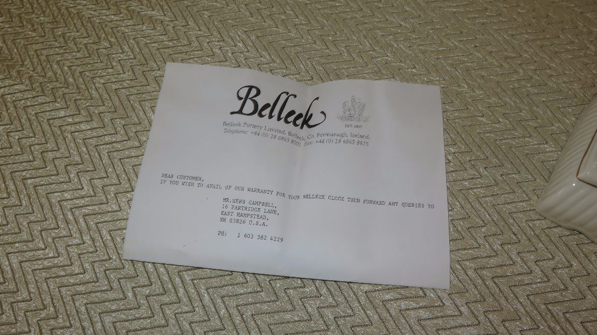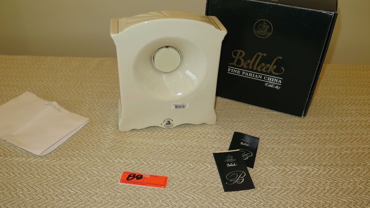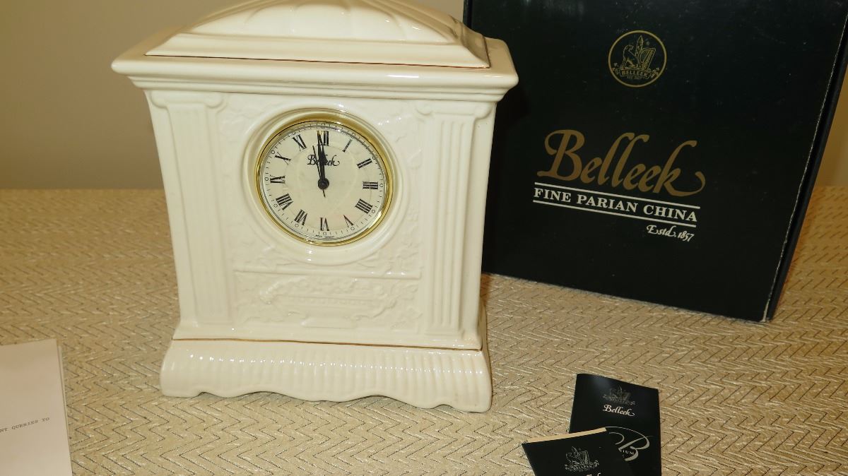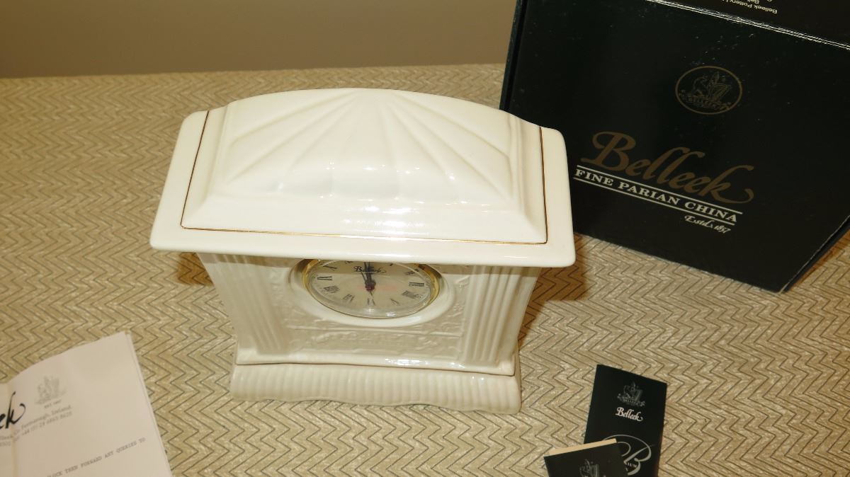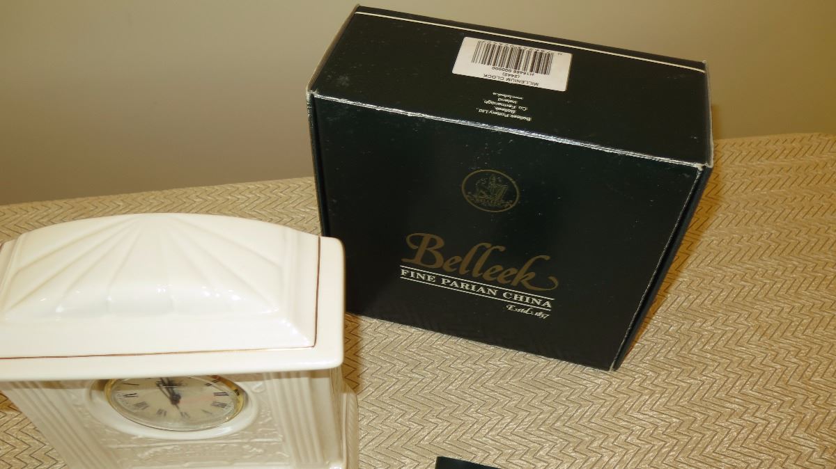 New Belleek Fine White Porcelain Millenium Clock - Neoclassical Motif