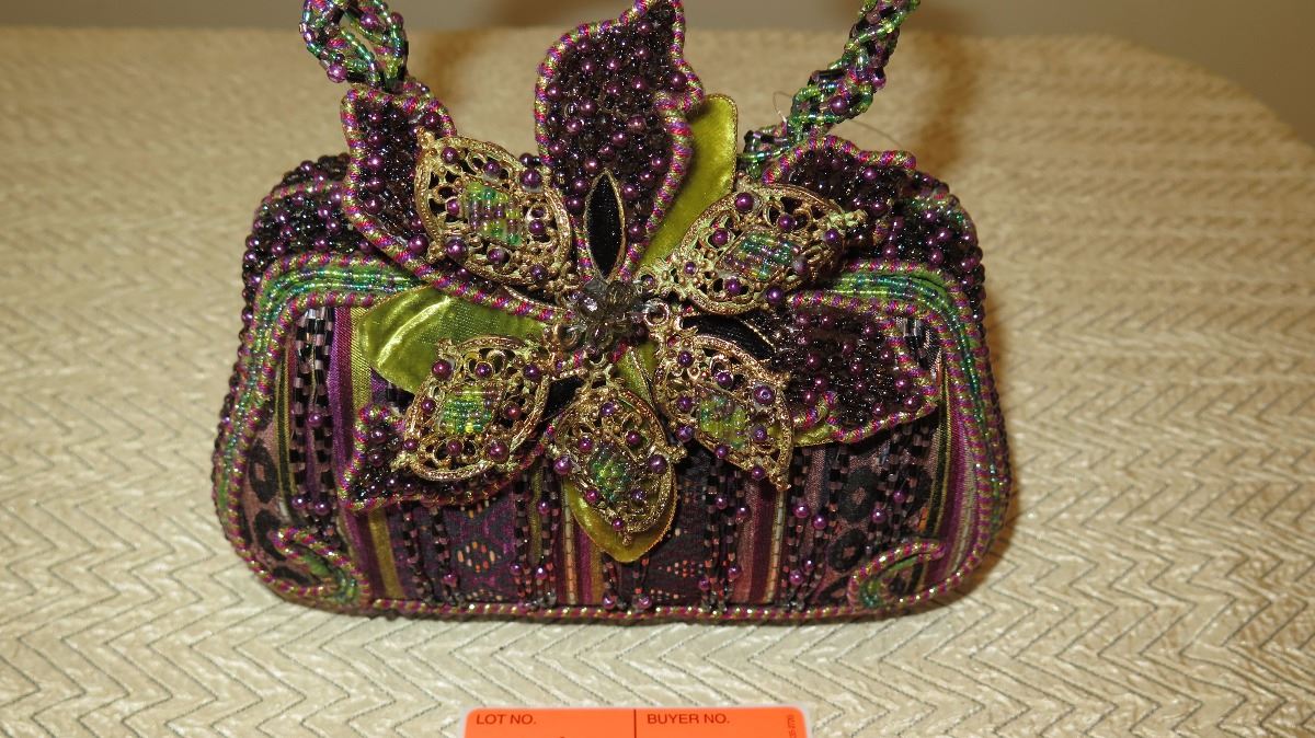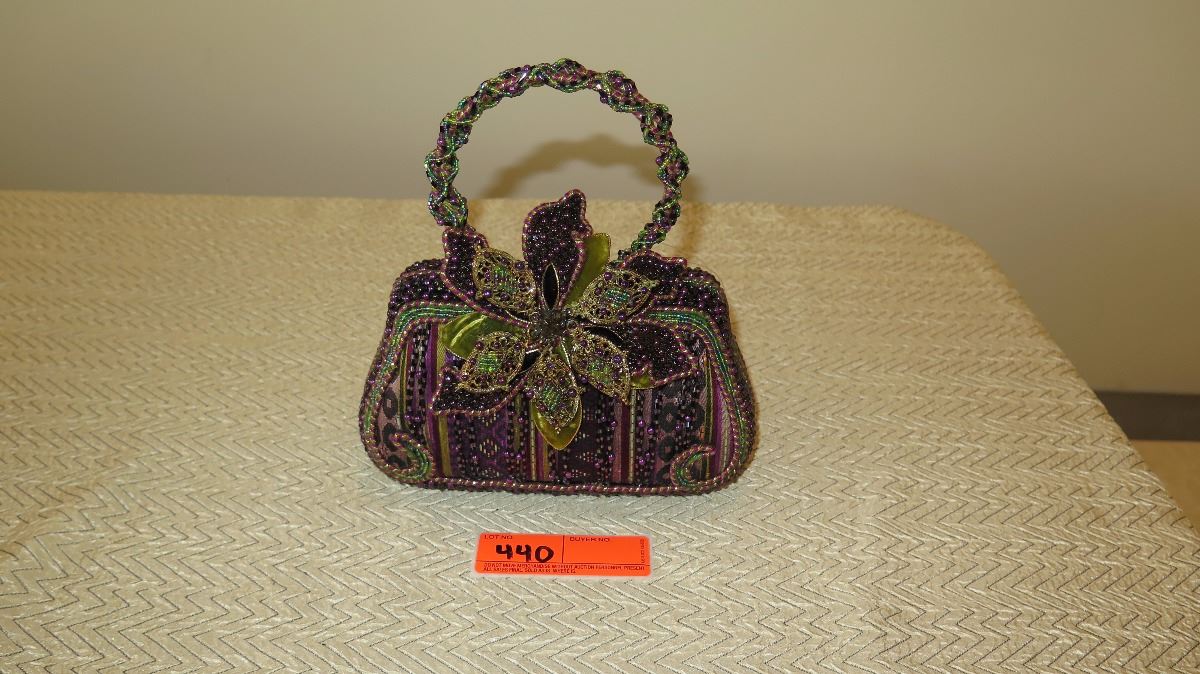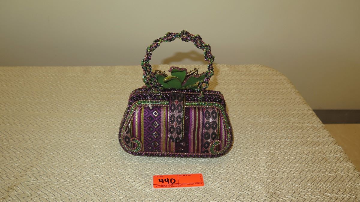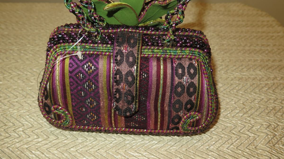 New Collectible Bag: Plum Bohemian Fabric, Petals Accent, Ring Handle