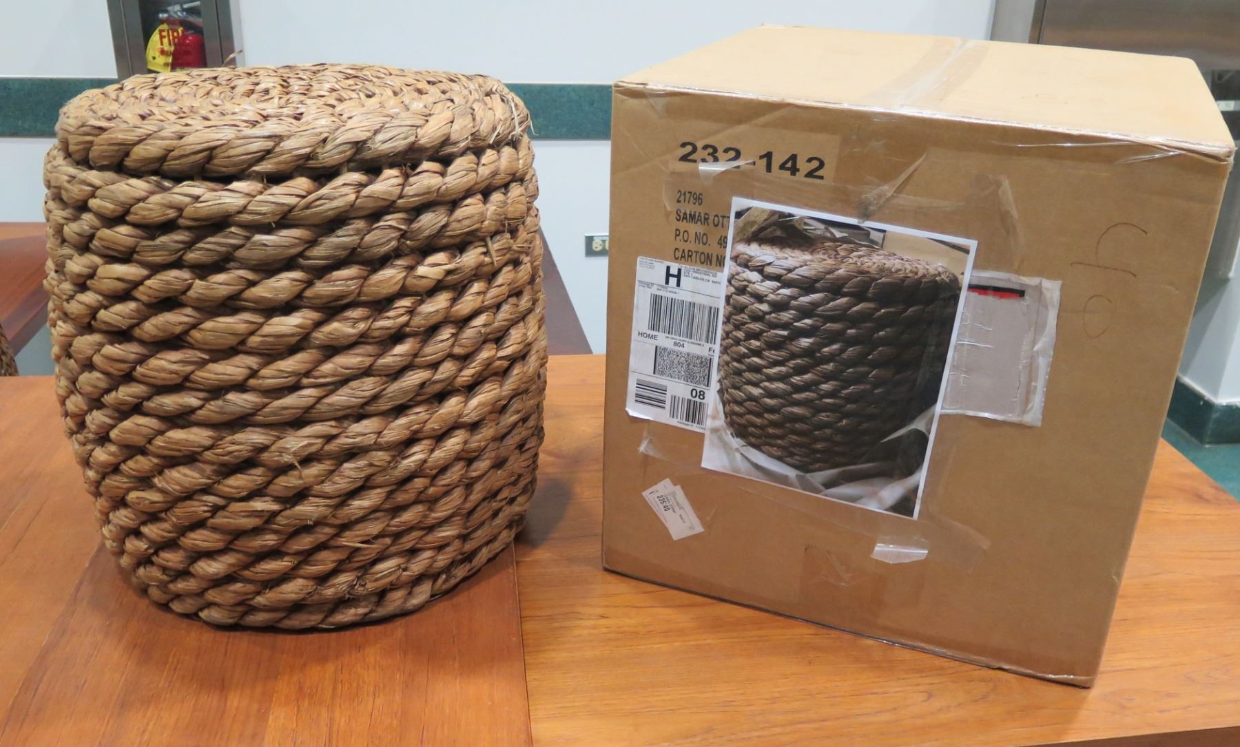 New Crate & Barrel Samar Ottoman Side Table w/Thick Woven Design Al 232-142. Comes with box.