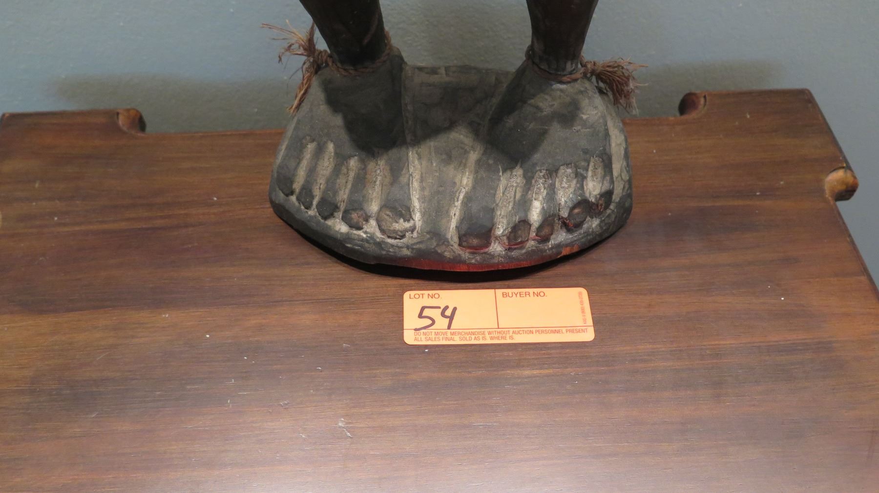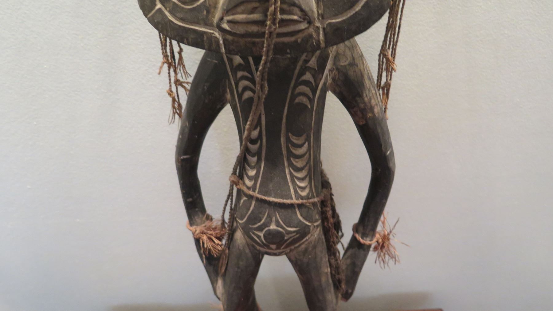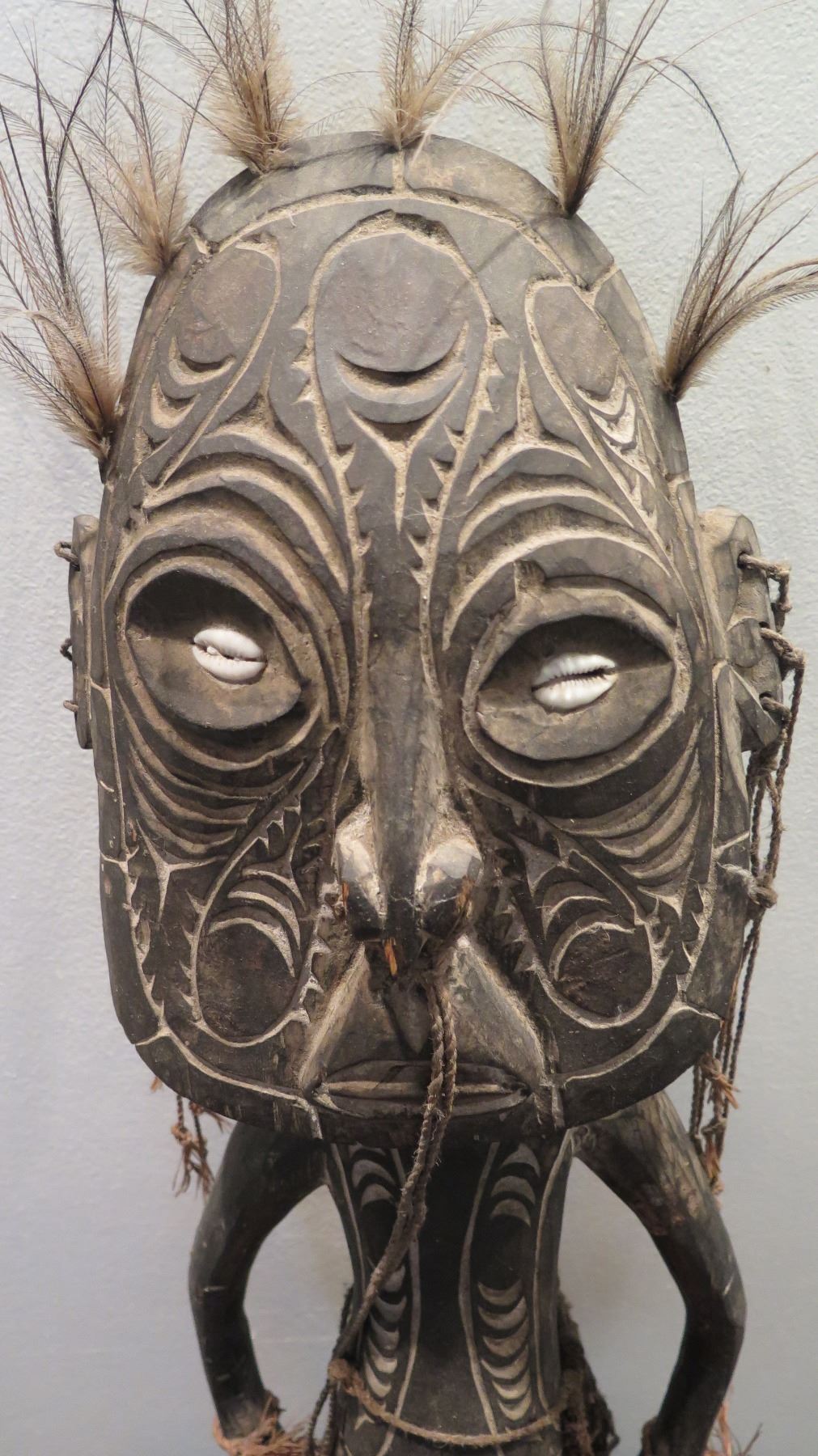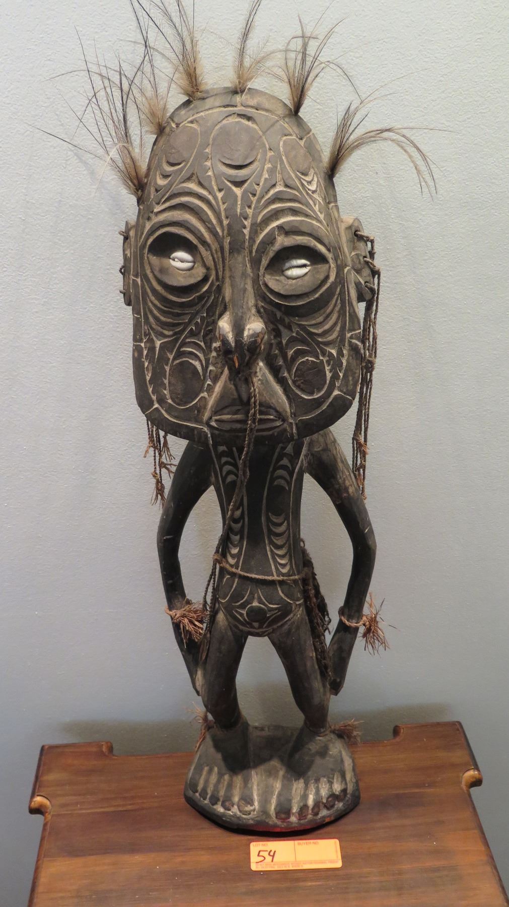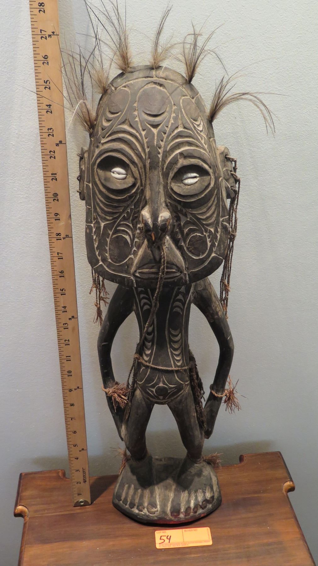 New Guinea Polychromed Carved Wood Figurine w/ Seashell Eyes 26" H