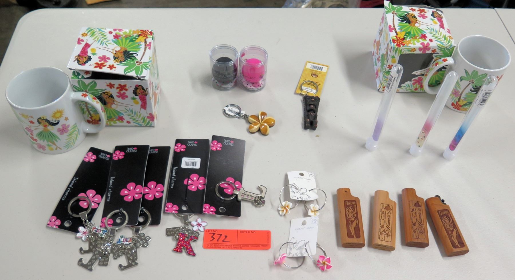 New Hawaii Souvenirs - Key Chains, Earrings, Mugs, Lighter Cases, Tiki, etc