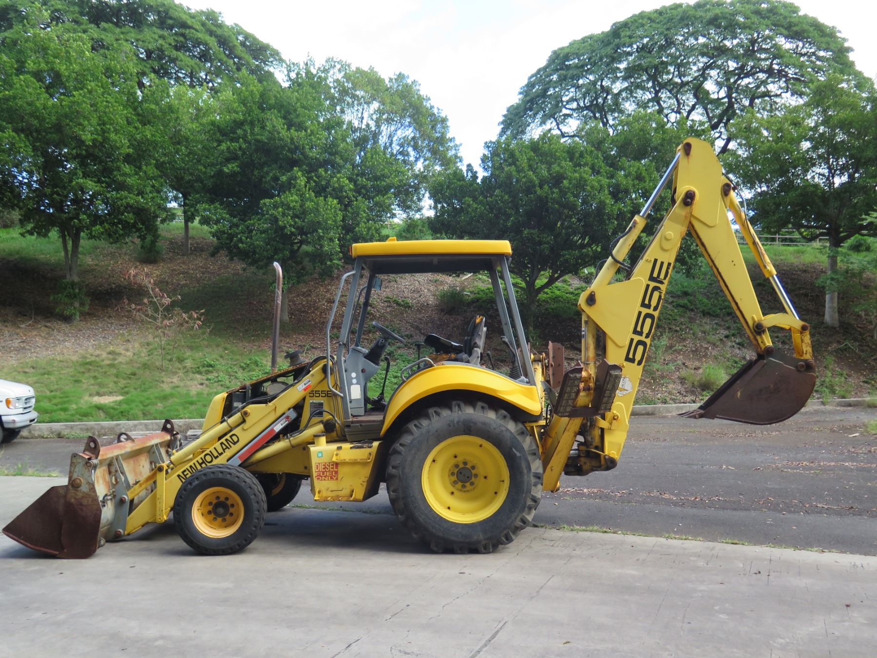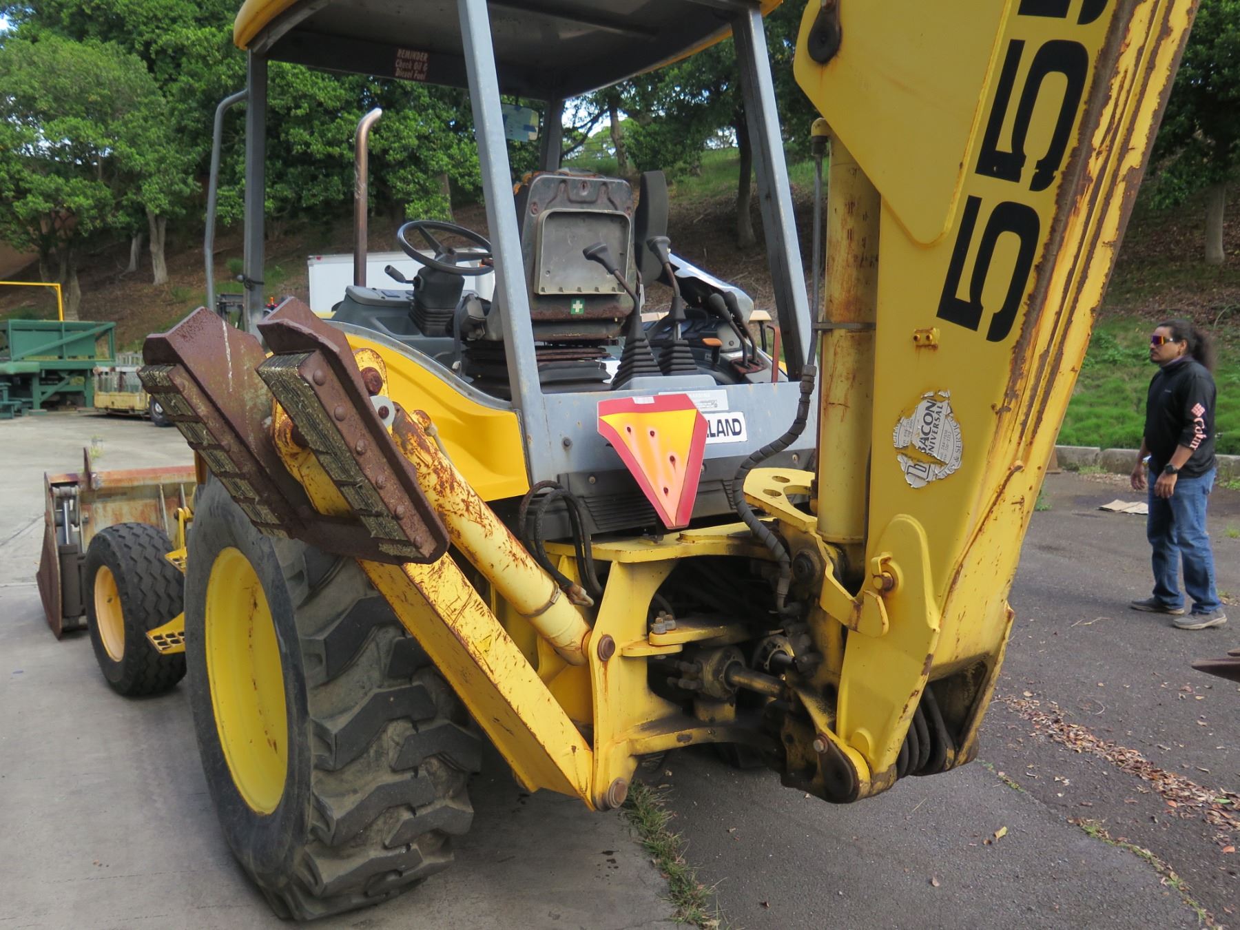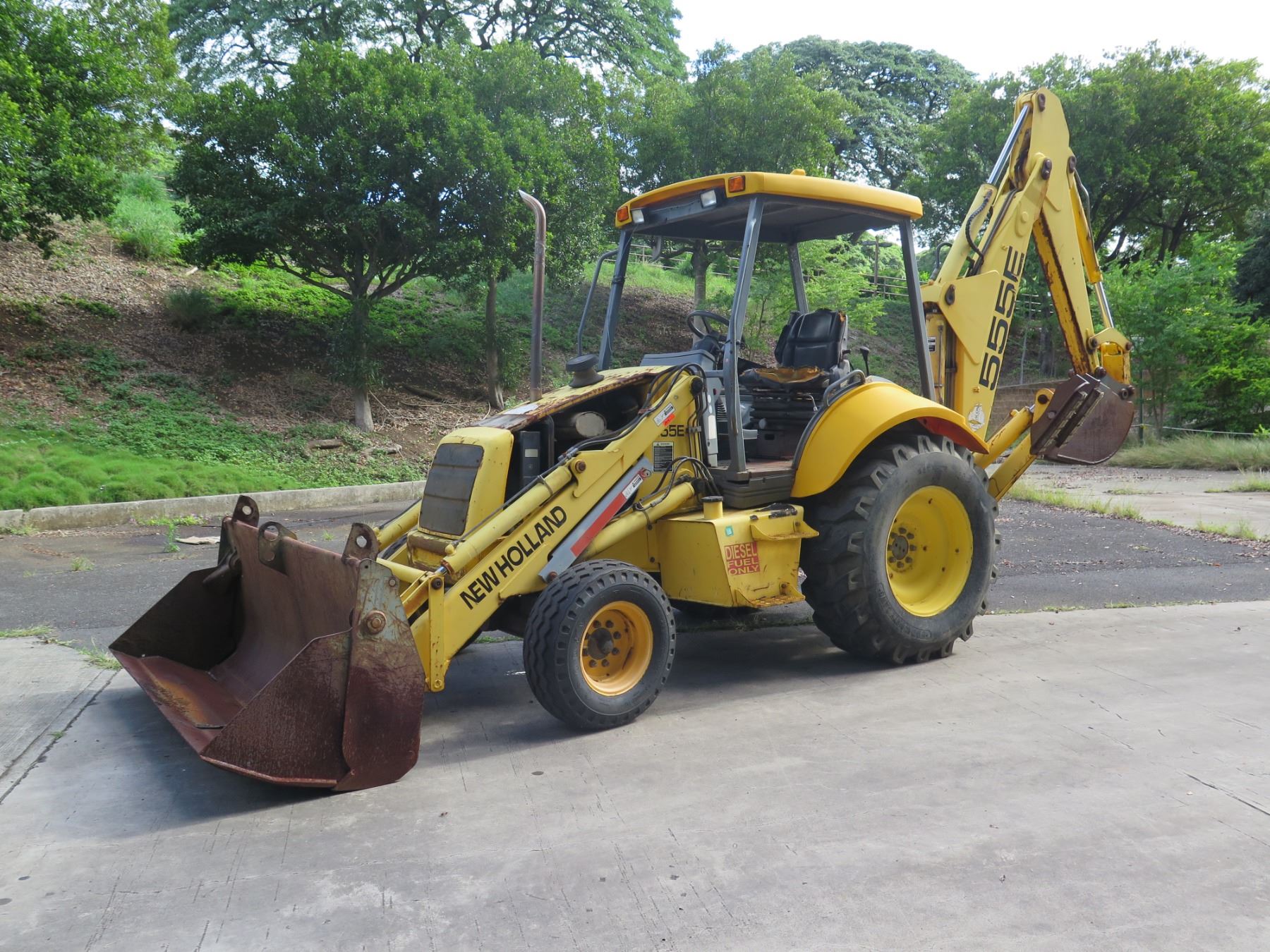New Holland 555E Backhoe Loader Meter Reads 2248 Hours. This has not been used for years. With a jump start, the mechanic was able to get it to run (see video). Hydraulic leak was noticed in the steering mechanism--shown in video.
