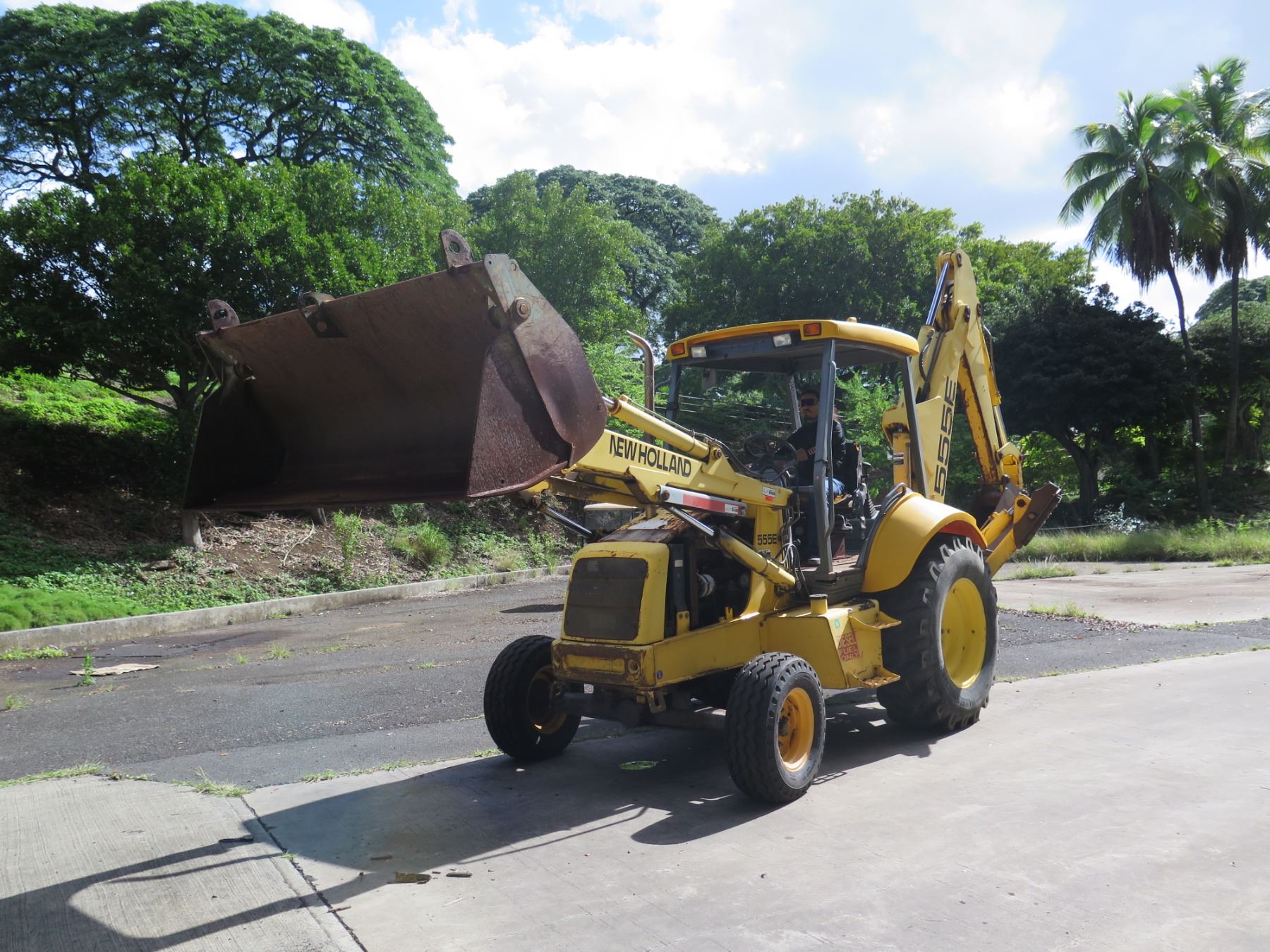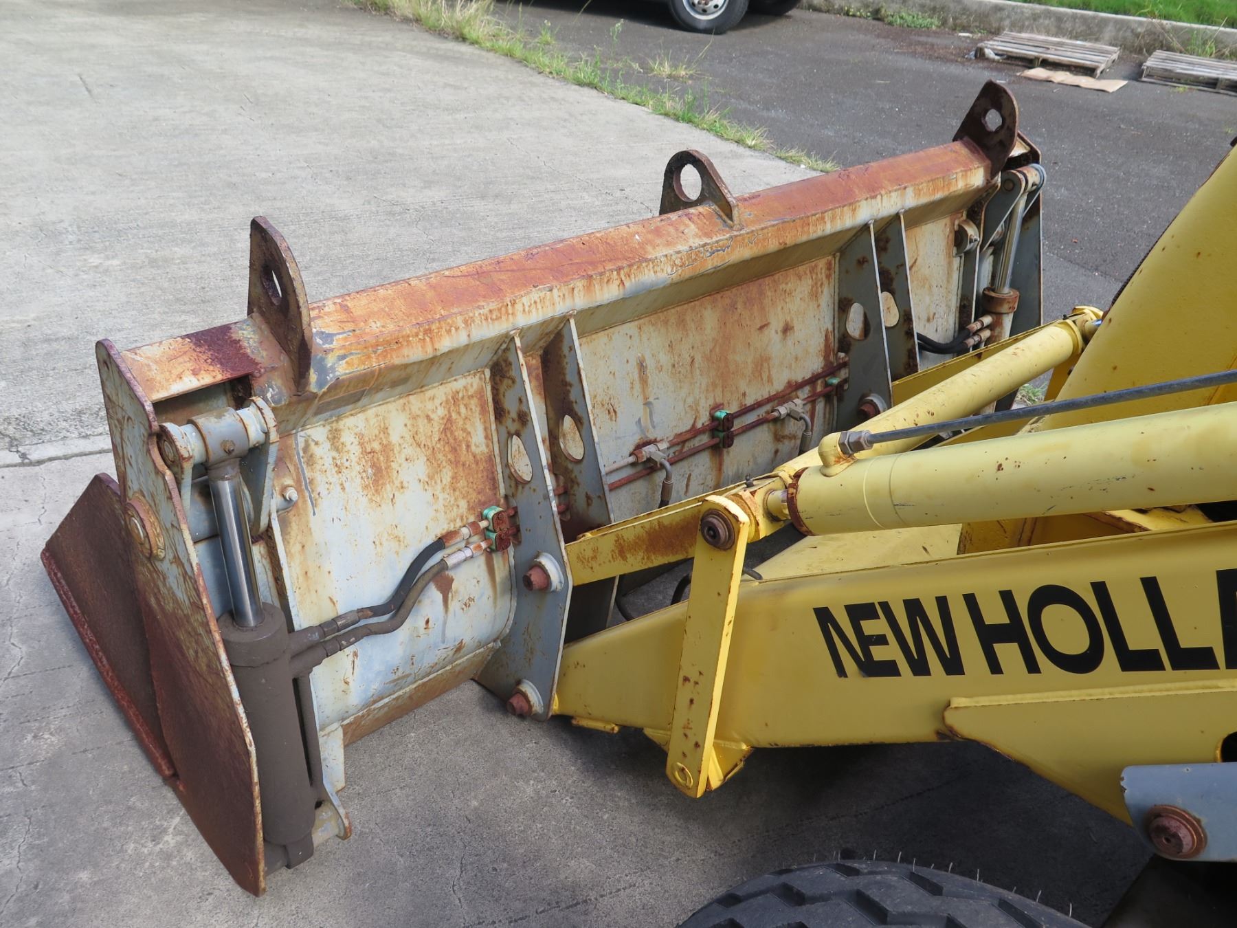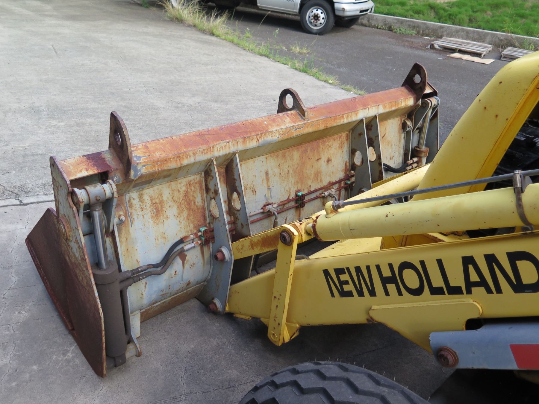 New Holland 555E Backhoe Loader Meter Reads 2248 Hours. This has not been used for years. With a jump start, the mechanic was able to get it to run (see video). Hydraulic leak was noticed in the steering mechanism--shown in video.
