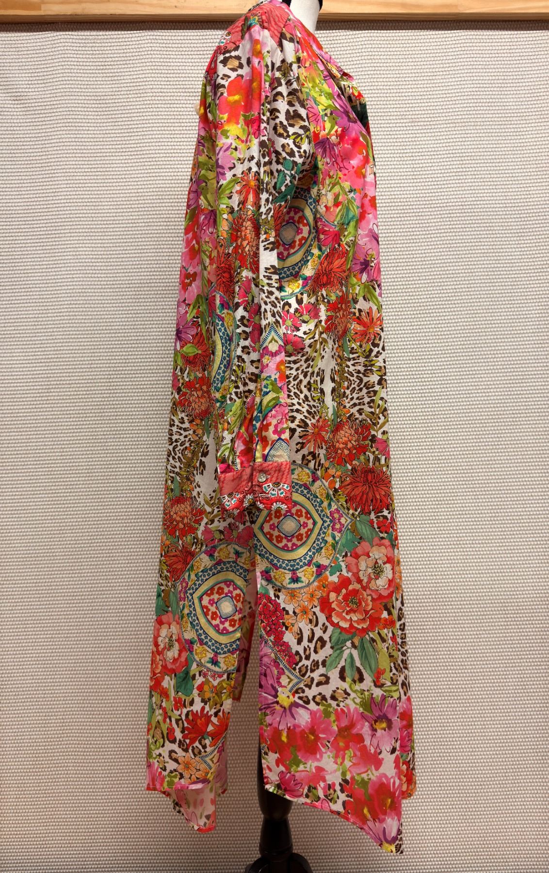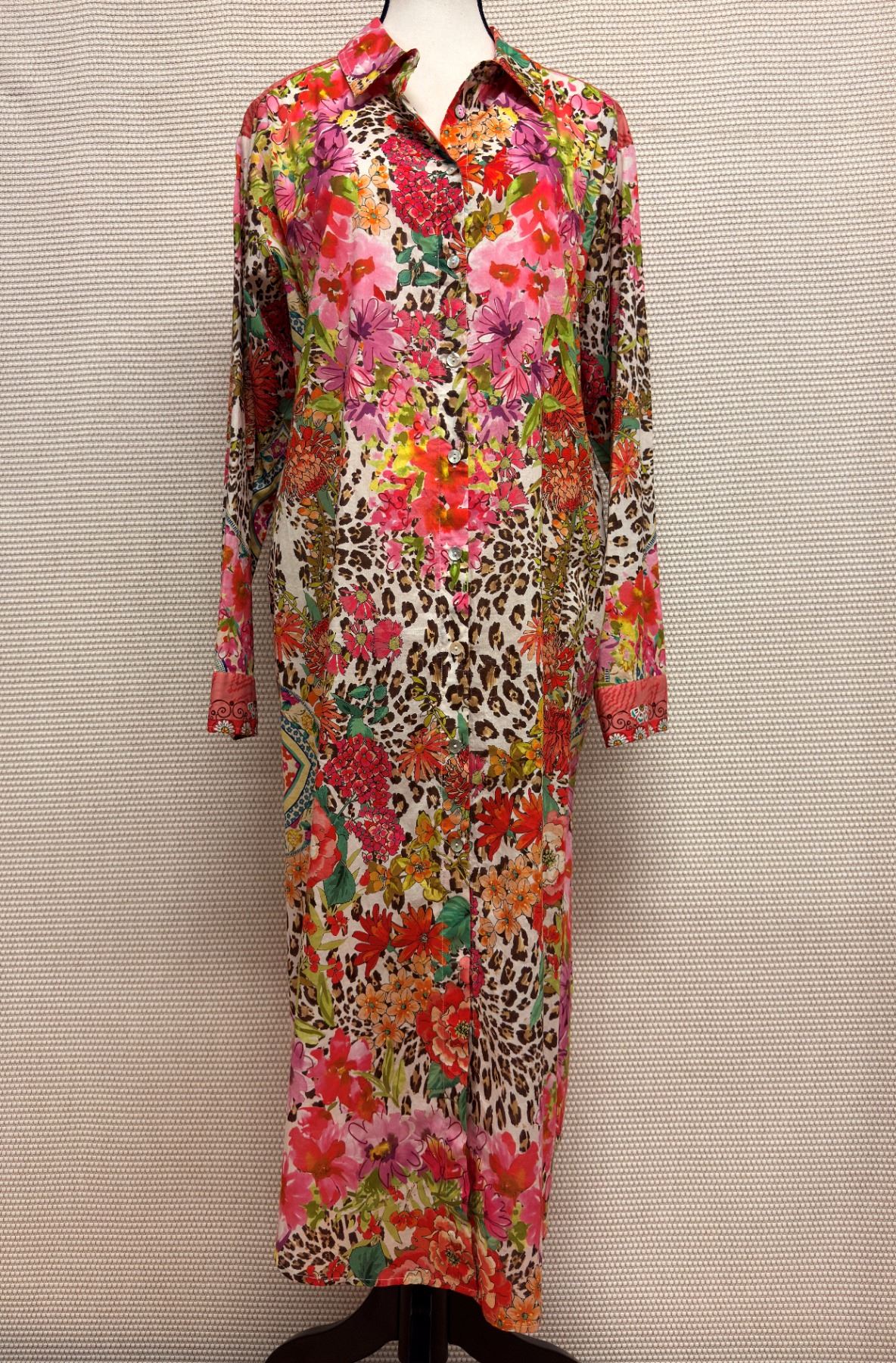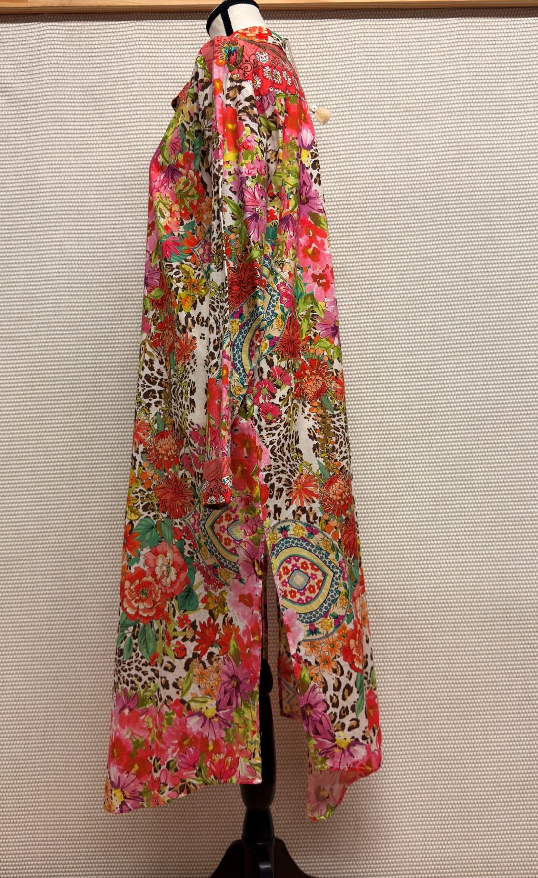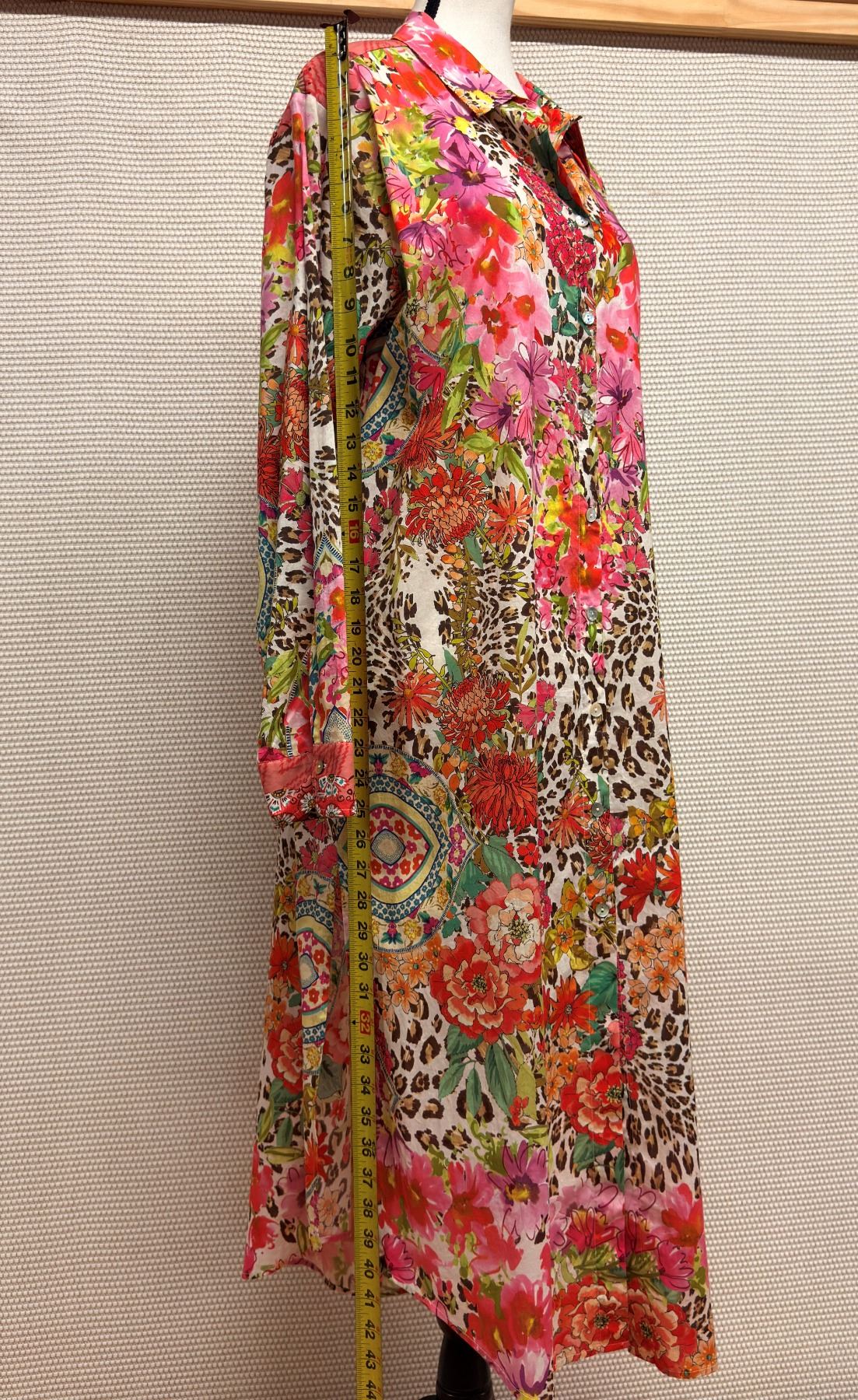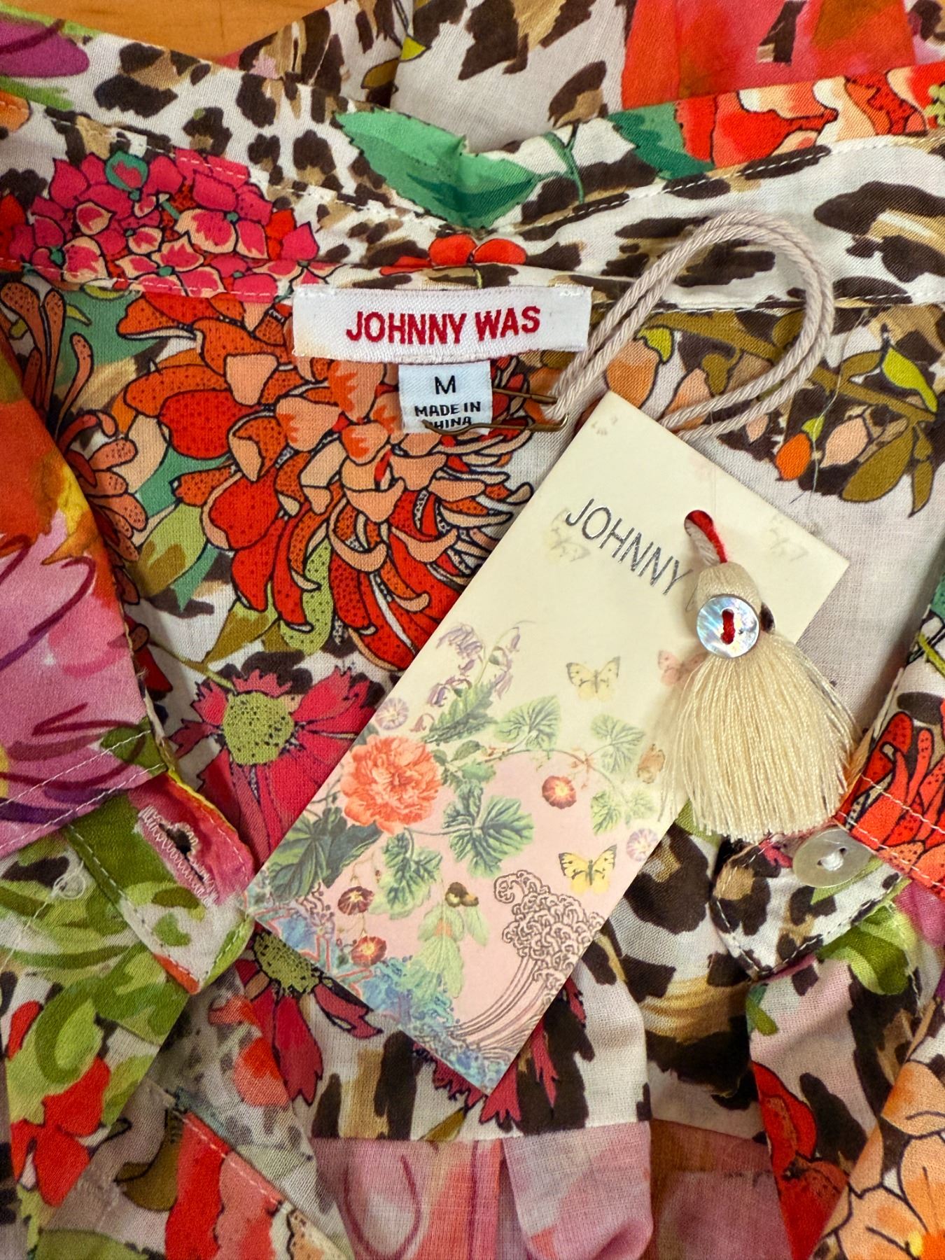 New Johnny Was Women's Floral Tunic w/ Leopard Motif, Size M, 42"L