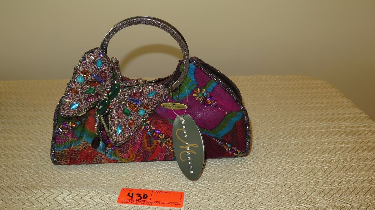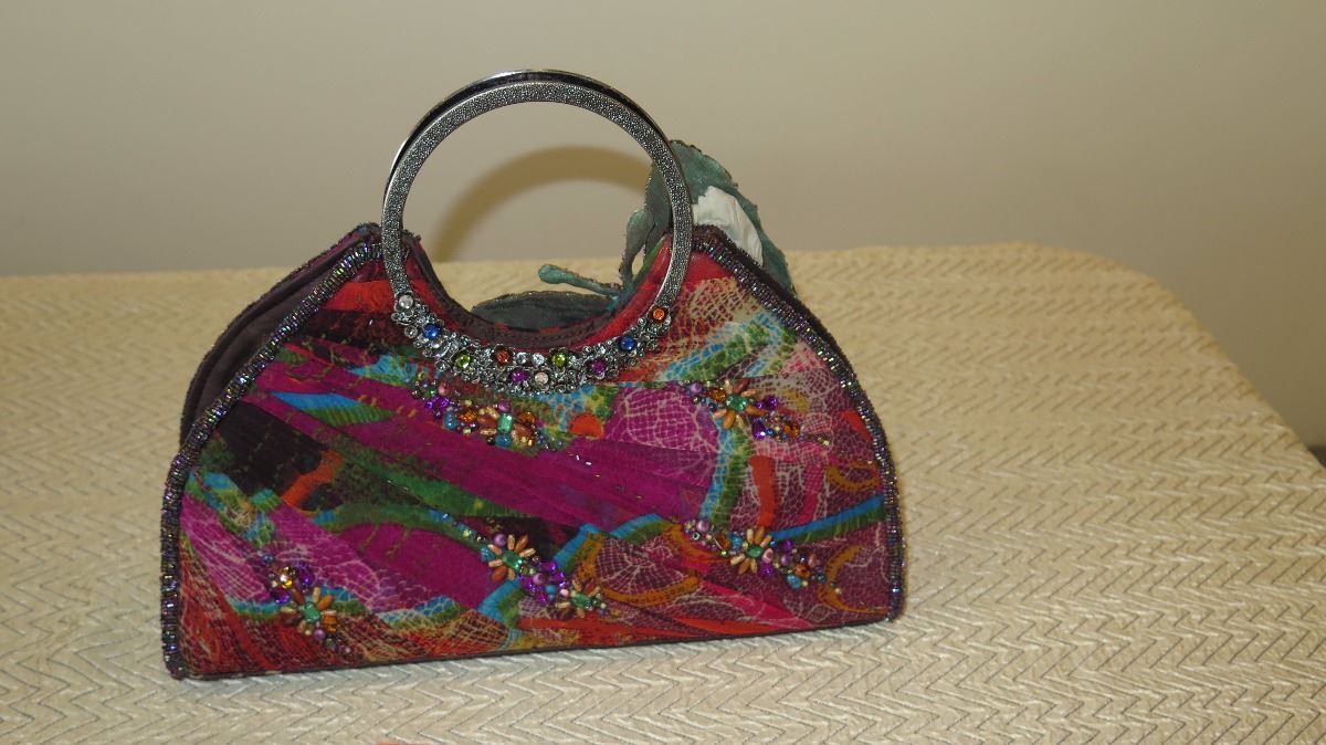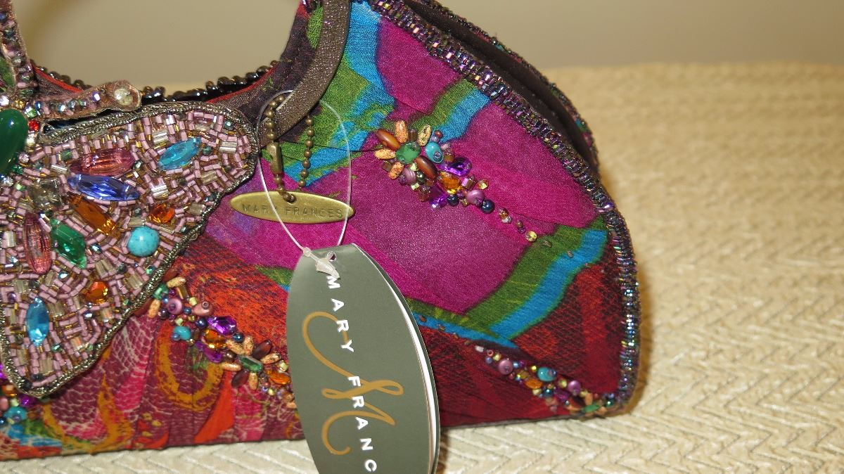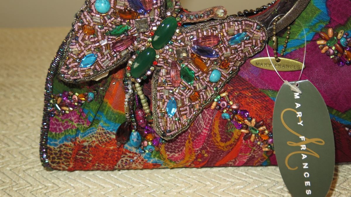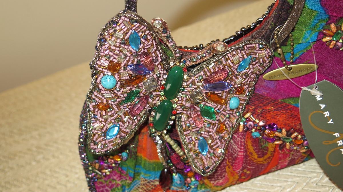 New Mary Frances Bag: Bright, Jewel-Toned, Silk, Beaded Butterfly, Ring Handle