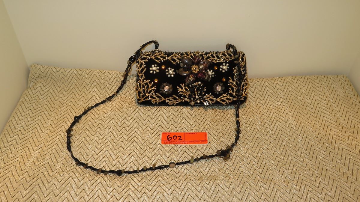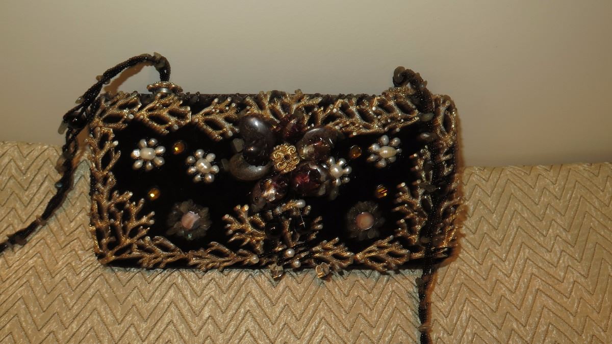 New Mary Frances Beaded Bag: Black Velvet w/Gold Ocean Coral Motif