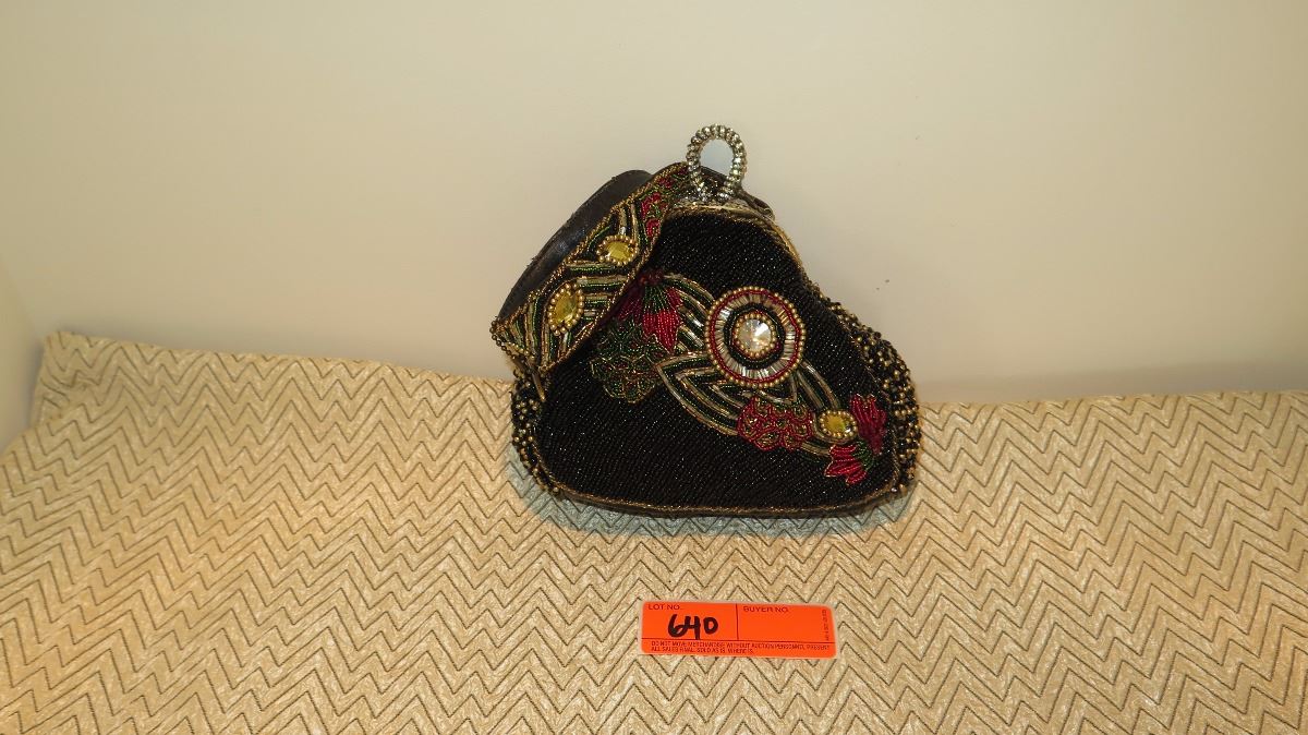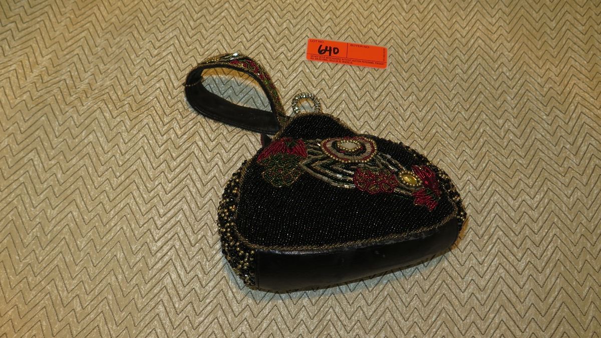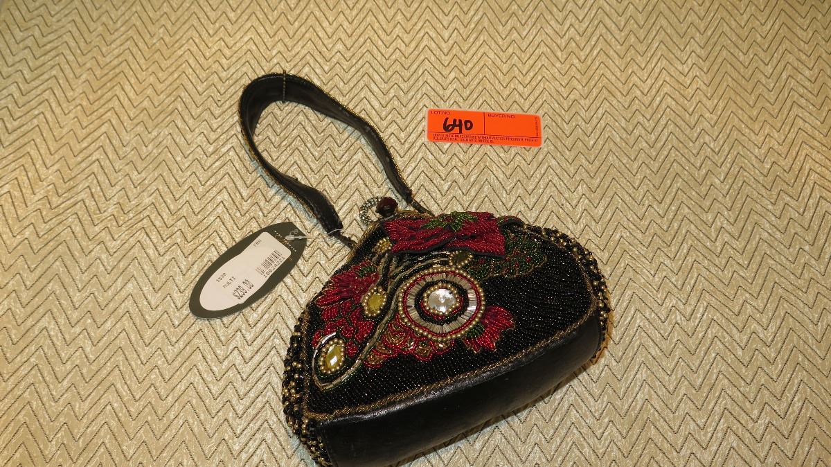 New Mary Frances Beaded Bag: Gloss Black w/Wrist Strap