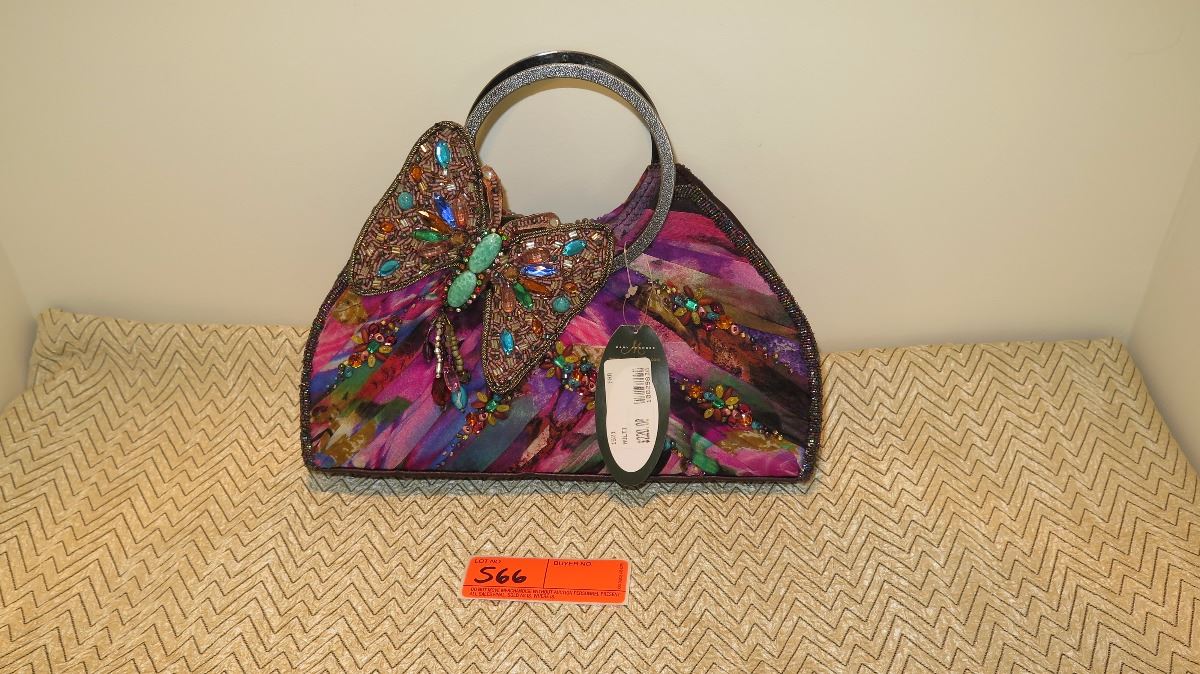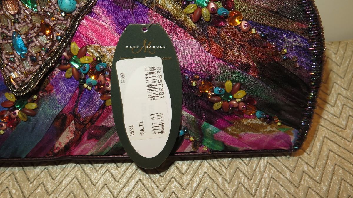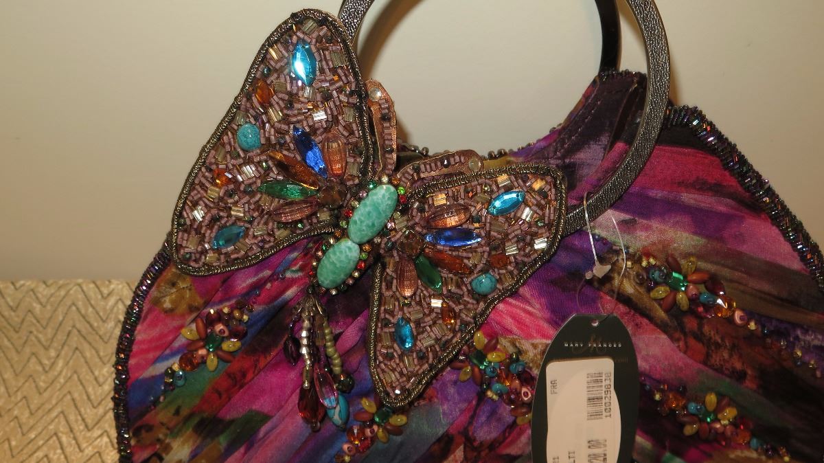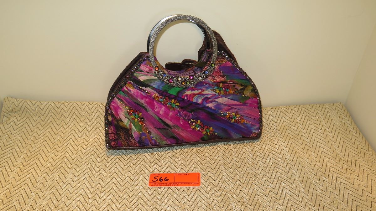 New Mary Frances Beaded Bag: Jeweled Bright-Hued Silk w/Ring Handles
