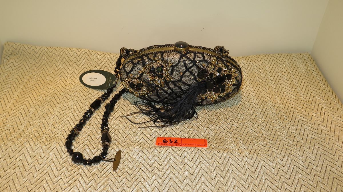 New Mary Frances Beaded Bag: Oval "Spinner" High Drama w/Black Web Lace