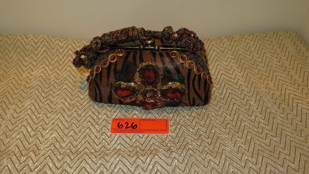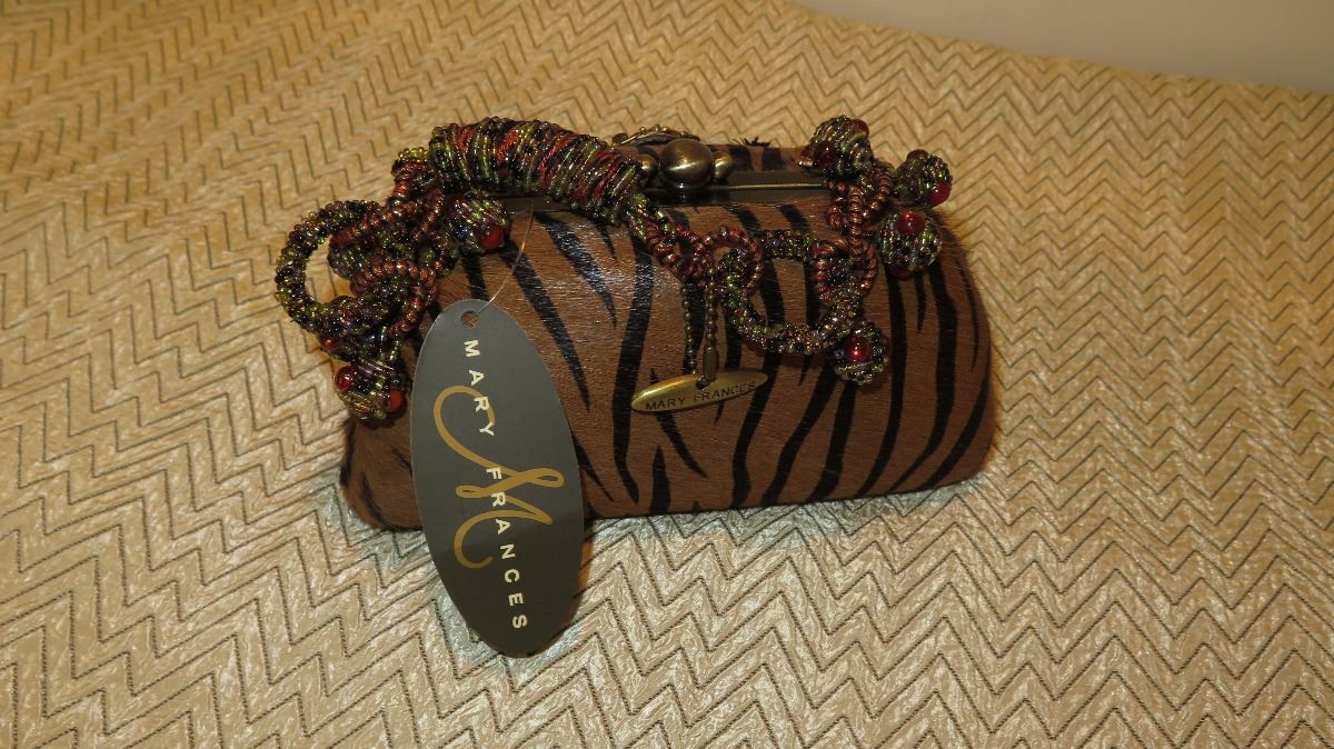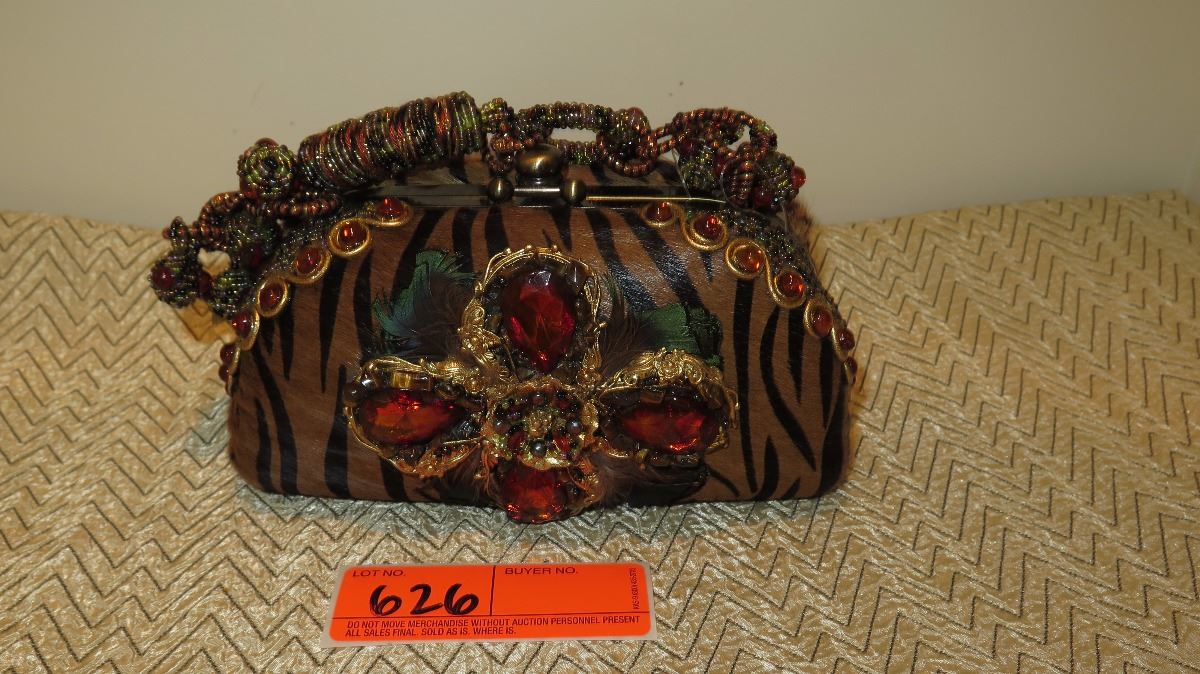 New Mary Frances Beaded Bag: Tiger-Striped Fur w/Twisted Beadwork