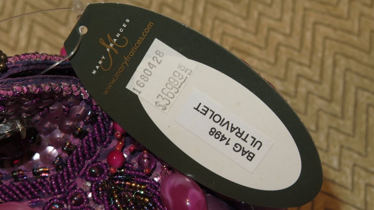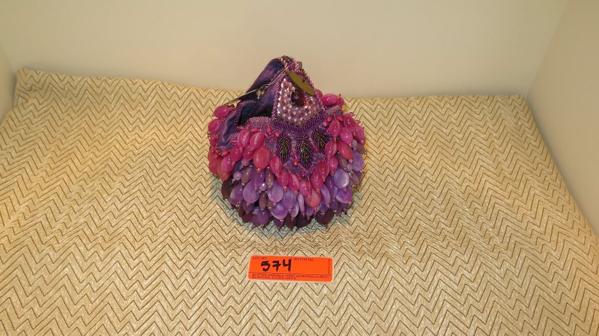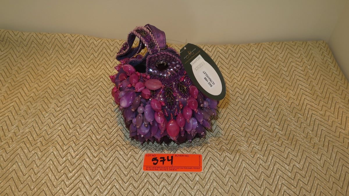 New Mary Frances Beaded Bag: "Ultraviolet" Pouch w/Large Purple/Cranberry Clusters