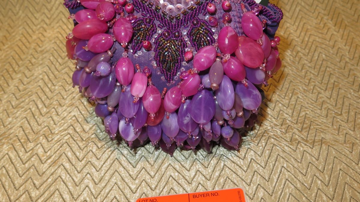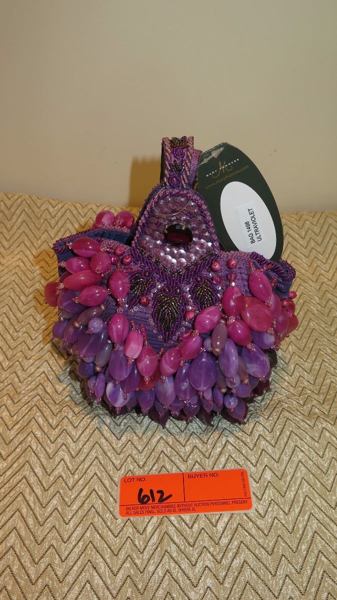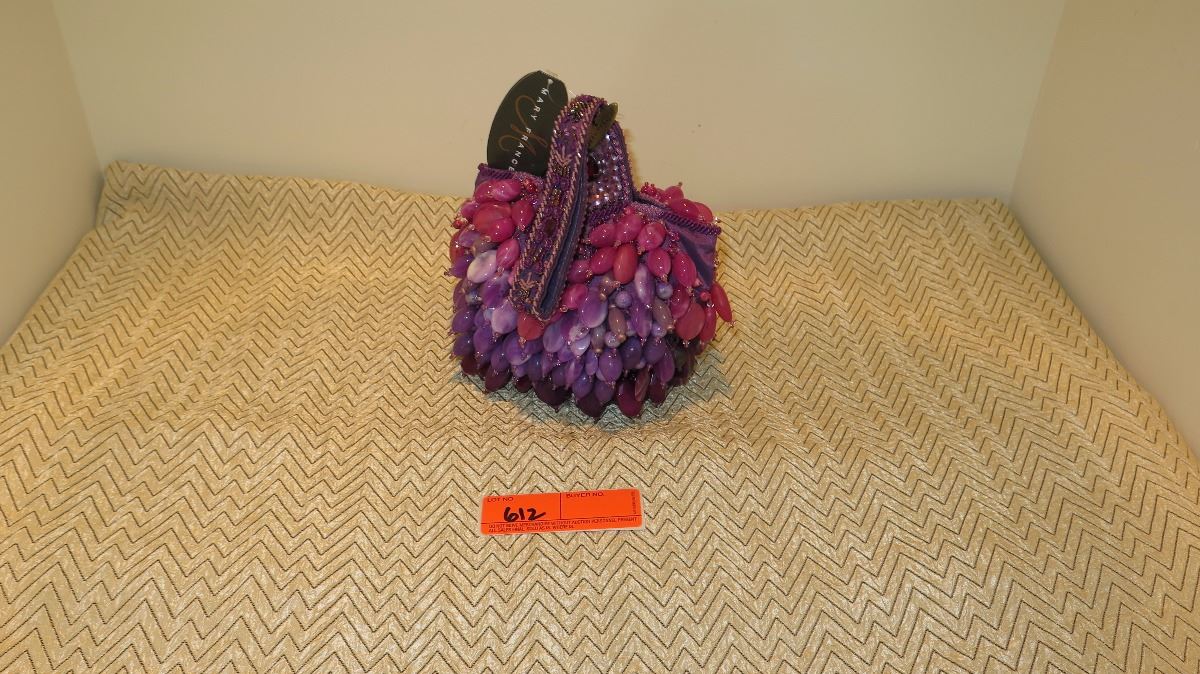 New Mary Frances Beaded Bag: "Ultraviolet" Pouch w/Lrg Purple/Cranberry Beads