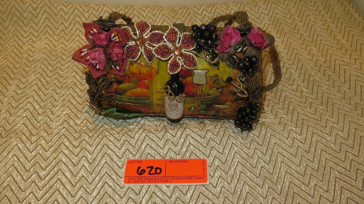 New Mary Frances Beaded Bag: Wine Motif w/Wine Bottle & Grapes