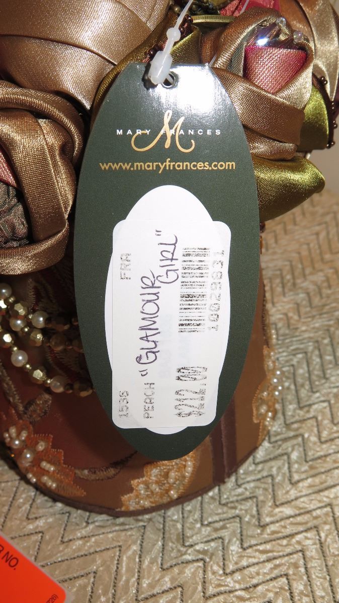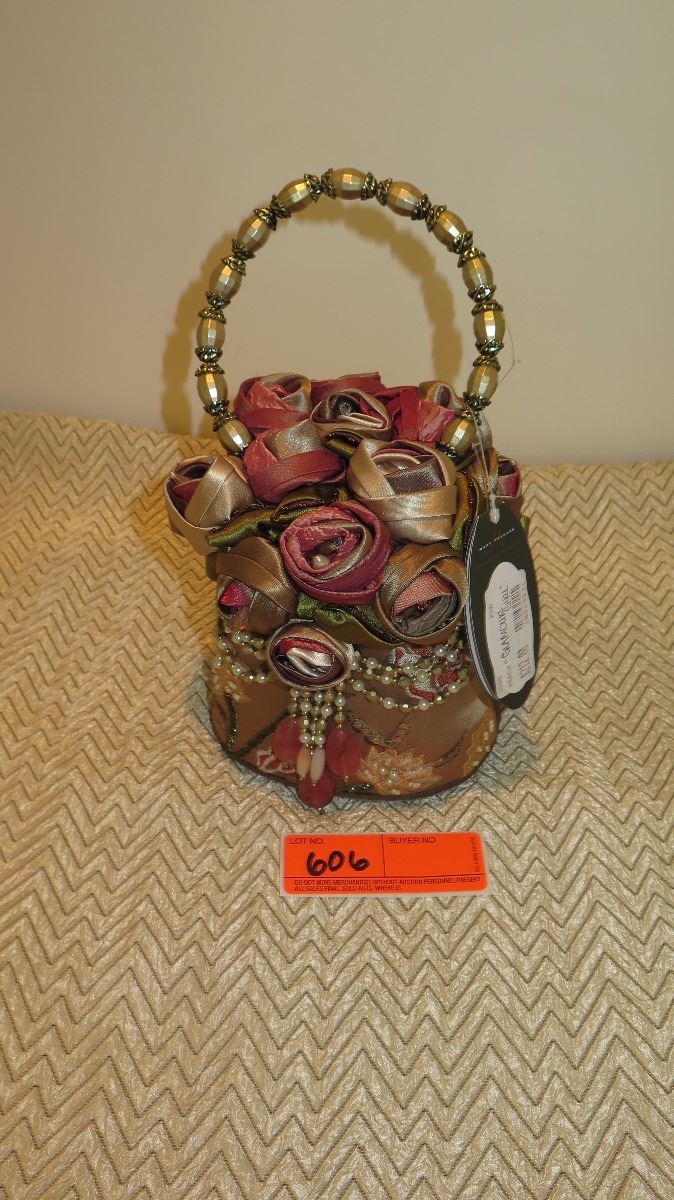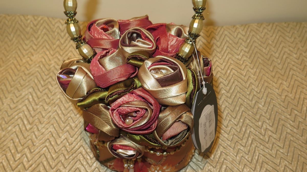 New Mary Frances Beaded Bucket Bag: "Glamour Girl" Satin w/Layered Satin Rosettes