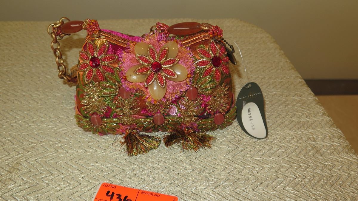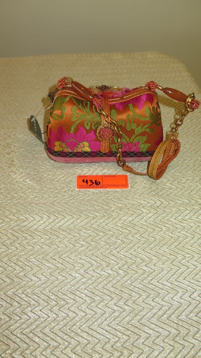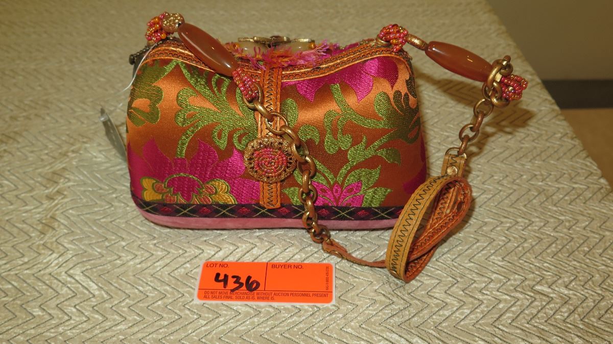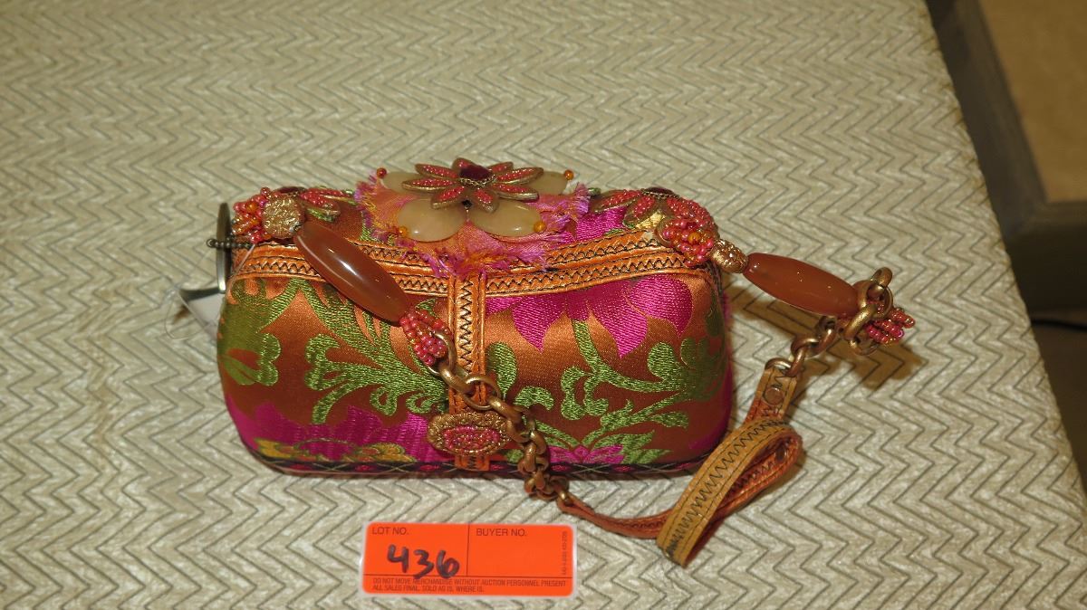 New Mary Frances Handbag: Beaded Orange Oriental Satin Brocade