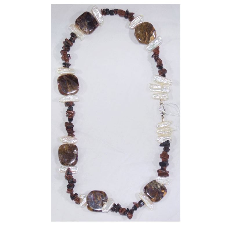 16" White and Green, Zig Zag shape, Chinese Freshwater Button Pearl Necklace, 16" Jasper and White Chinese Freshwater Pearl Necklace, Long Shell Necklace, Long Shell Earrings Set, Long Shell Bracelet. Donated By: Meng Dynasty