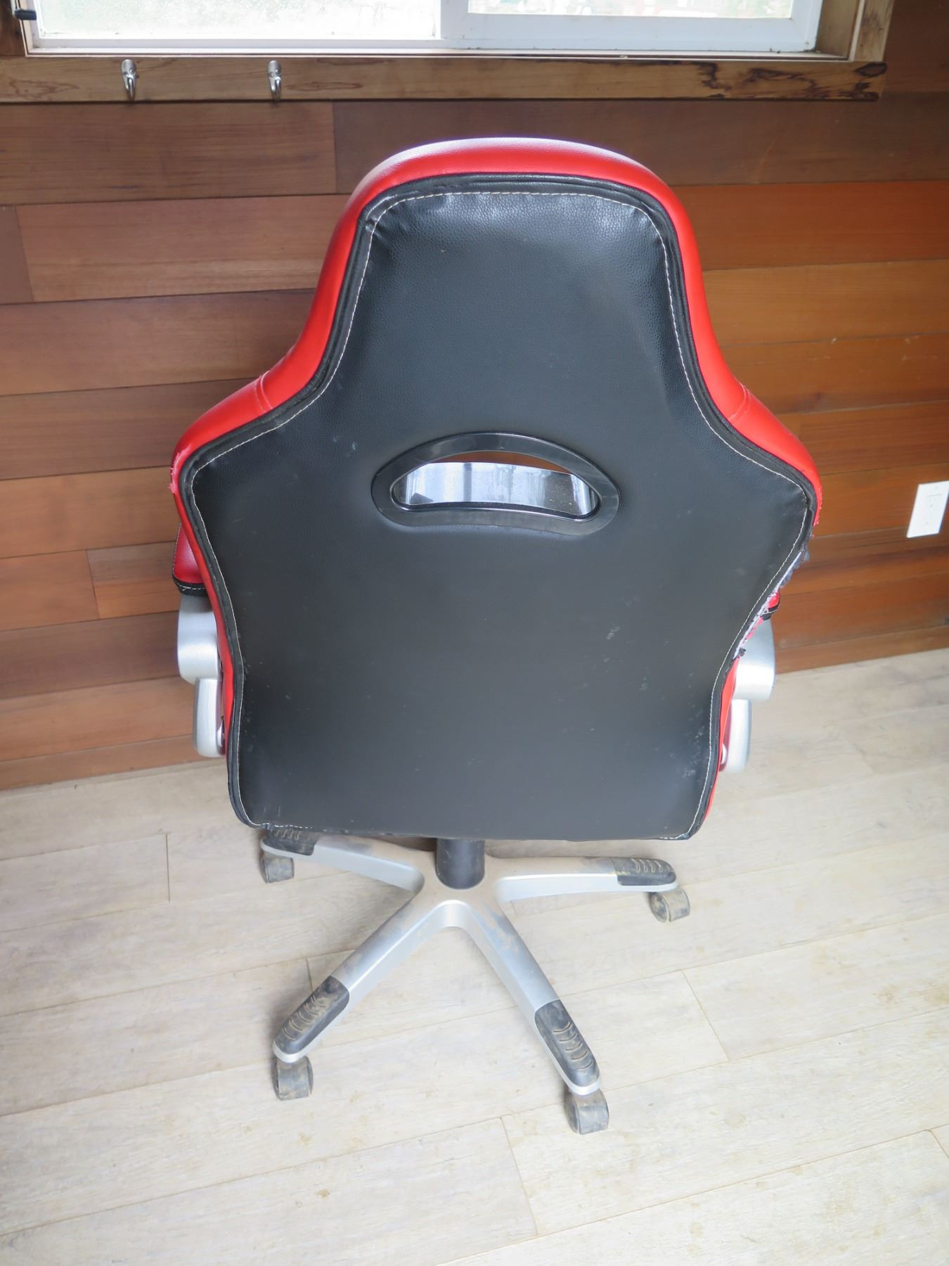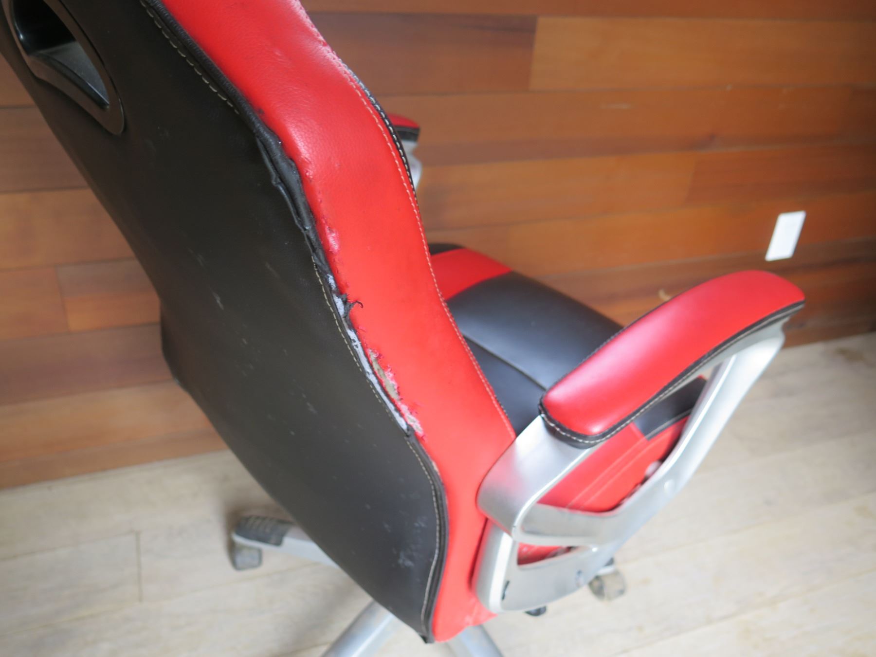 New Red/Black Gaming Chair (Intimate WM Heart Furniture 234-10-EAHC-D212U2-FUSE). Item shown in picture is assembled and used. Buyer will be given a new chair (still in box, unassembled)