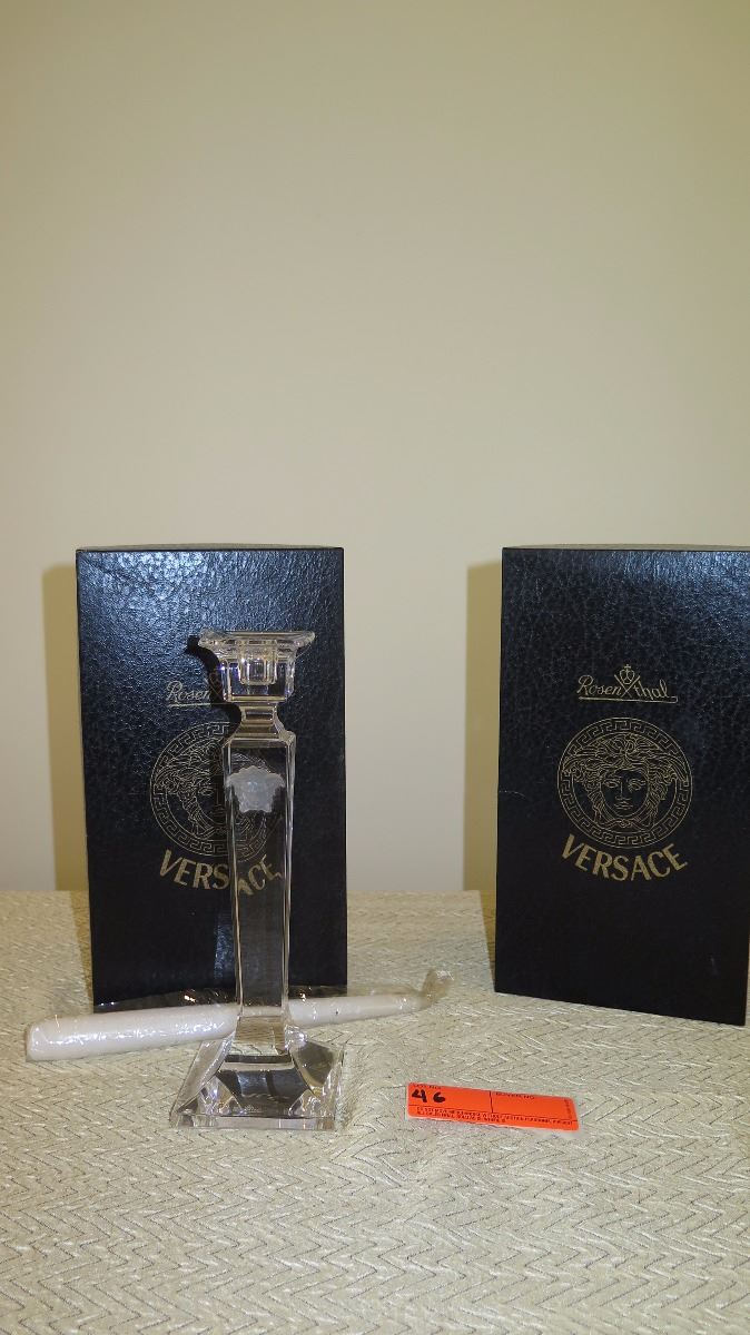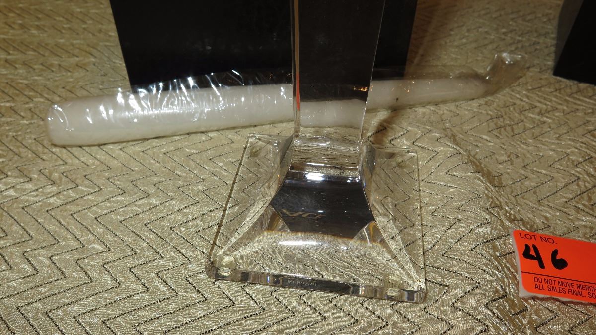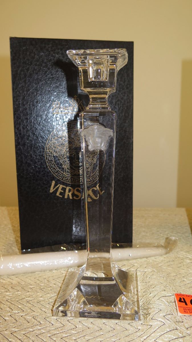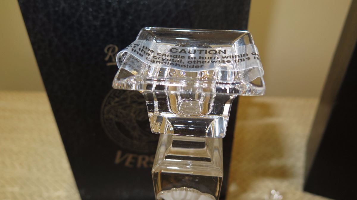 New Versace Medusa Lumiere Crystal Candlesticks (w/original boxes)