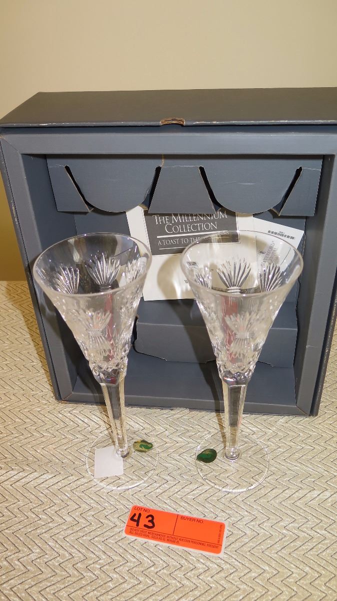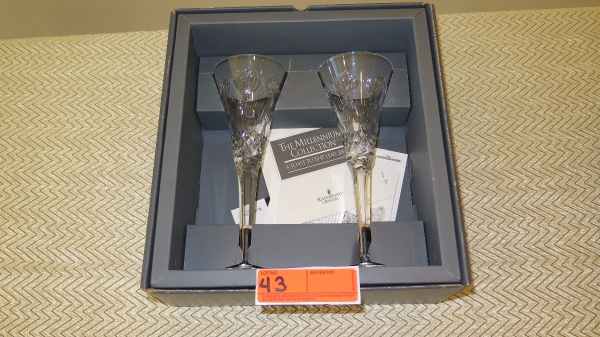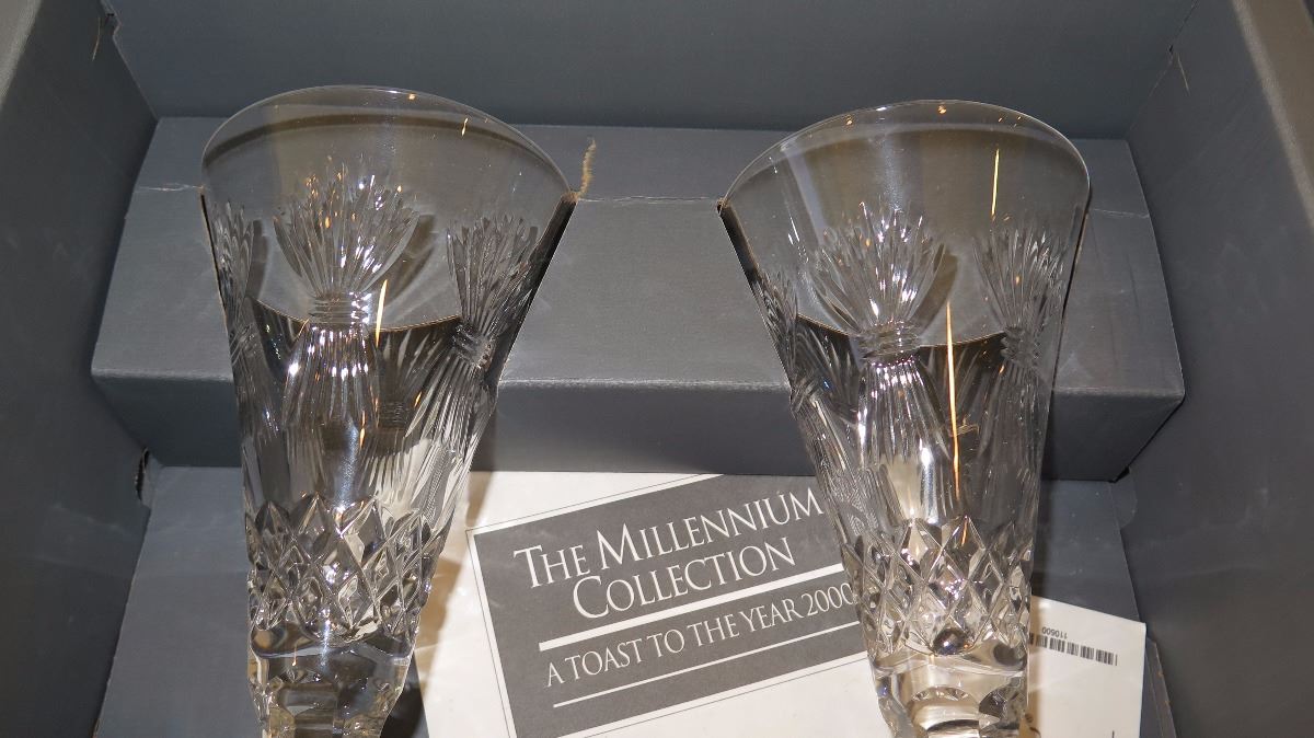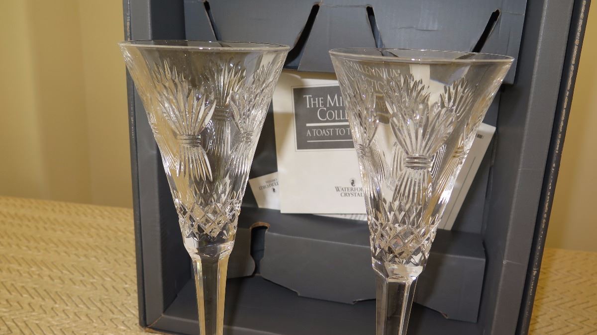 New Waterford Cut Crystal Champagne Flutes - Pair (with original box)