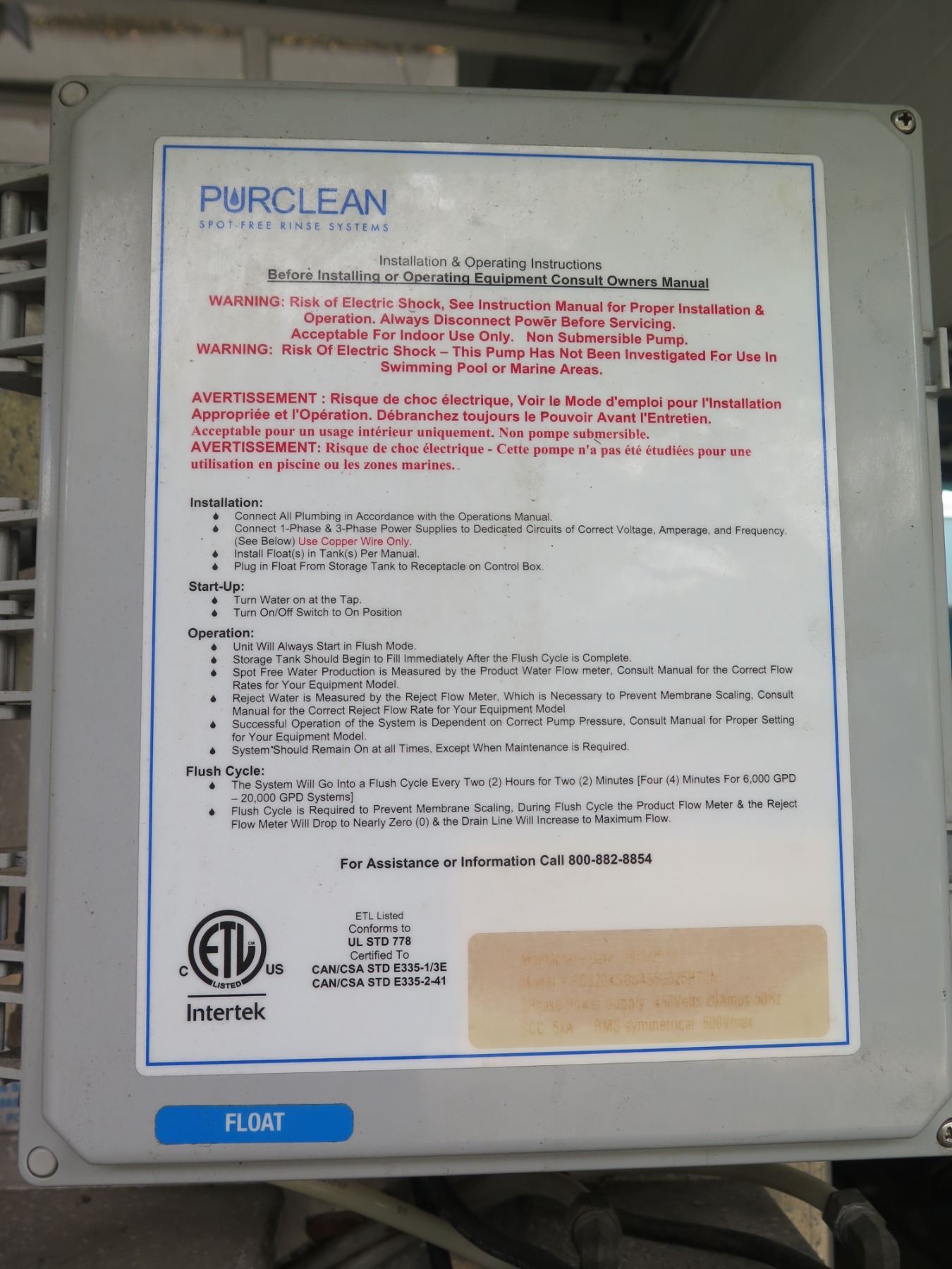 New Wave Industries Pur-Clean Spot Free Rinse System w/ Baldor Super E Motor