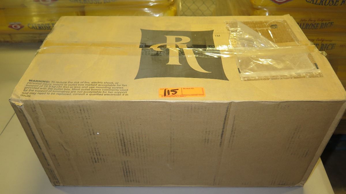 New and Unused Rejuvination Peregrine Ceiling Fan - Brushed Nickel (from Magnolia Cafe & Bakery). This was never used so I don't have a better picture. The last picture shows what this looks like.