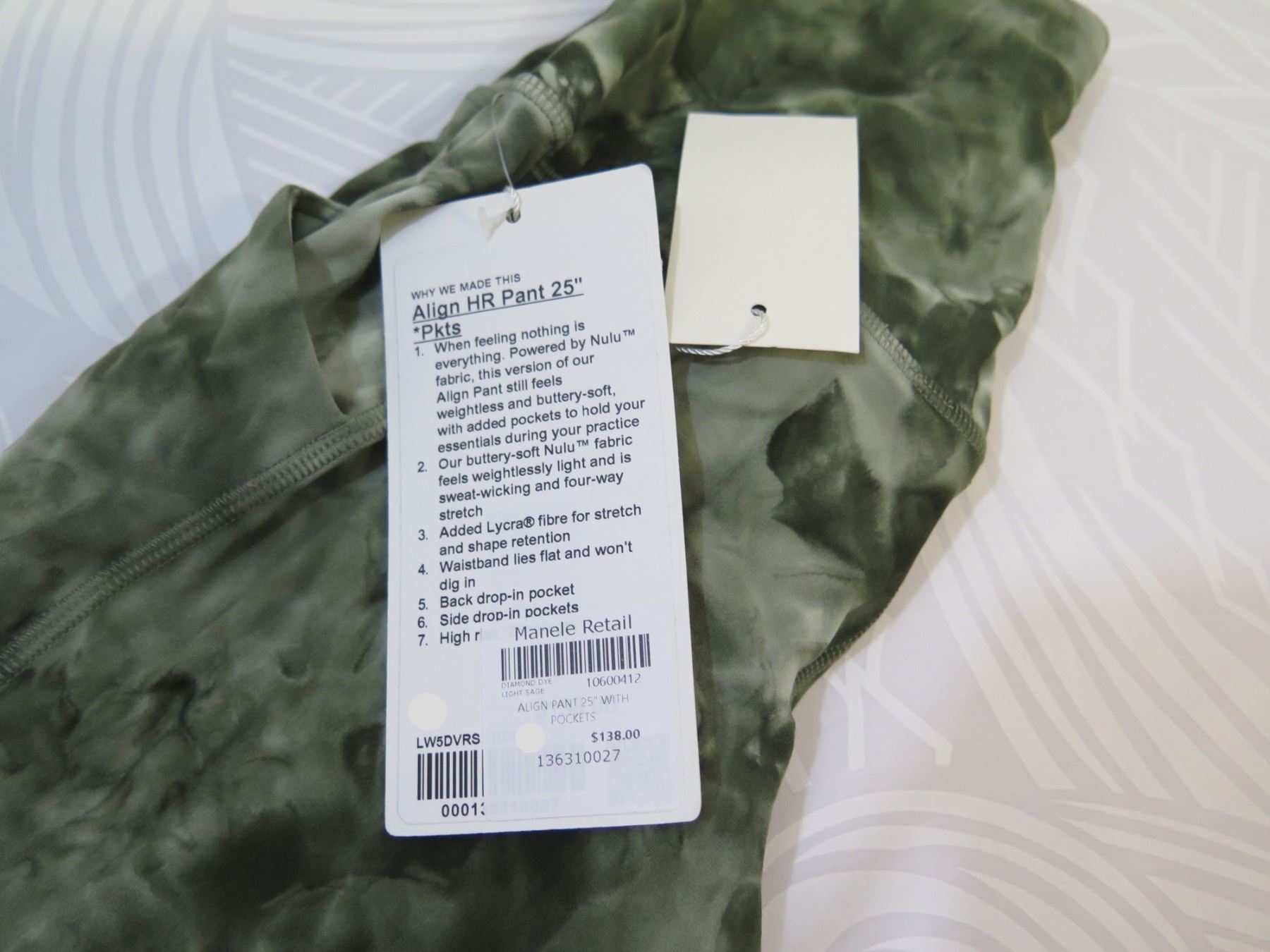 New lululemon Align High Rise 25" Pants w/ Pockets, Diamond Dye Lt. Sage, Size 10. New with tags. Resort retail $138.