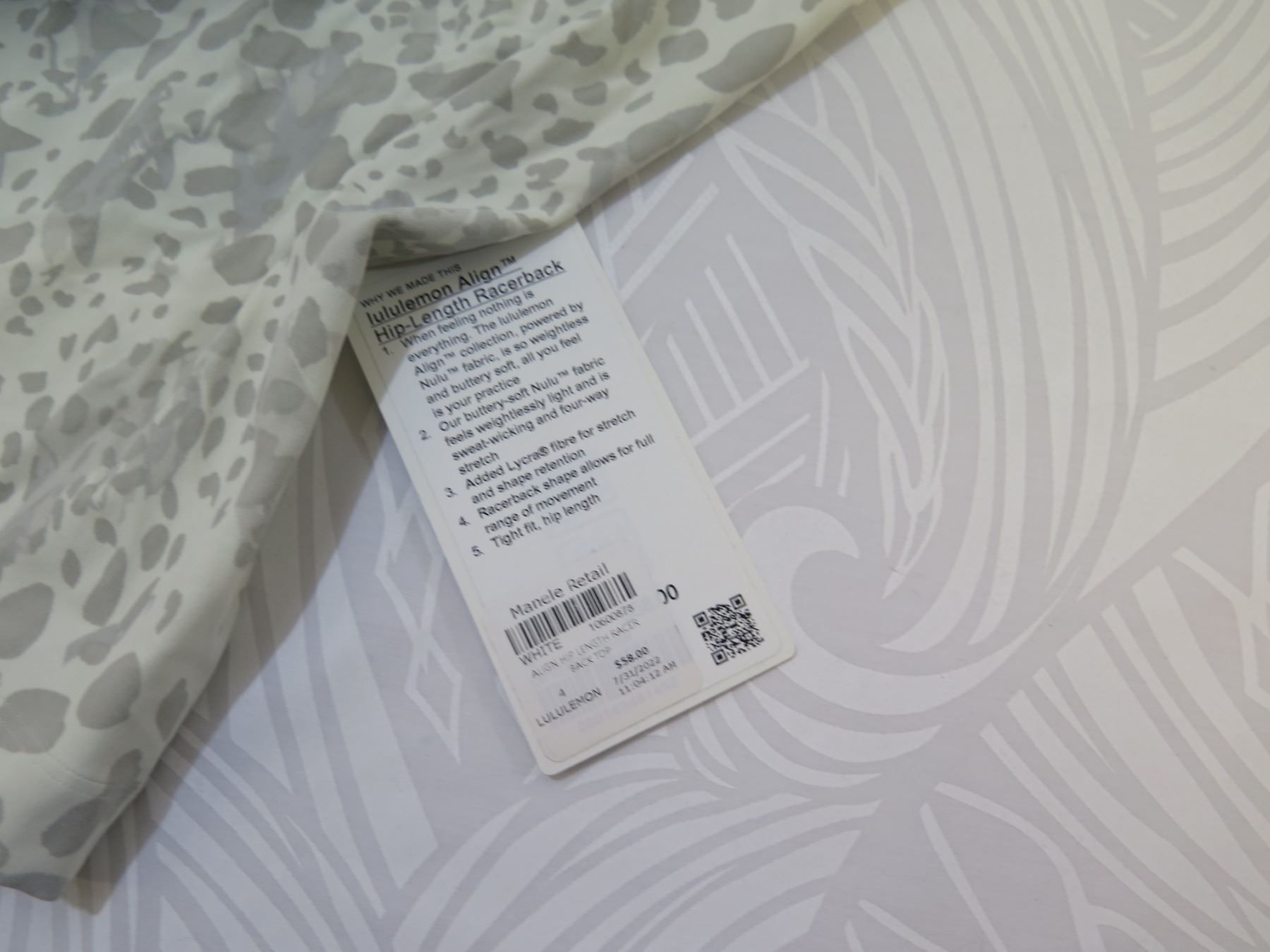 From a retail shop at a five-star resort. A new entity recently moved into the space and implemented its own retail concept. All remaining floor and stockroom inventories were sent to Oahu Auctions. Everything is new with tags. Most of these are still on the Lululemon website. The price tag shown is "resort retail," which is what these were priced at in this retail establishment. In some cases, we include a link to the brand's website for further context and illustration.