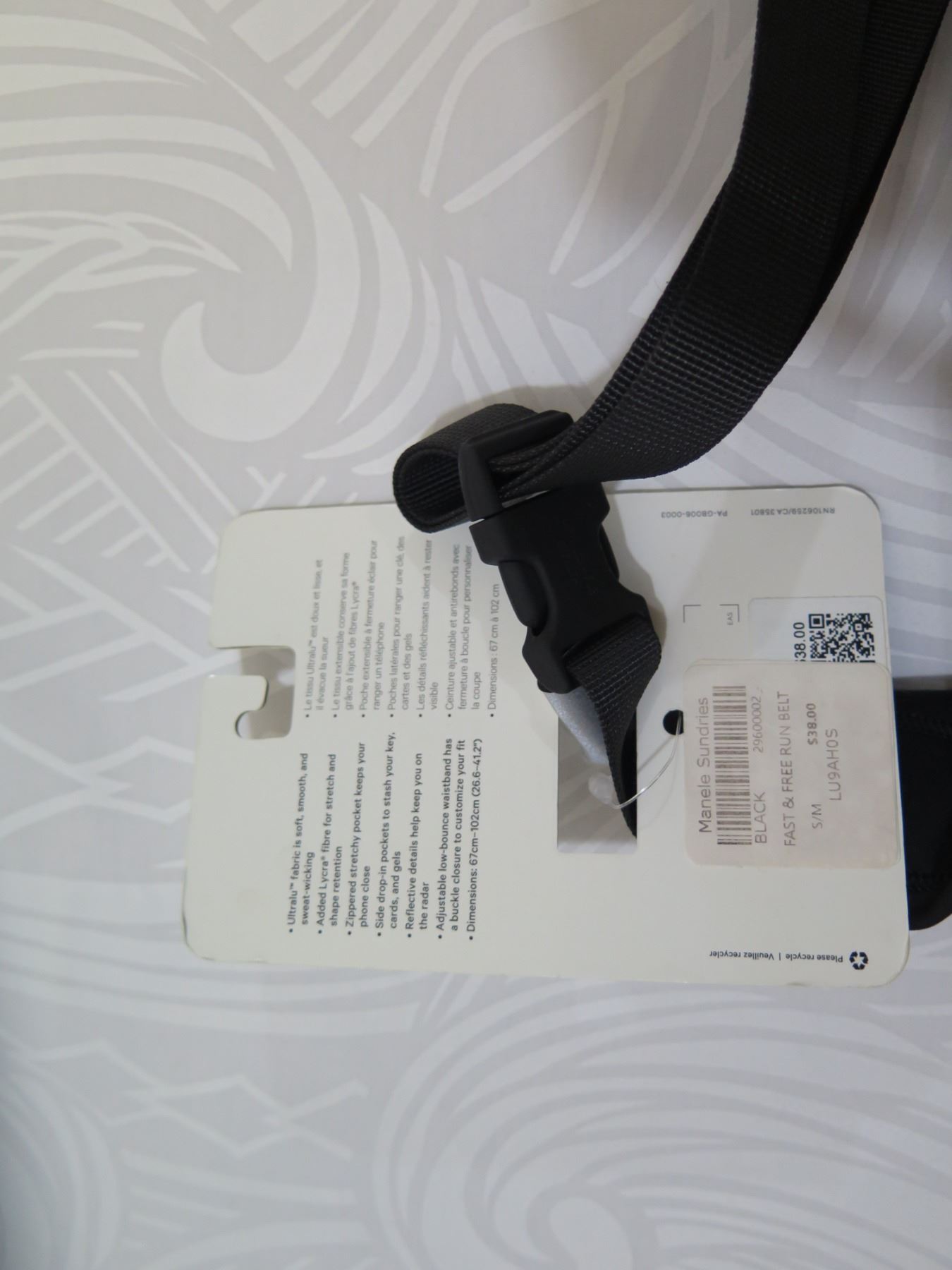 New lululemon Fast and Free Run Belt, Black, Size S/M. New with tags. Resort retail $38.